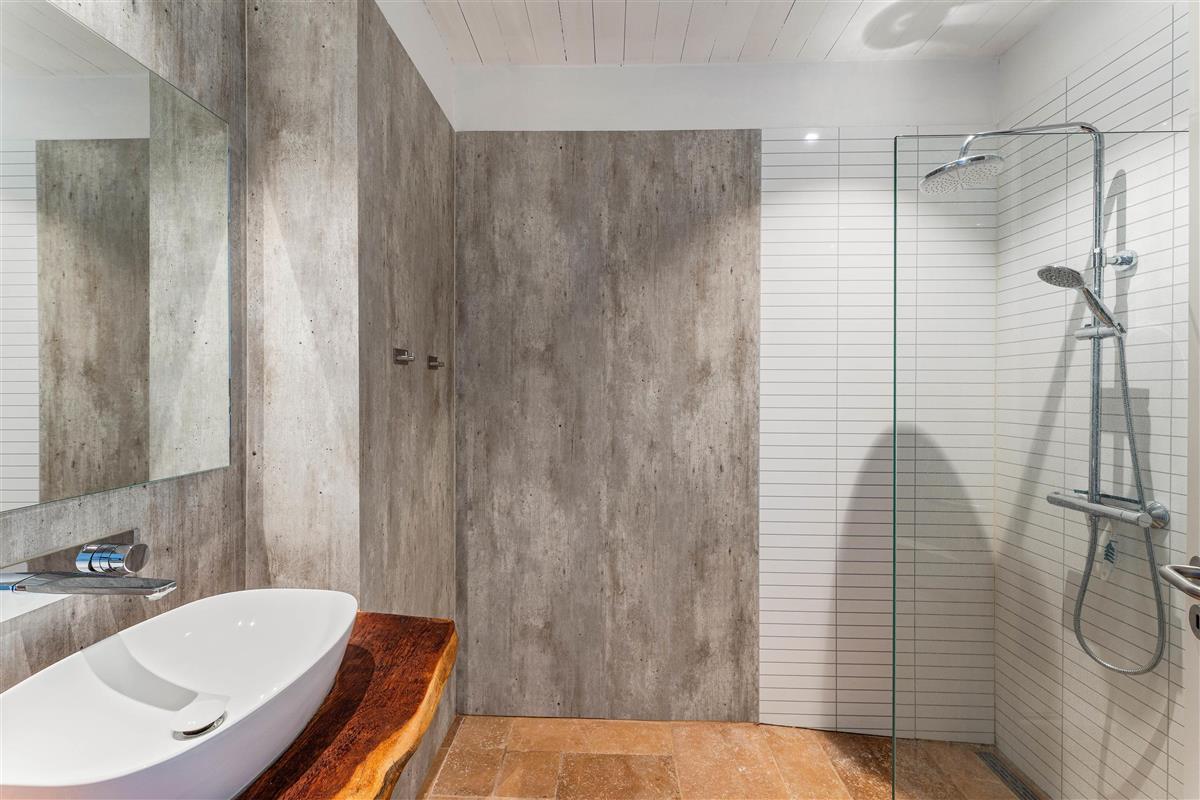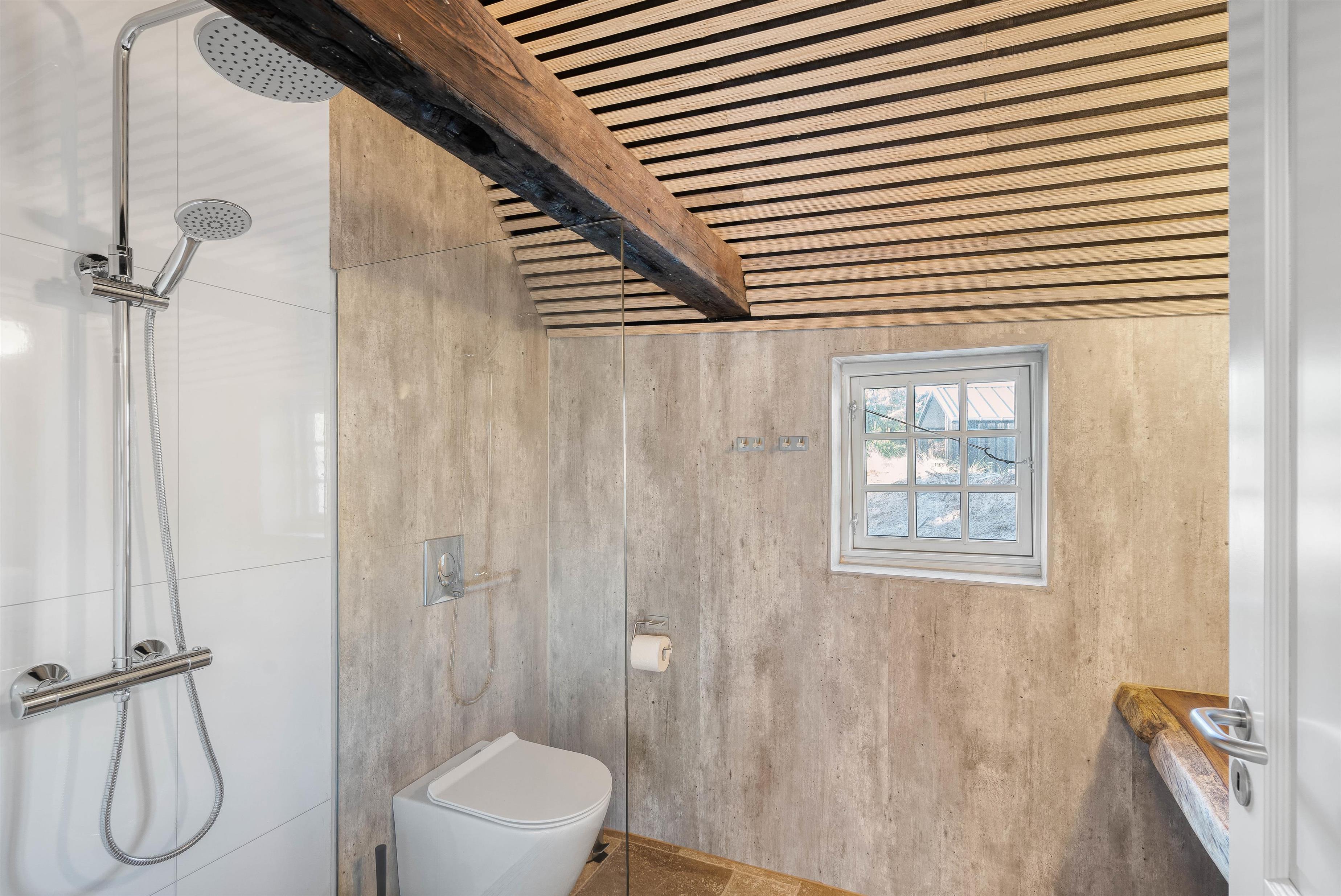 The layout at Karl Postsvej 9B is uniquely designed and perfect for multiple couples holidaying together. All five bedrooms are en suite, meaning each has direct access to its own bathroom. Two bedrooms are accessible only via the terrace. There's also an additional guest WC directly accessible from the living area. The house features underfloor heating throughout the living areas.