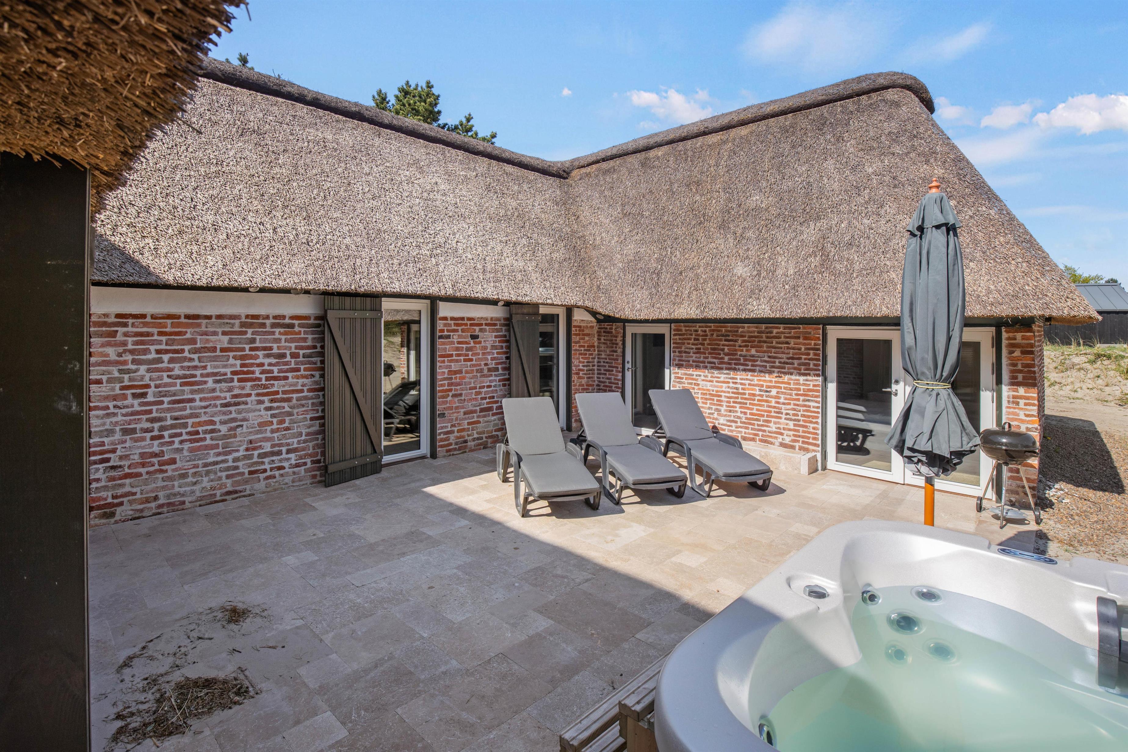 This beautiful thatched holiday home, partially renovated and partially rebuilt in 2022, promises an unforgettable Danish holiday experience. A private wellness area with swimming pool and steam room, plus an outdoor hot tub, combined with luxurious Scandinavian-style furnishings, leaves nothing to be desired. These are just some of the highlights of this magnificent house - read on to discover more. Dogs are also welcome here.