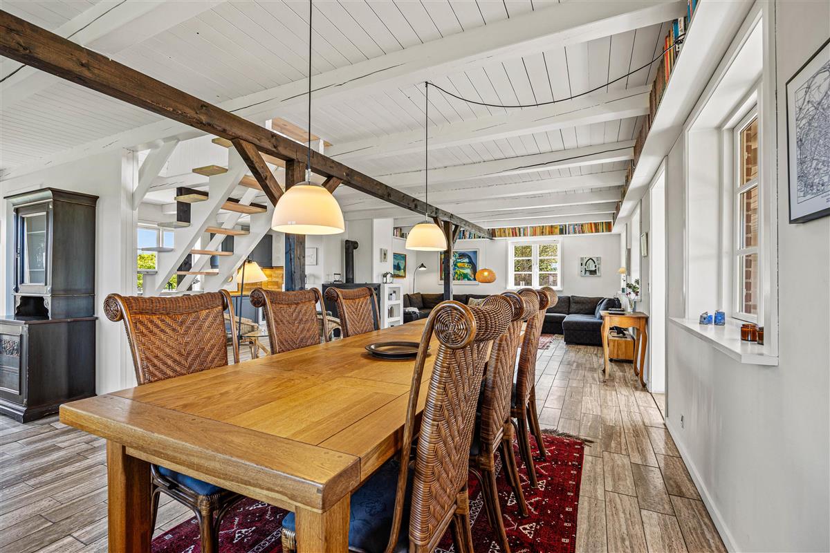 Vor allem vom 1. Stock hat man einen einzigartigen Blick auf die Nordsee vom Leuchtturm Blåvand bis nach Horns Rev - im Zwischengeschoss wird es Balsam für die Seele sein, wenn du dein neues Buch liest oder in den Ferien arbeitest. Im Ferienhaus kann man es sich an kühlen Tagen mit einem guten Buch oder einem Kartenspiel nach langen Strandspaziergängen bei Sonne, Wind, Winterkälte und Sommerhitze vor dem Kaminofen gemütlich machen.