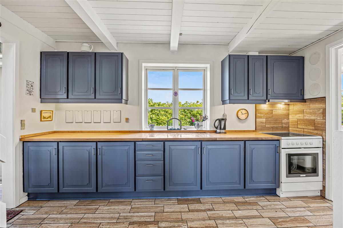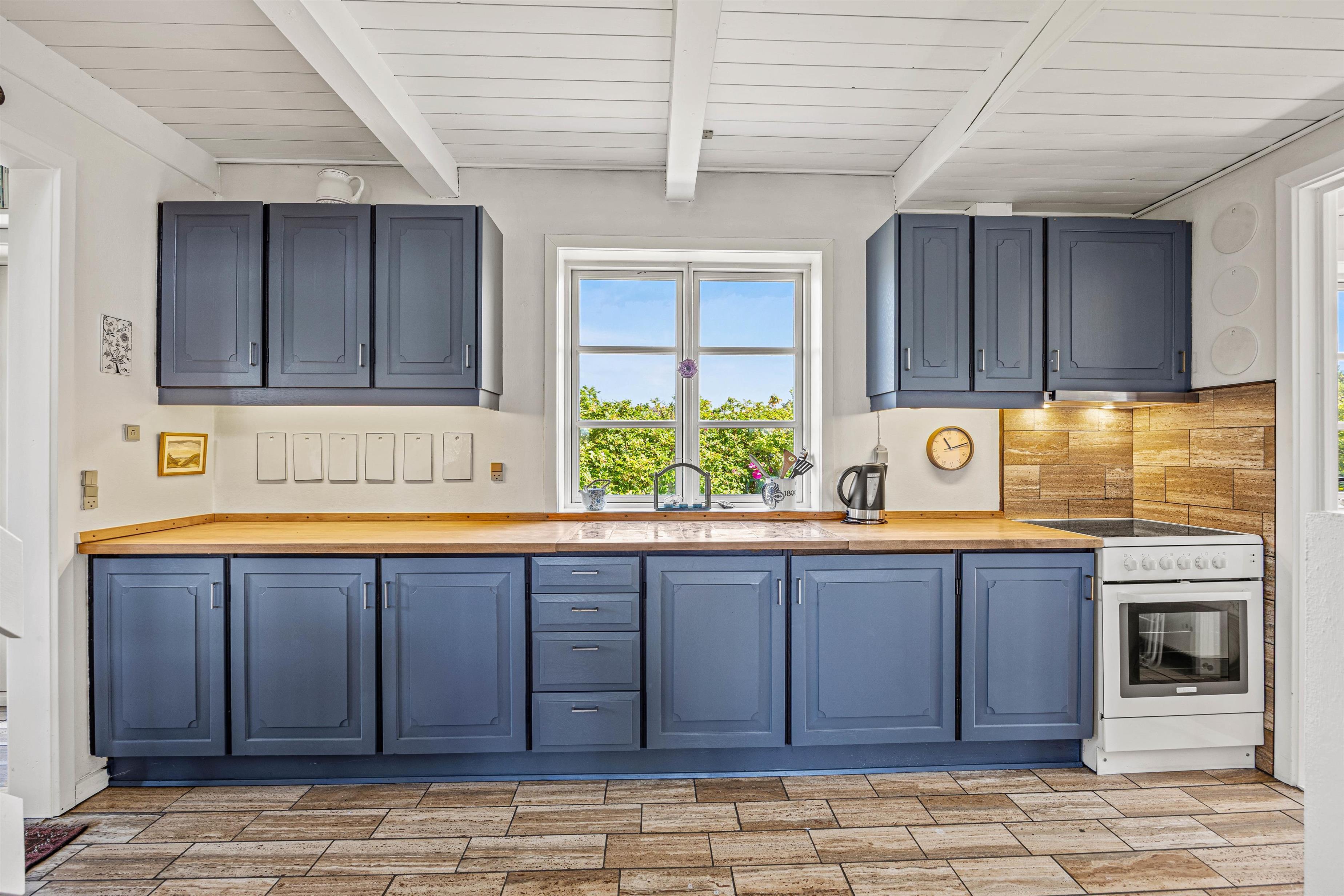 Die offene Küche macht es zu einem Vergnügen, euch gegenseitig leckere Mahlzeiten zuzubereiten, während ihr draußen die Aussicht auf die westjütländische Landschaft genießt. Wenn das Essen fertig ist, könnt ihr euch um den Esstisch versammeln und euch bei Essen, Getränken und Geschichten über die Erlebnisse des Tages austauschen.