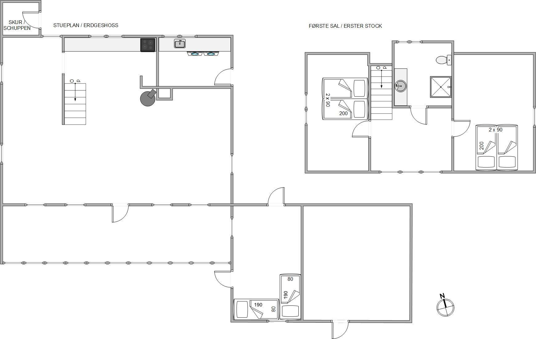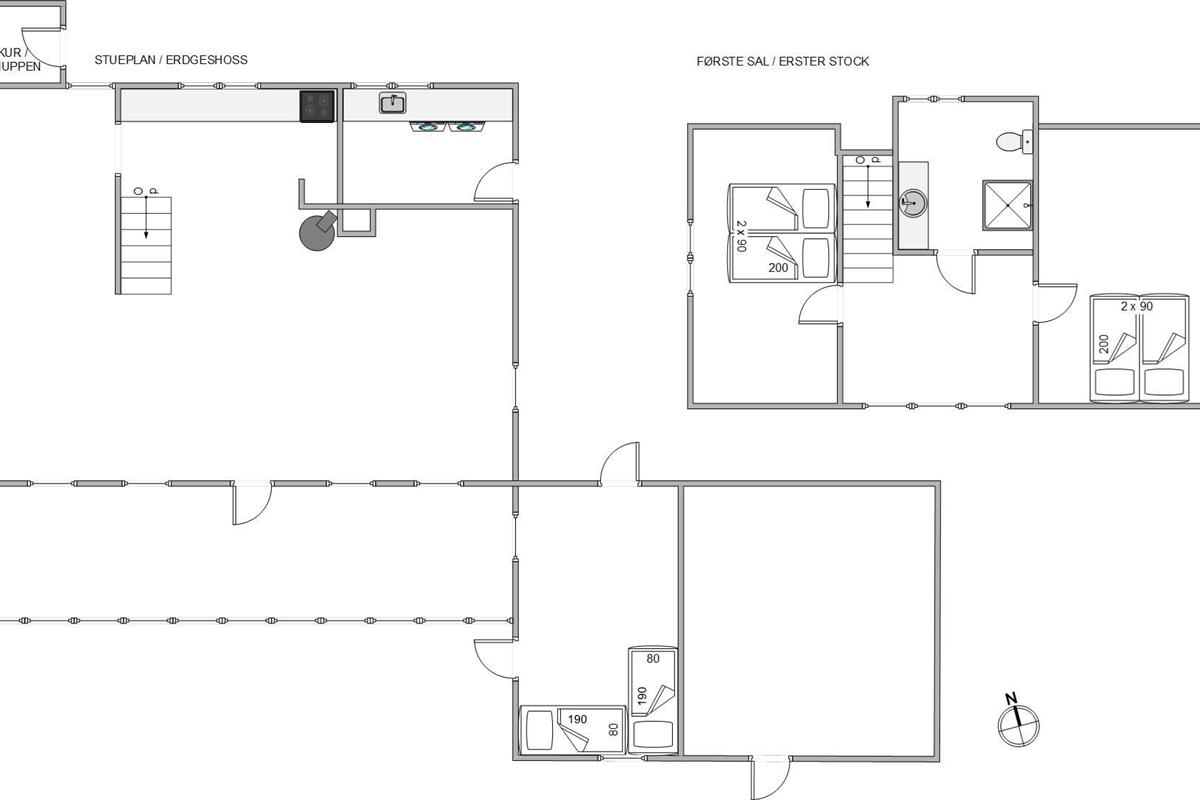 Euer Ferienhaus in Blåvand ist gut mit allem ausgestattet, was ihr für eine Auszeit vom Alltag braucht. 2 gemütliche Schlafzimmer mit insgesamt 4 Betten und viel Stauraum für Kleidung und Habseligkeiten sorgen dafür, dass ihr und eure Mitreisenden unter den Dachschrägen zur Ruhe kommen und nach Tagen an der frischen westjütländischen Luft gut schlafen könnt. In der 1. Etage, in der Nähe der Schlafzimmer, befindet sich auch das Badezimmer des Ferienhauses.