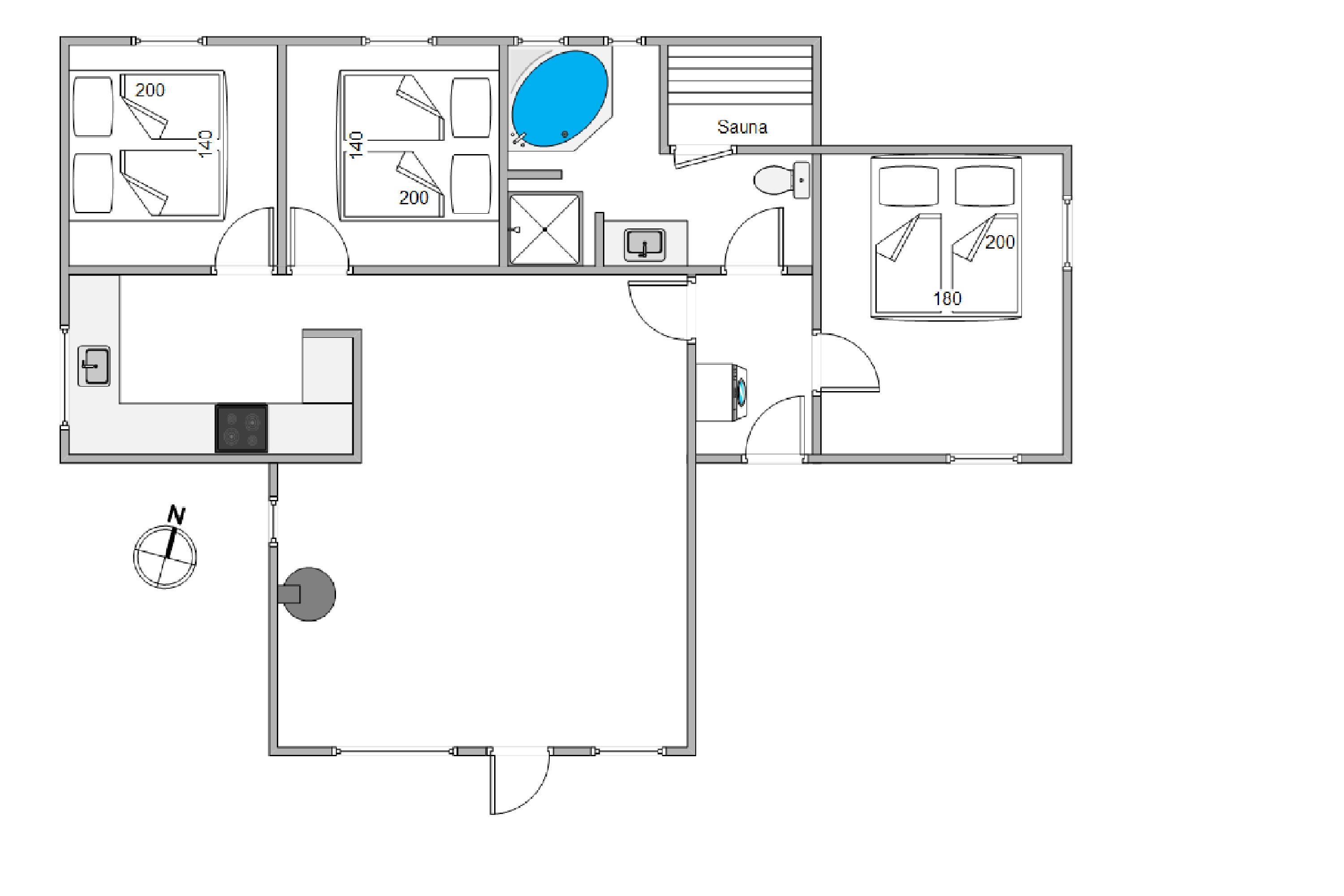 The six sleeping spaces are arranged across three bedrooms. For added convenience, the holiday home includes everything needed to make your relaxing holiday even more comfortable. Alongside high-speed internet, there are German and Danish TV channels, a washer-dryer combination, and of course, a dishwasher. Additionally, an energy-efficient air-to-air heat pump is installed.