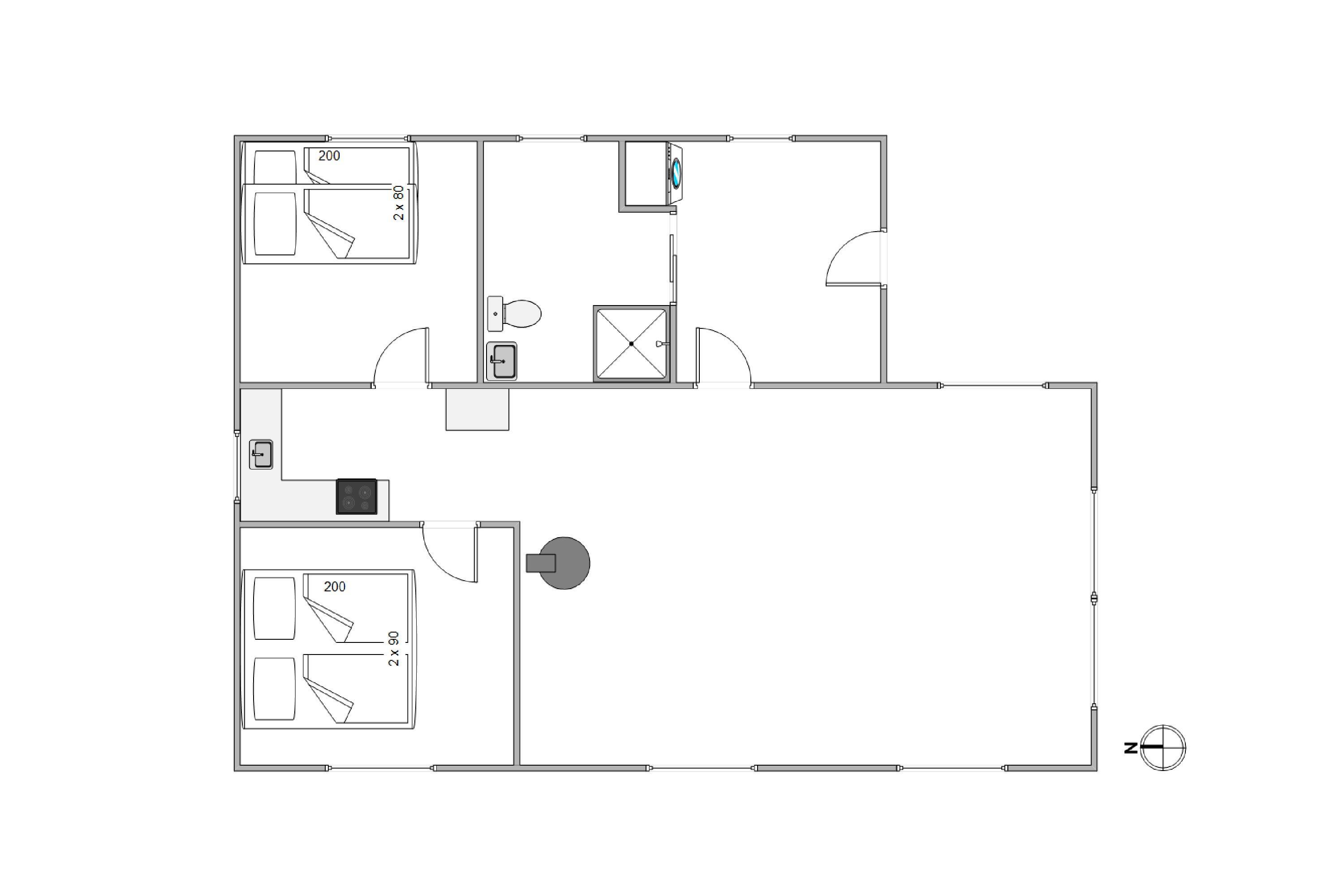 The 50-square-metre holiday home has two bedrooms, making it ideal for a small family or two couples. The living area features comfortable furnishings and a cosy wood-burning stove centrally positioned to provide warmth and comfort. There's plenty of space for relaxation - whether watching films, reading a good book, or simply admiring the unique natural scenery right outside your windows.