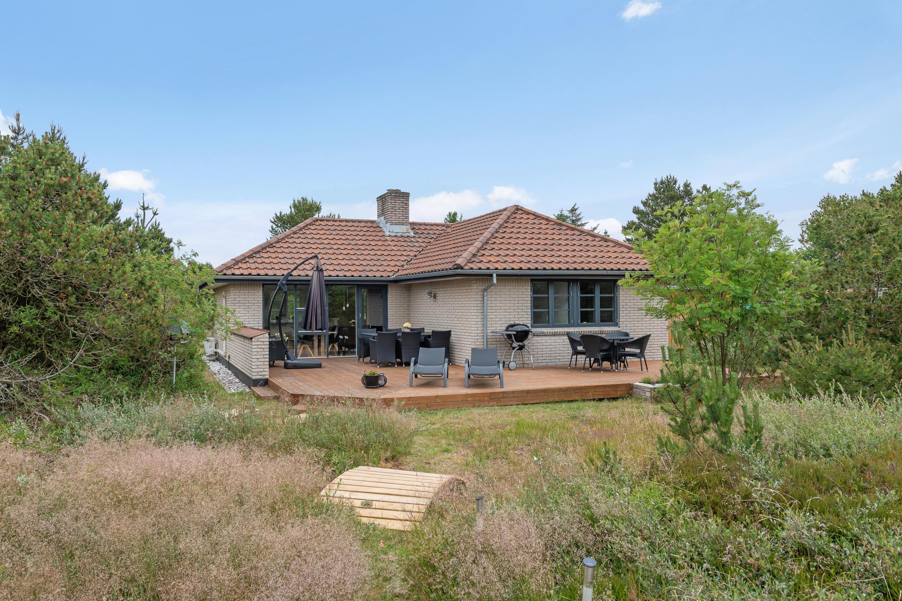Located at Gl. Hovej 10, this stylish, family-friendly holiday home sits on an enchanting natural plot with views across the stunning West Coast landscape. Both the beautiful North Sea beach and the vibrant holiday resort of Blåvand are easily accessible on foot or by bicycle. Here you can escape everyday life and recharge your batteries.