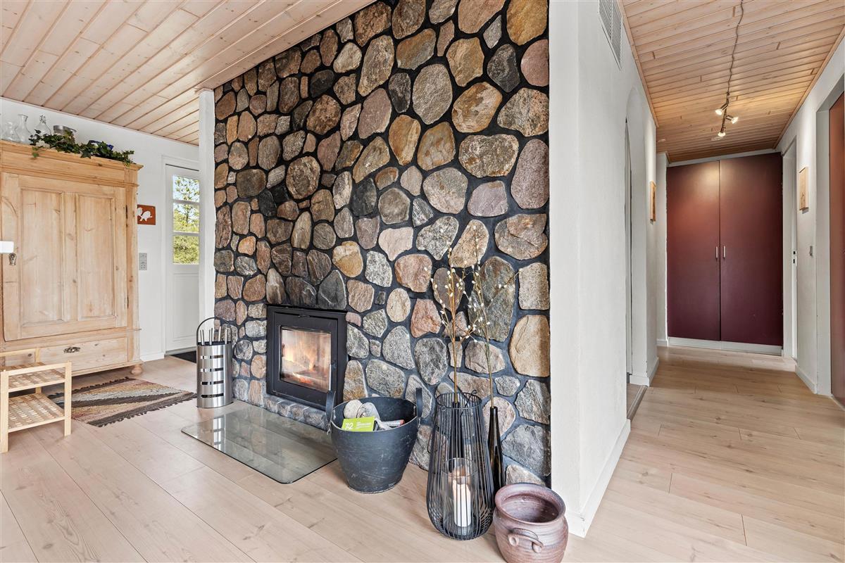 The house features an energy-efficient heat pump, ensuring a comfortable indoor climate while keeping energy costs down. On cooler days, the crackling wood-burning stove provides additional warmth and comfort. Large panoramic windows offer magnificent views of the surrounding countryside. The bright kitchen is equipped with everything you need to prepare delicious holiday meals.