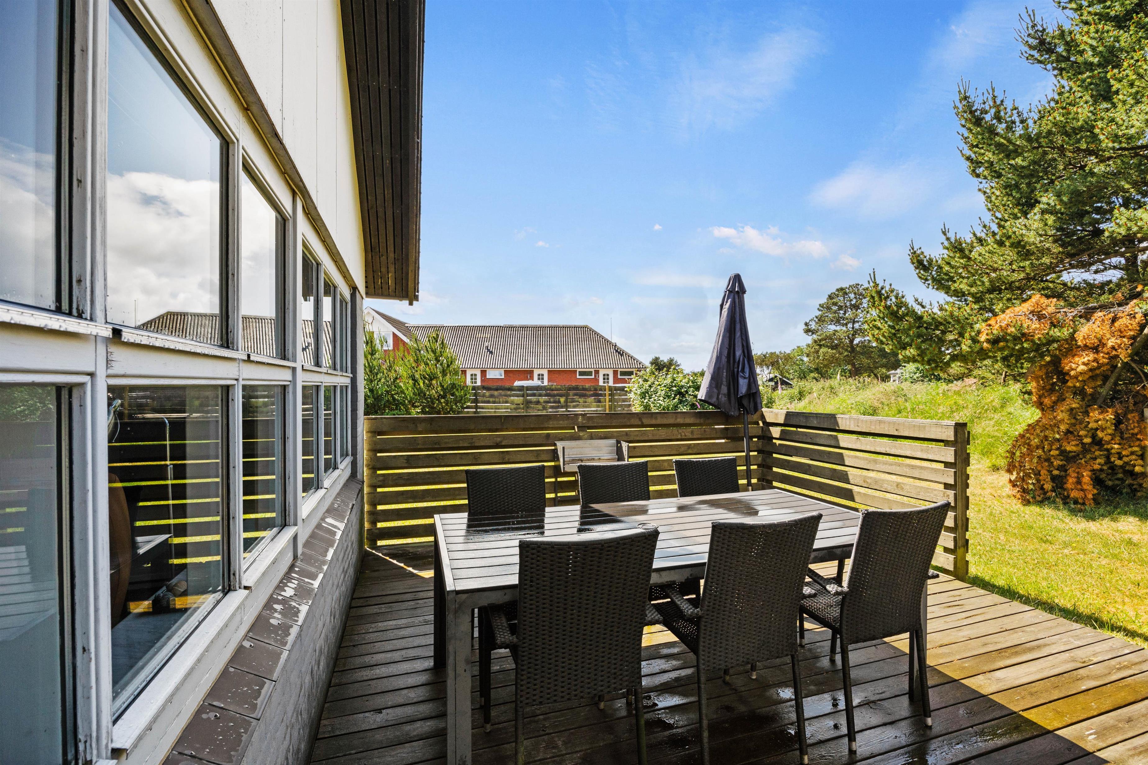 The holiday home is located on a 1500 m2 lawn, which is partly surrounded by bushes and trees, providing the house with good protection from the wind and prying eyes. Depending on the sun and wind, you can also choose between an east- or west-facing terrace.
