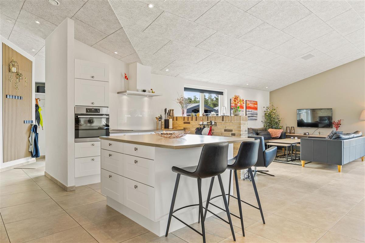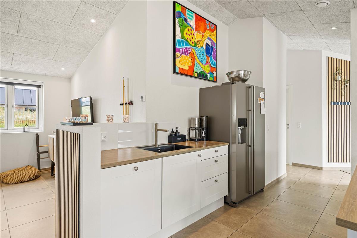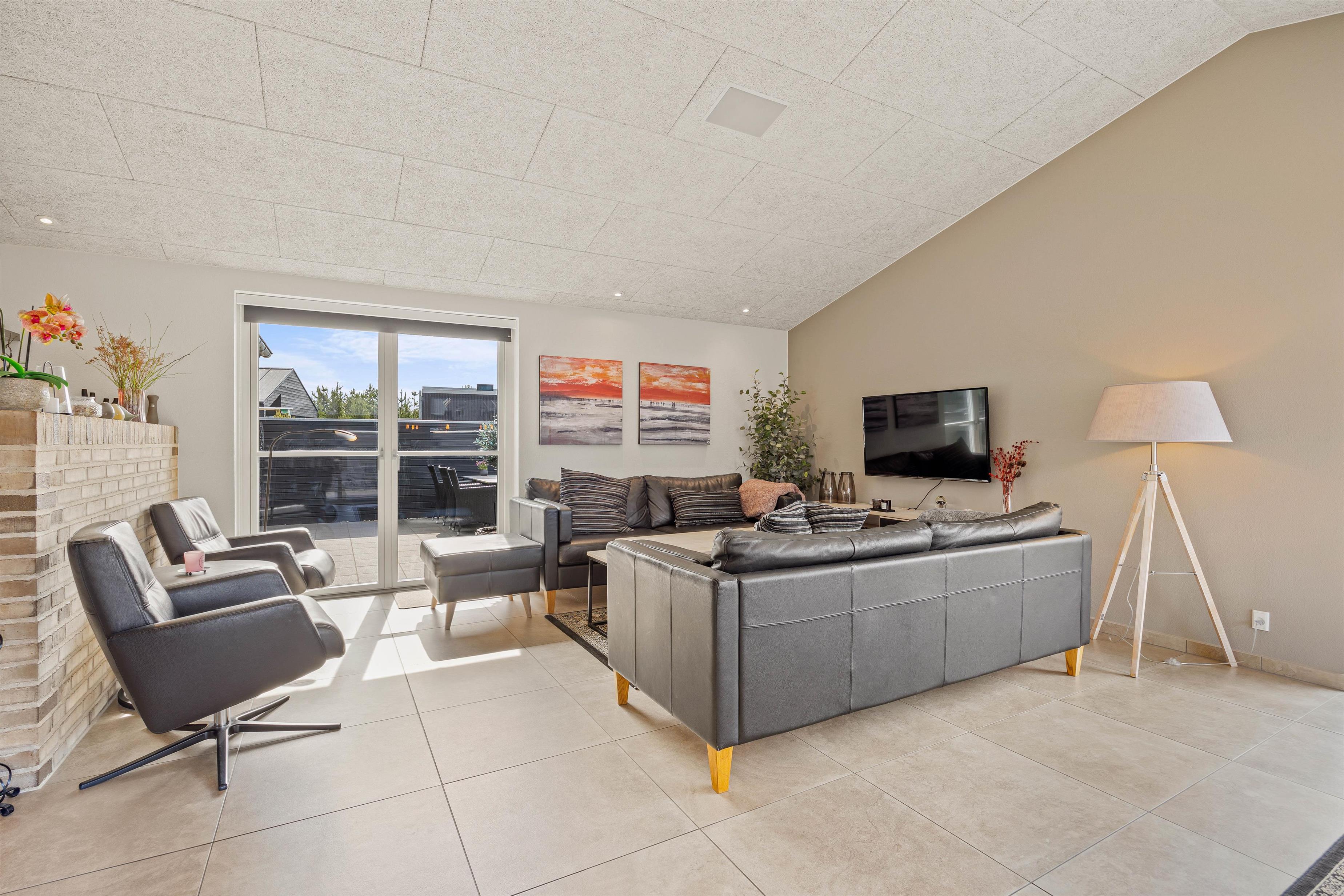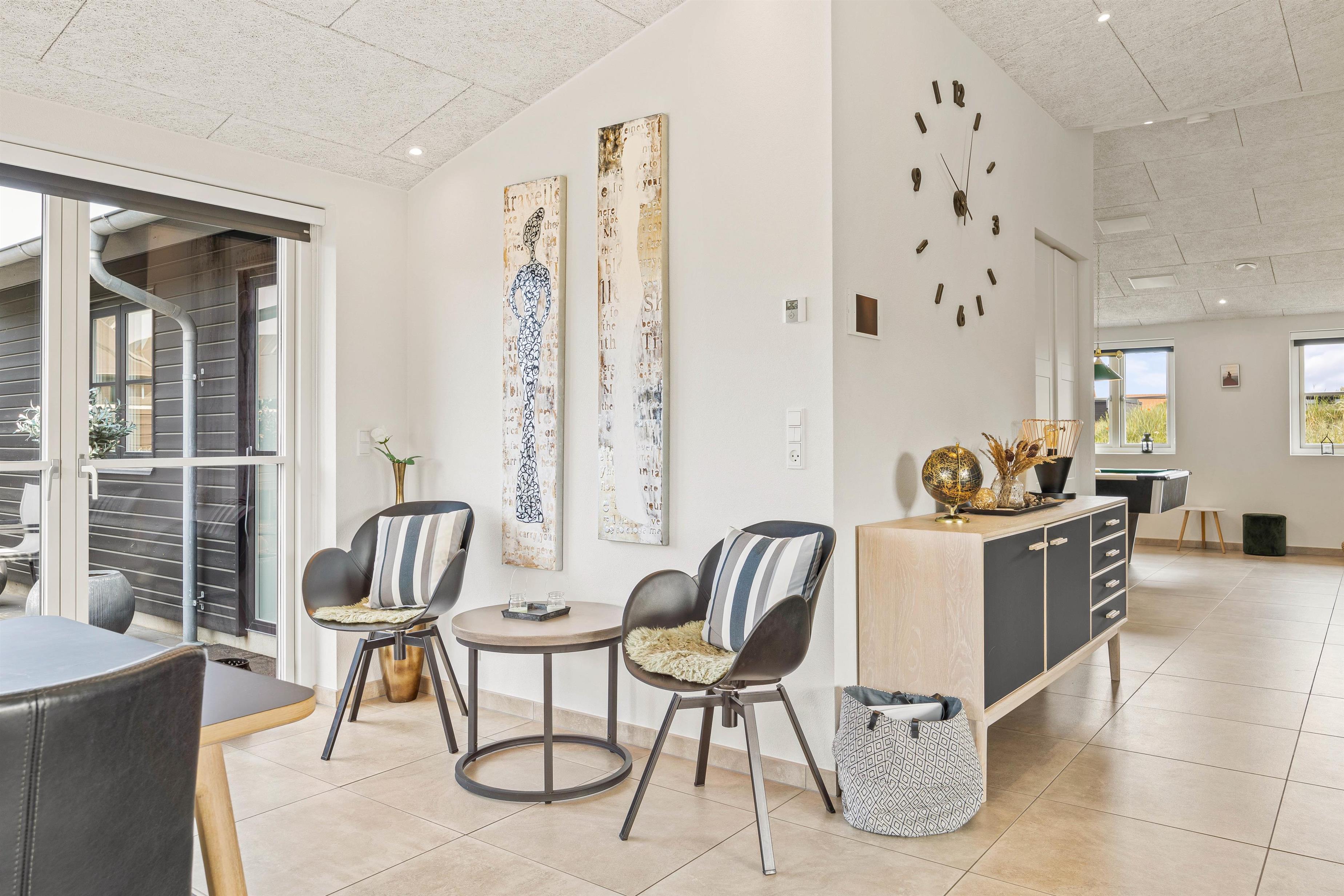 Located in a newly developed area of Blåvand, this activity-focused holiday home accommodates up to 8 people and is ideal for a fantastic family holiday. The spacious, open-plan environment, stylishly decorated with light colours and high ceilings, offers plenty of room for everyone.