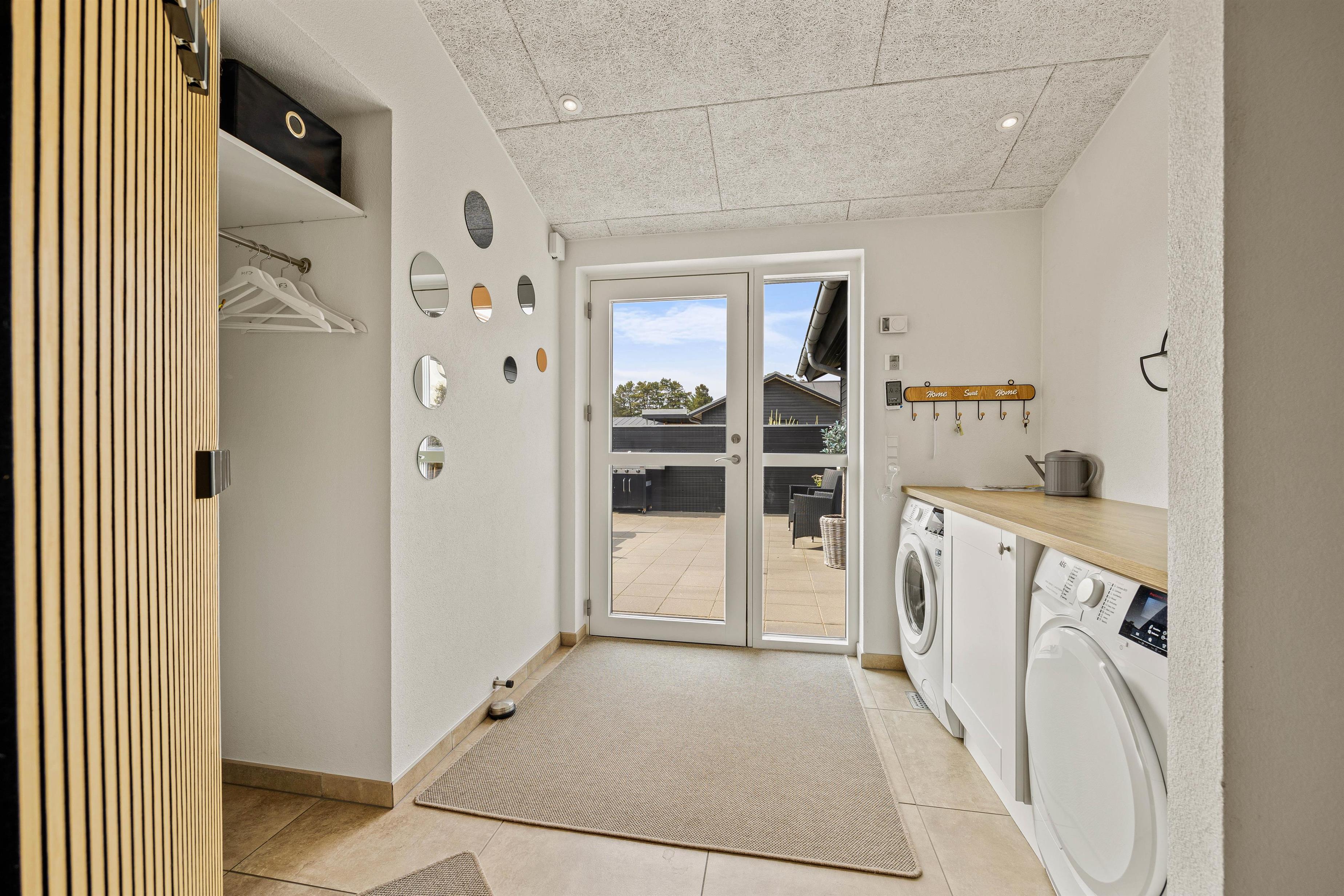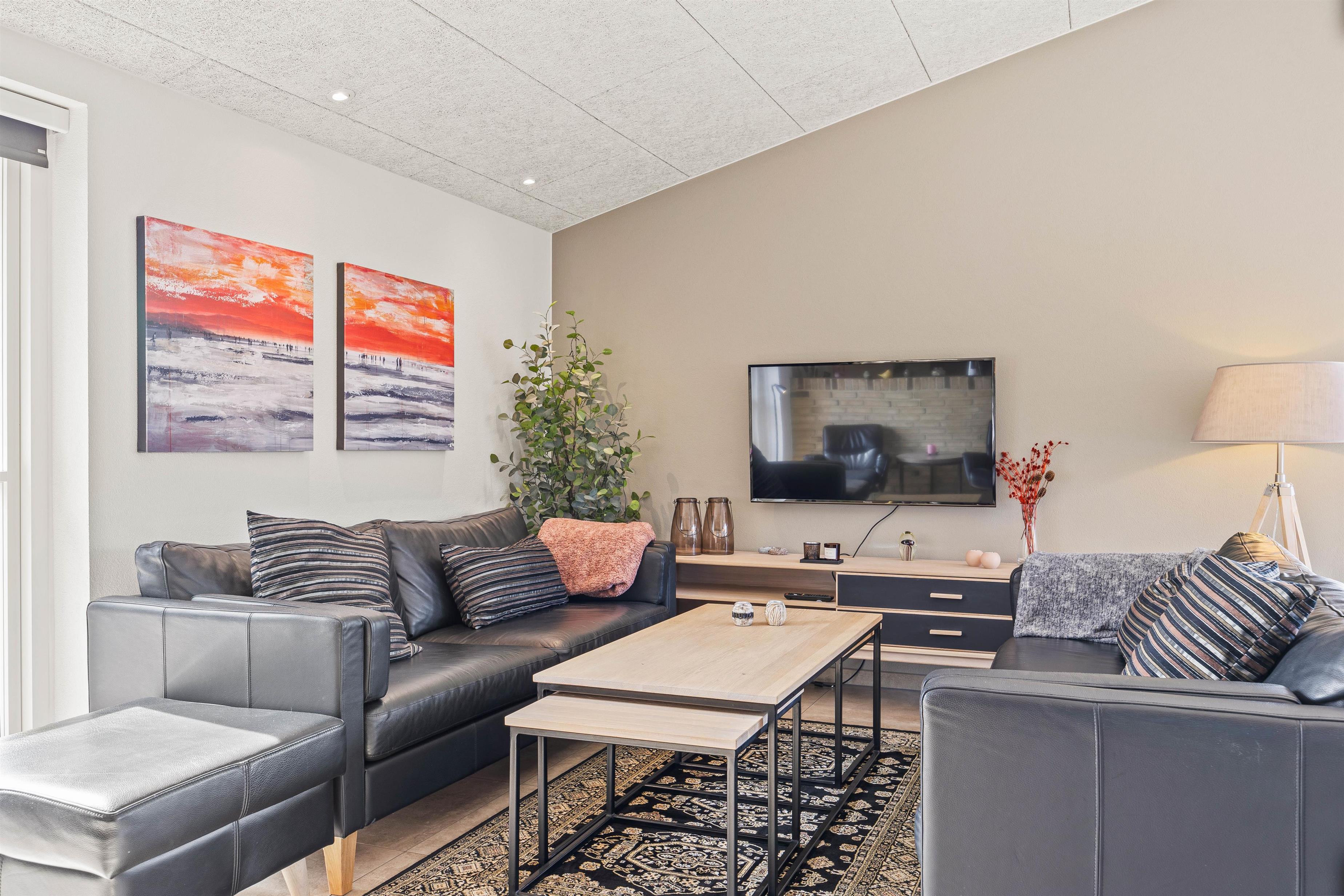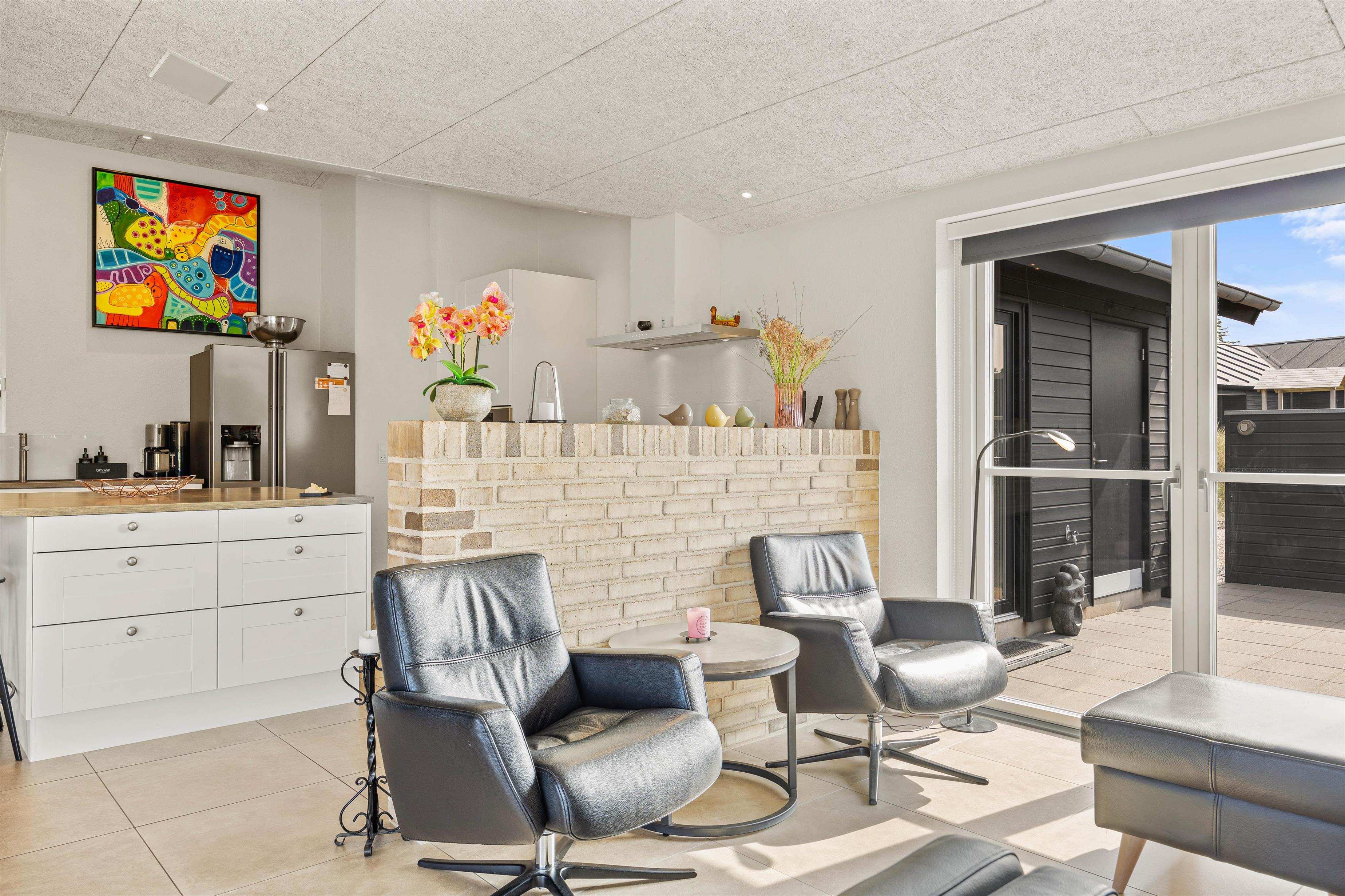 Located in a newly developed area of Blåvand, this activity-focused holiday home accommodates up to 8 people and is ideal for a fantastic family holiday. The spacious, open-plan environment, stylishly decorated with light colours and high ceilings, offers plenty of room for everyone.