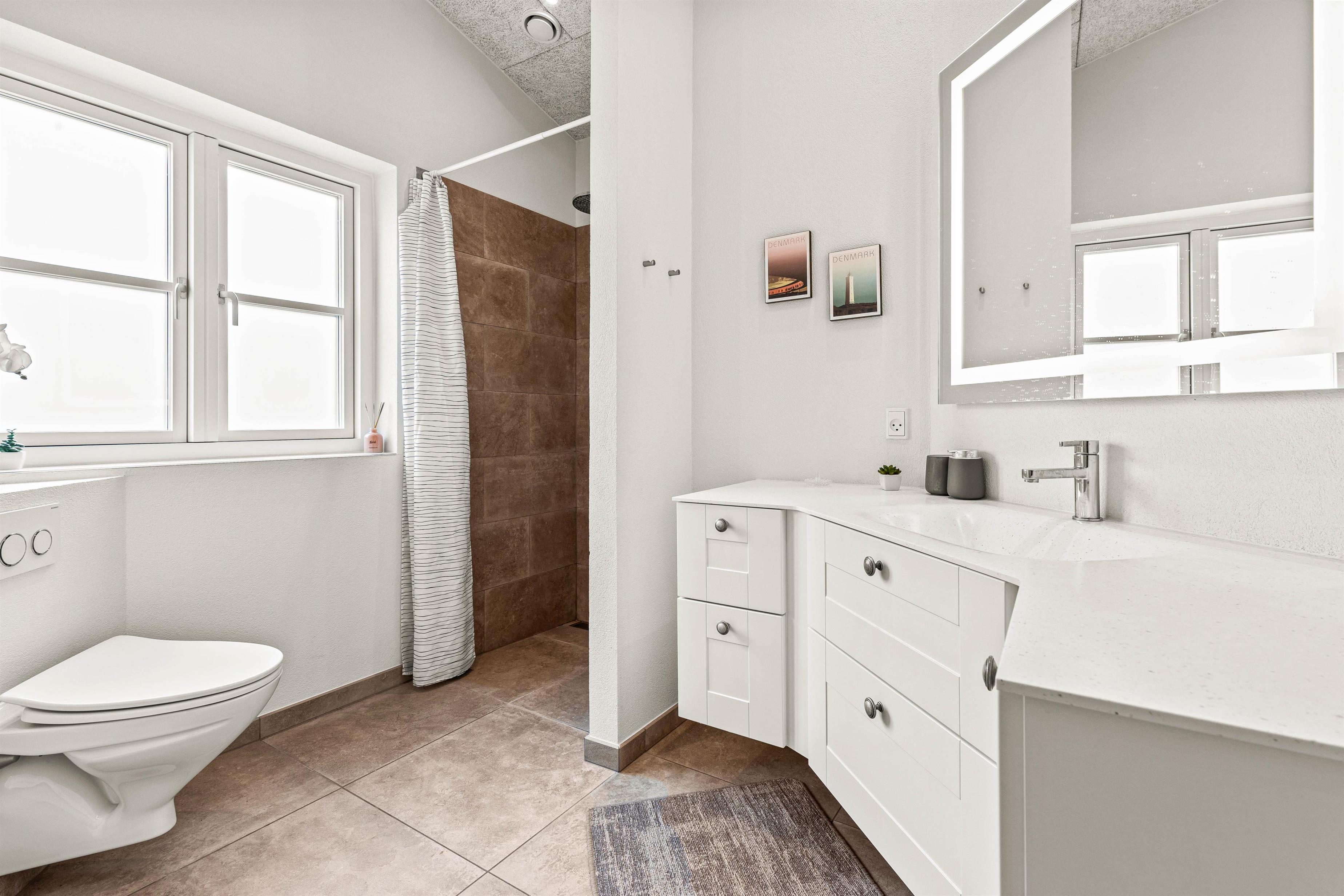 The holiday home is practically arranged with two well-appointed bathrooms. One bathroom provides access to the holiday home's lovely sauna, perfect for relaxing and recharging after an active day in the fresh air.
