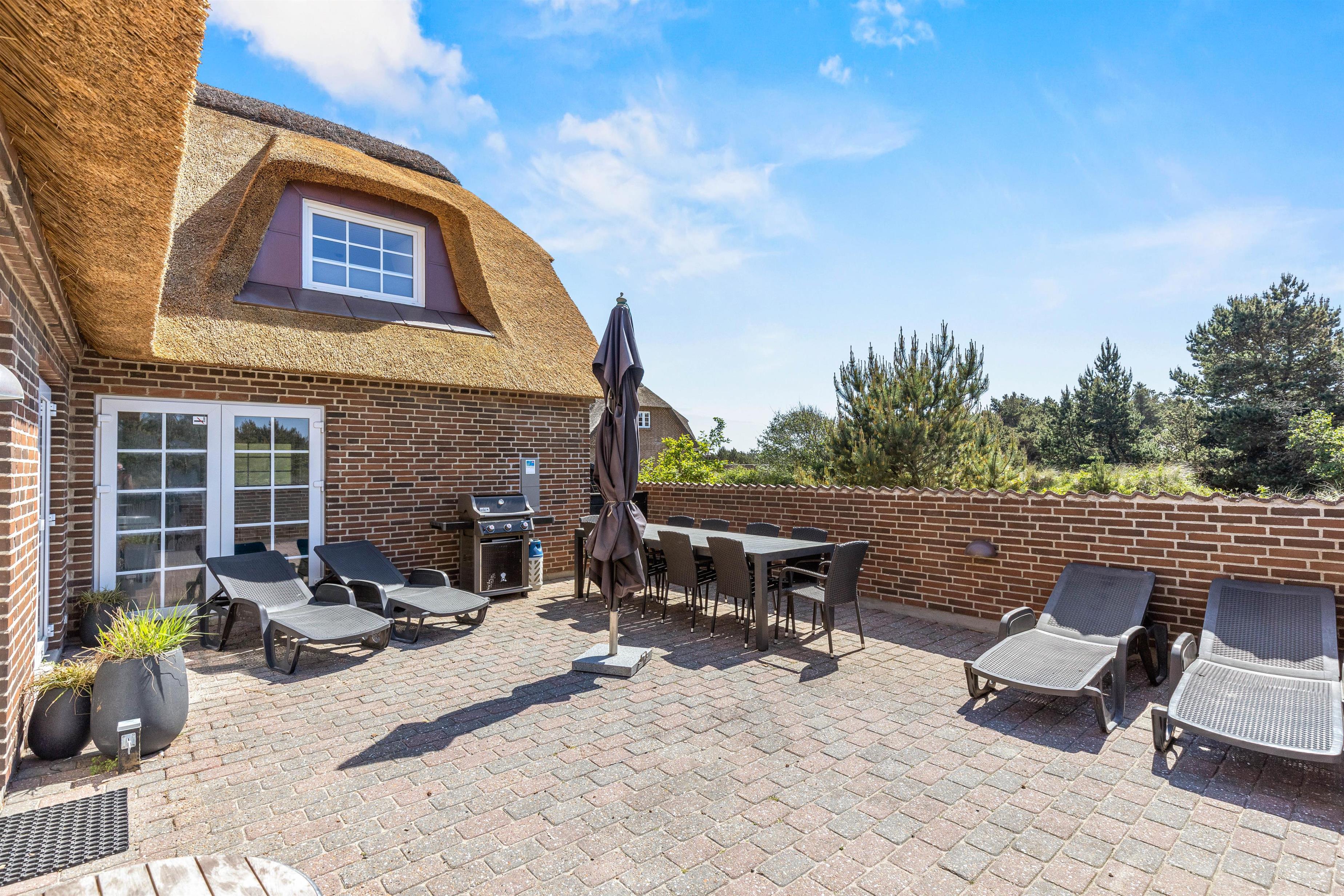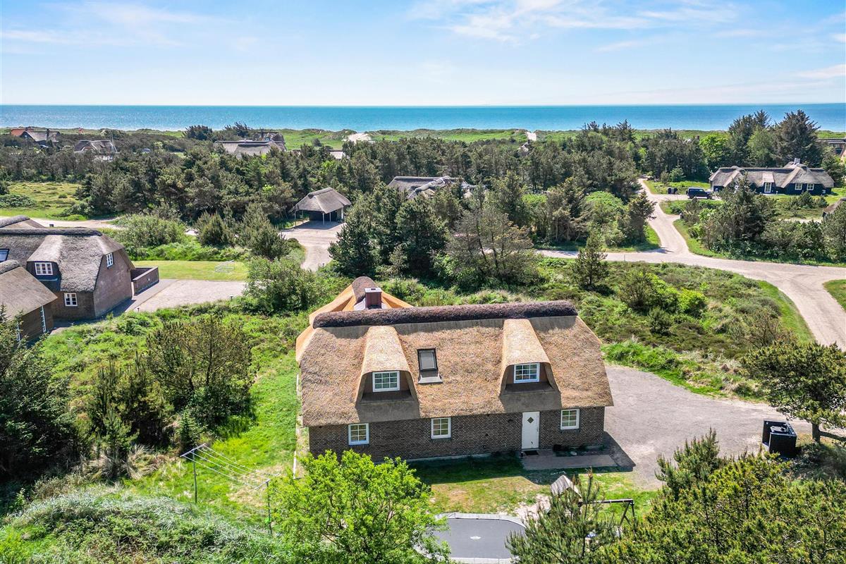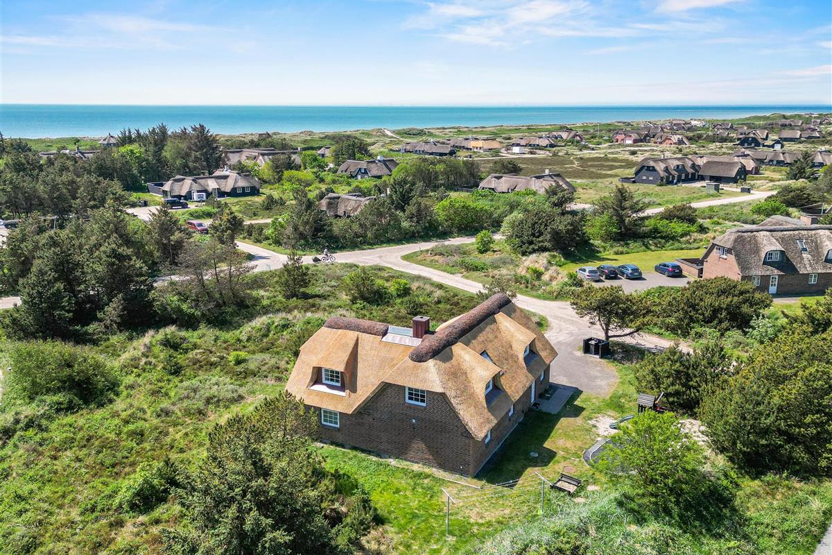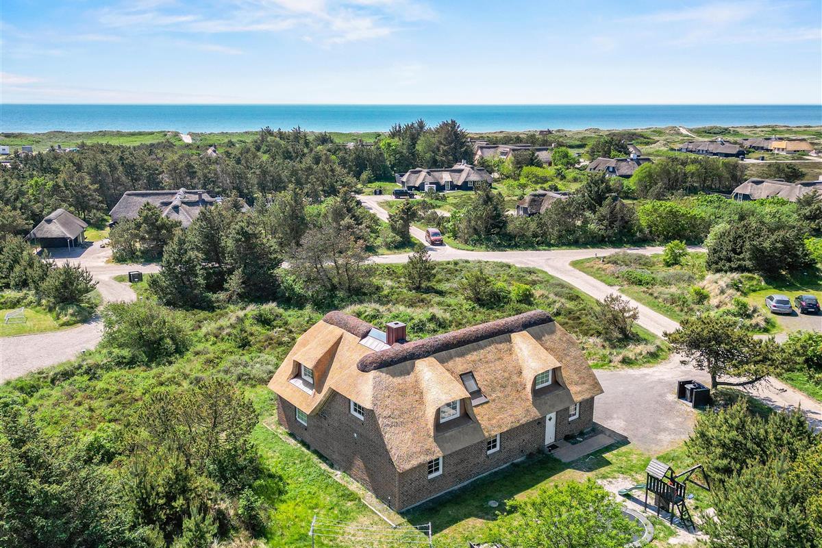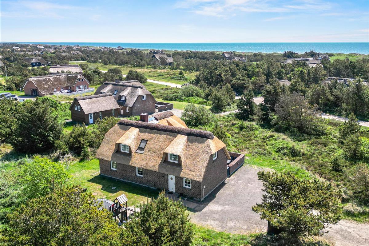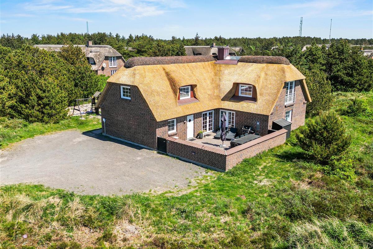 Located at Horns Rev 10 in Blåvand, this thatched roof holiday home with pool sits on beautiful natural grounds within the dune landscape. It accommodates up to 12 people, making it ideal for family holidays or groups of couples holidaying together. You're also welcome to bring two dogs. For those with electric cars, there's a charging point at the holiday home.