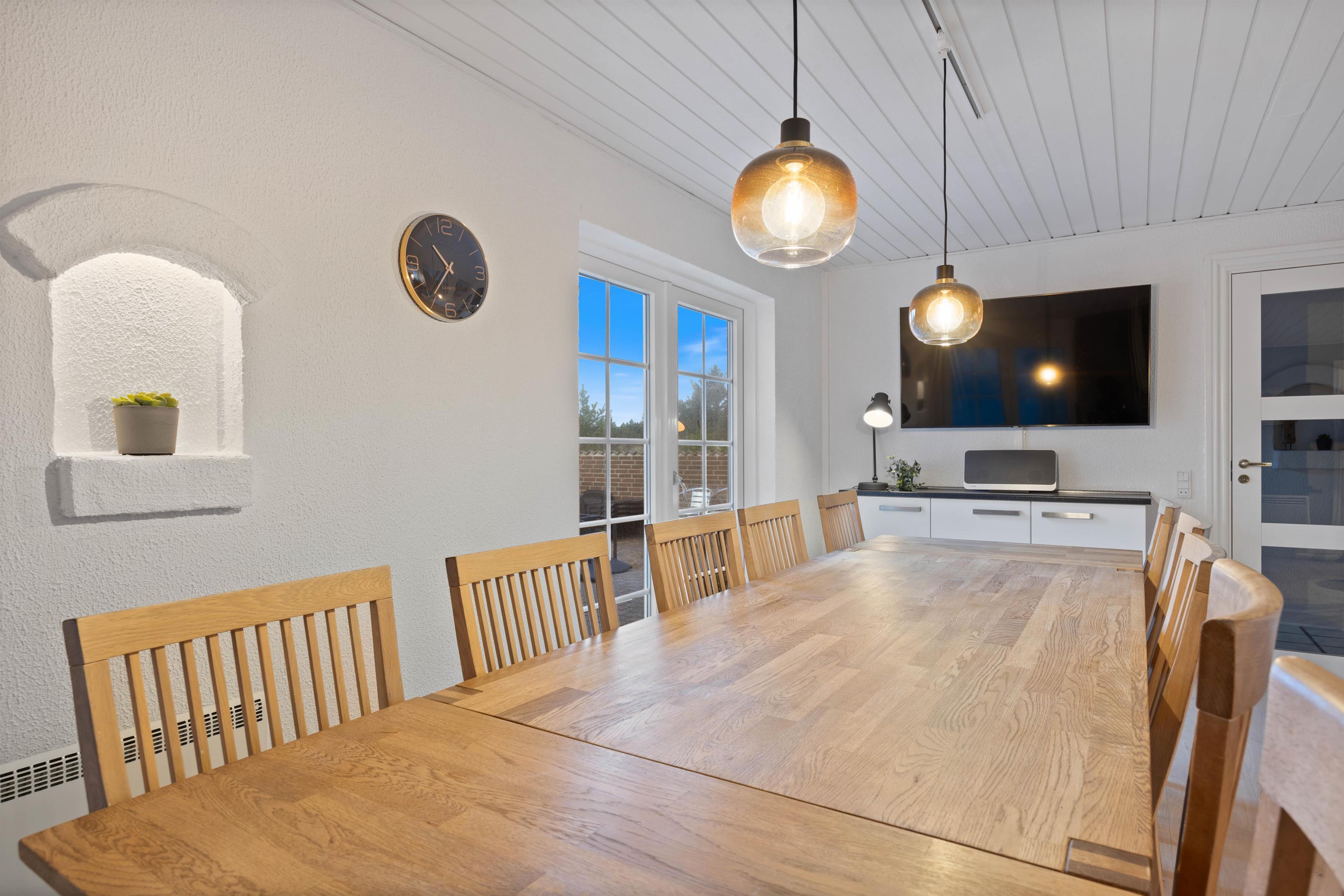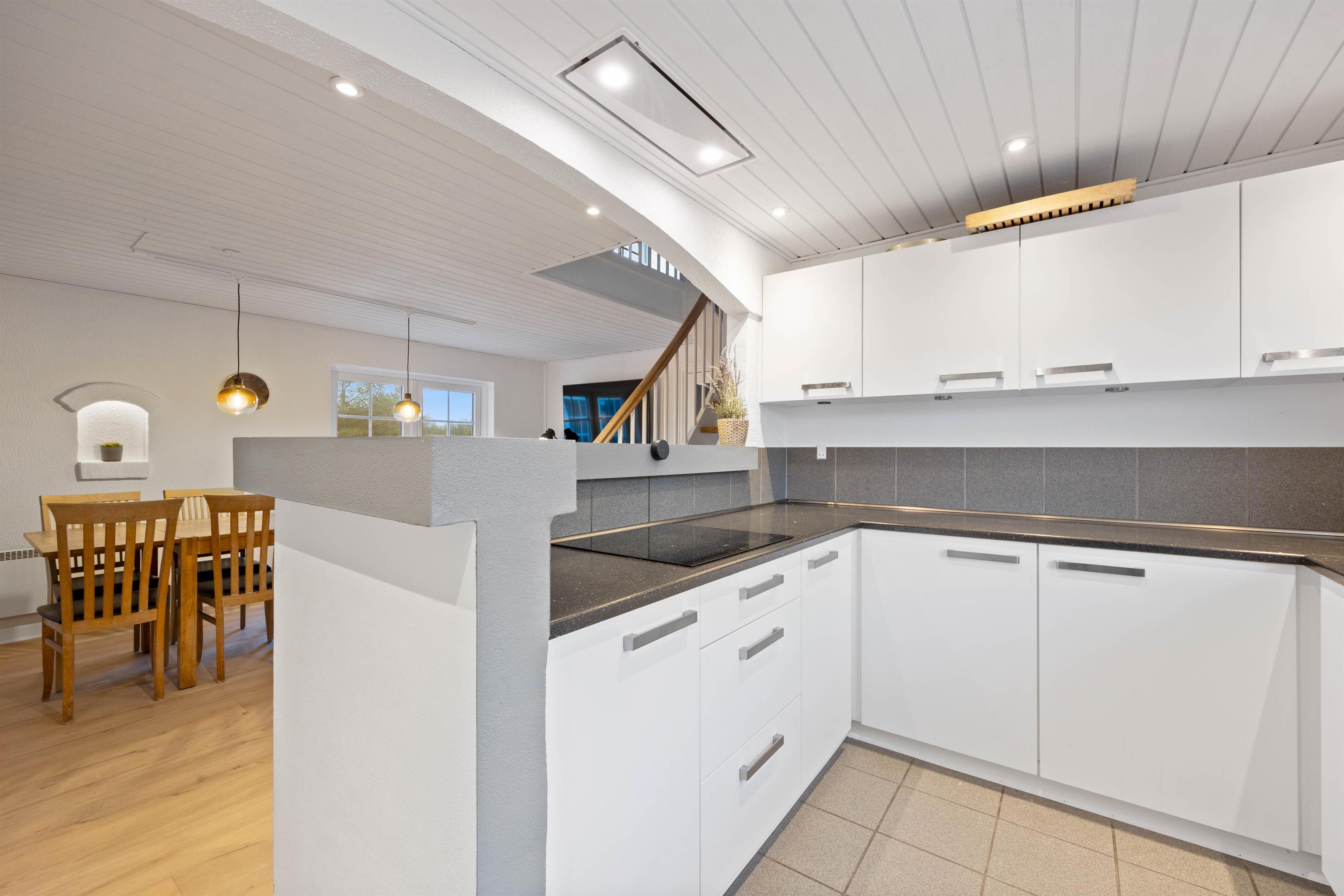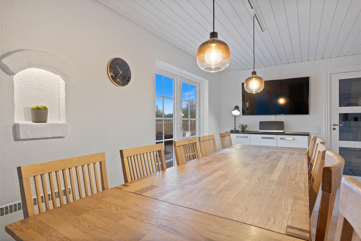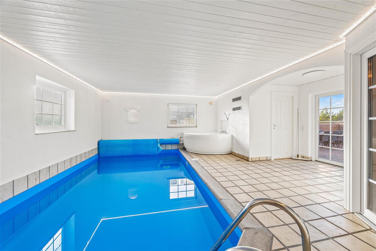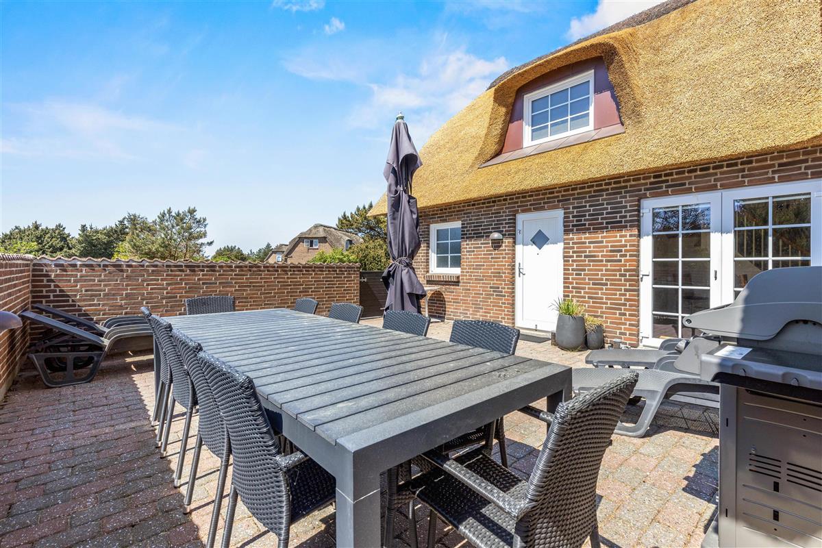 Located at Horns Rev 10 in Blåvand, this thatched roof holiday home with pool sits on beautiful natural grounds within the dune landscape. It accommodates up to 12 people, making it ideal for family holidays or groups of couples holidaying together. You're also welcome to bring two dogs. For those with electric cars, there's a charging point at the holiday home.