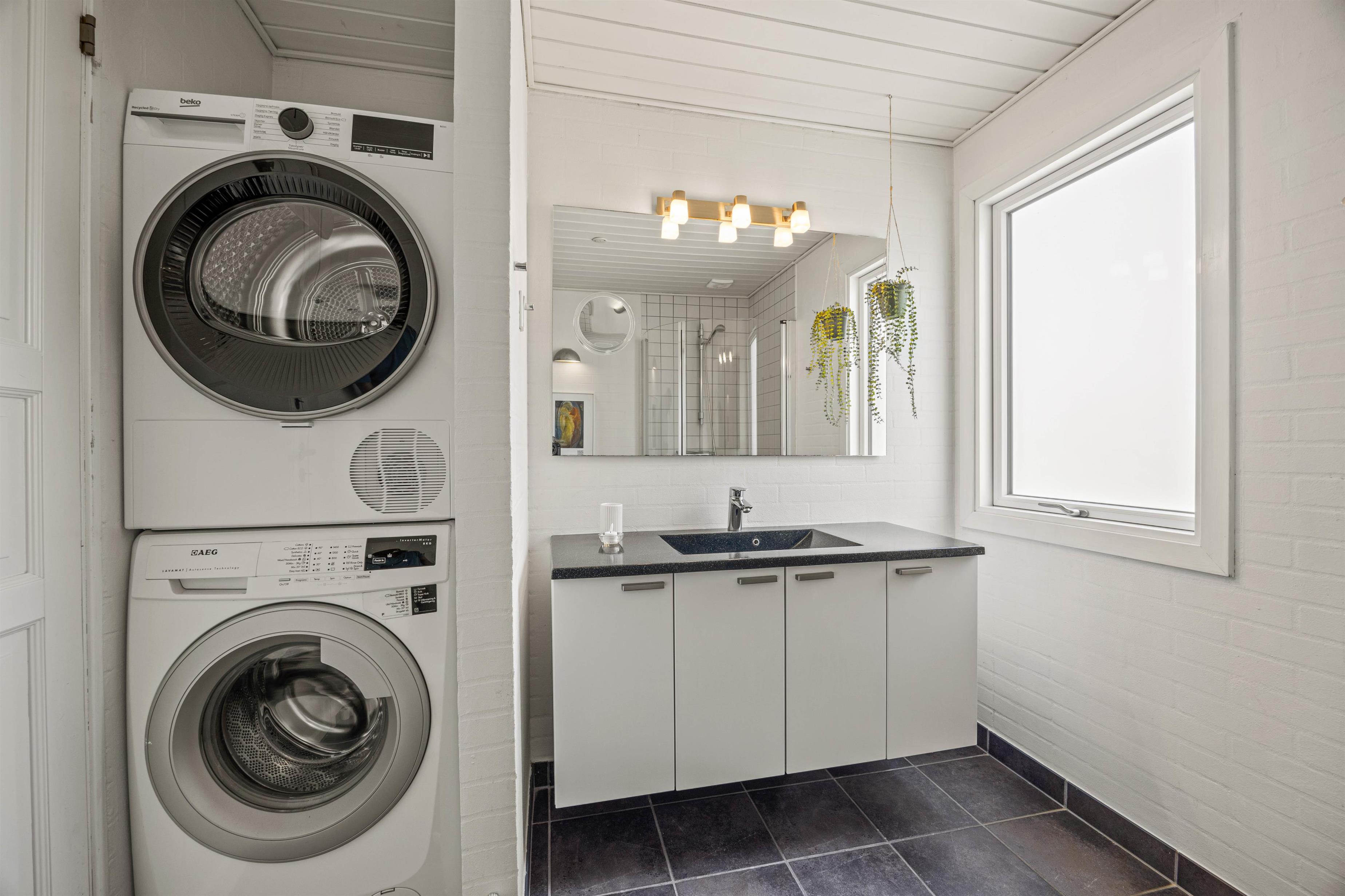 Eine voll ausgestattete Küche mit Spülmaschine und guten Geräten macht die Zubereitung gemeinsamer Mahlzeiten leicht und unkompliziert. Ergänzt wird die Ausstattung durch eine Waschmaschine, einen Trockner und eine energieeffiziente Wärmepumpe, die das ganze Jahr über für angenehme Temperaturen sorgt.