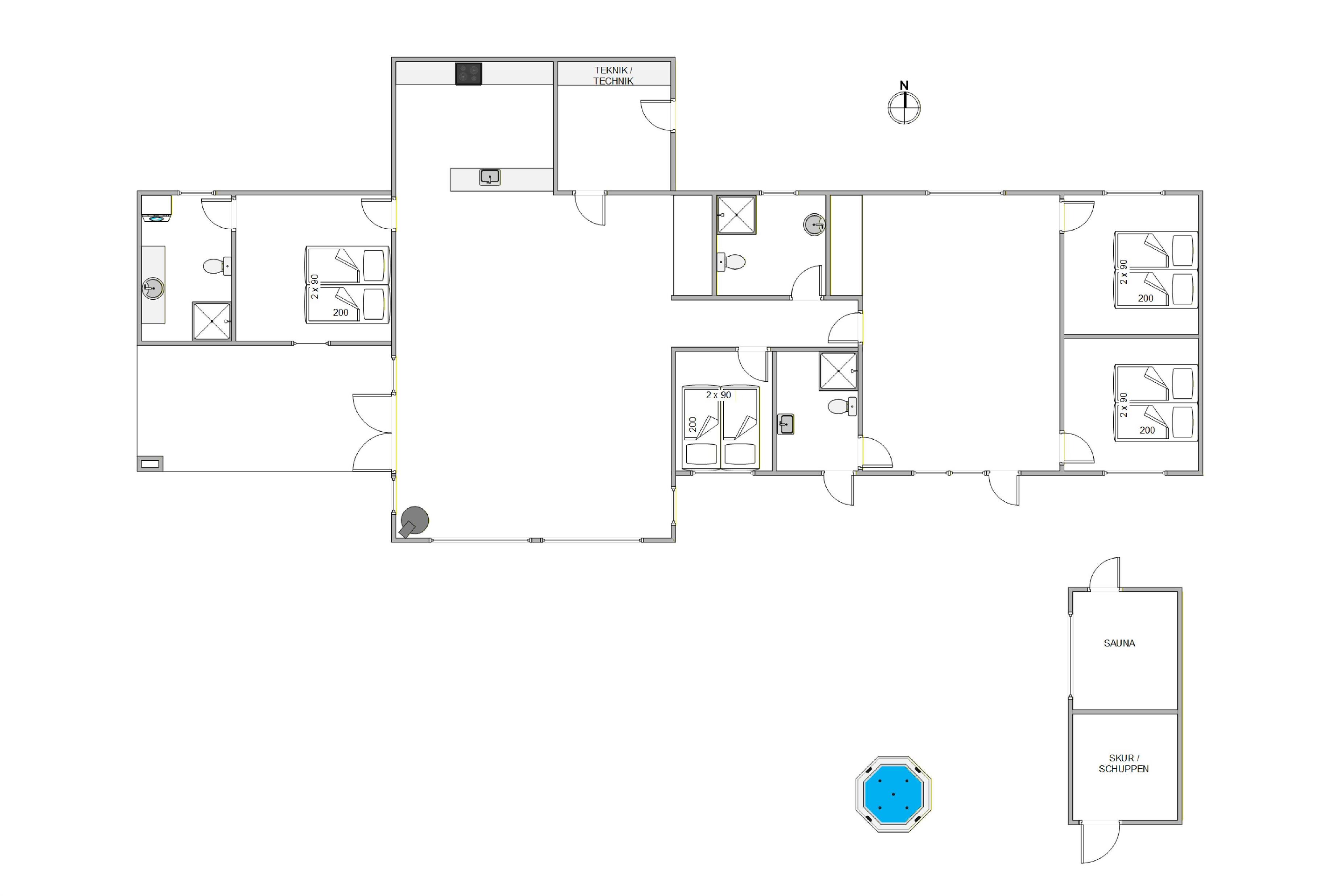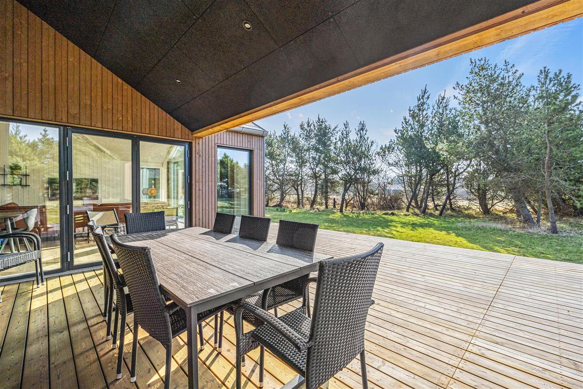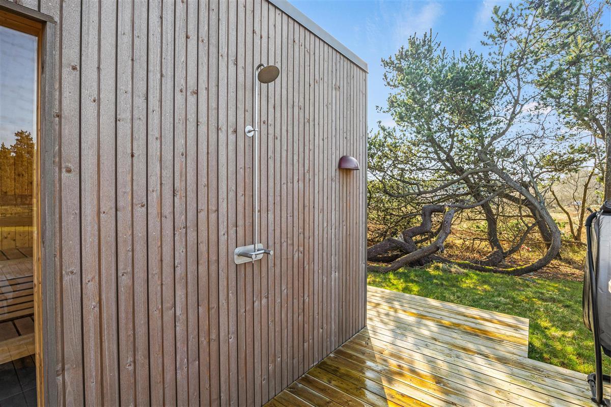 The beautiful wooden terrace, extending along the entire south side of the house, provides ample space for enjoying sunny days. Plenty of garden furniture is available for relaxation. A particular highlight is the outdoor sauna and hot tub. You can enjoy the sauna with views of nature, then cool off under the outdoor shower before admiring the starry sky above Blåvand while relaxing in the bubbling hot tub. What more could you want? The outdoor shower is available from 1st April to 31st October.