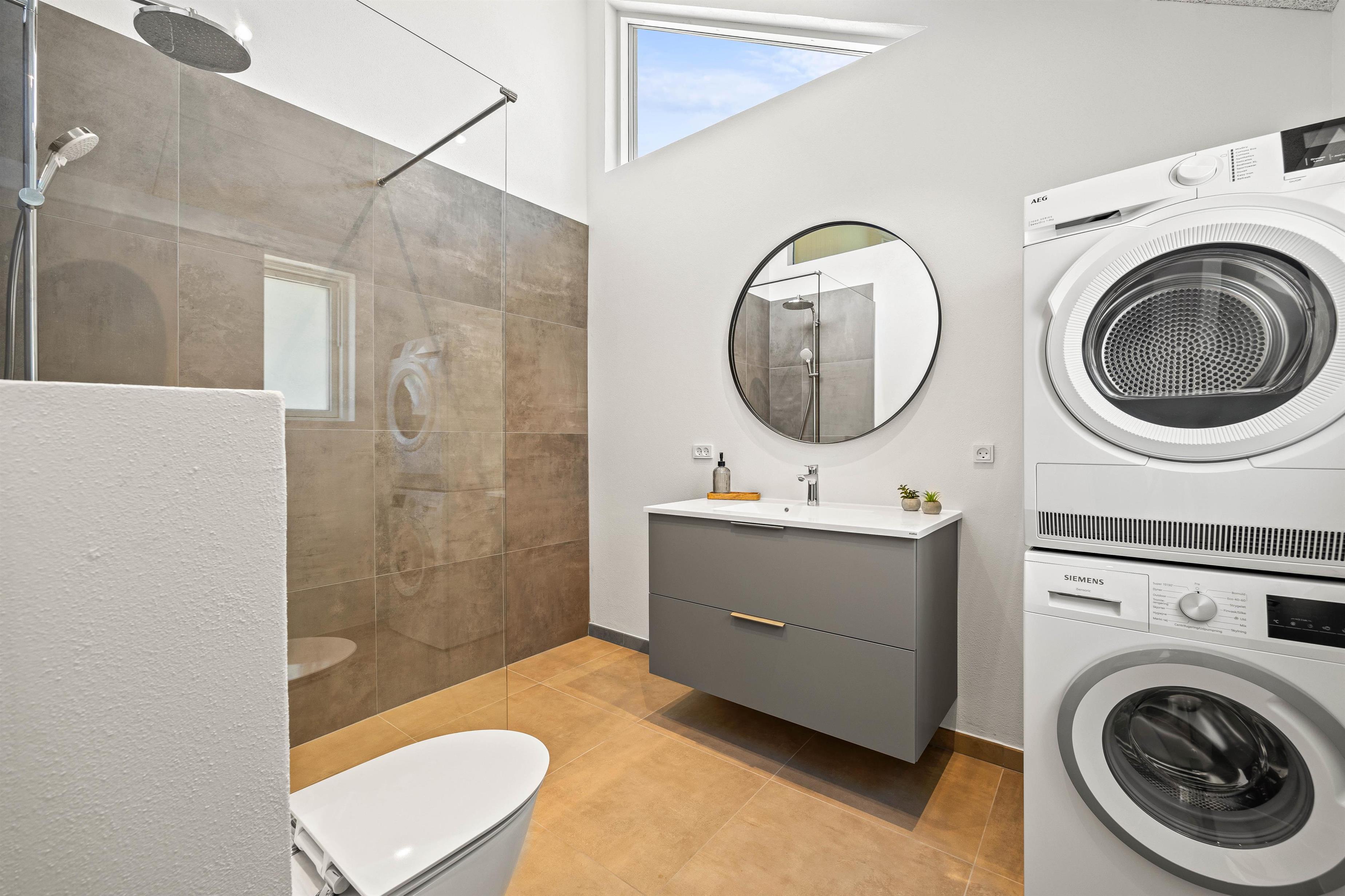 Now for some practical amenities that no holiday home should be without - this holiday home truly has everything covered. Besides a washing machine, tumble dryer and energy-efficient heat pump, the house also features a wall-mounted charging point for electric cars.