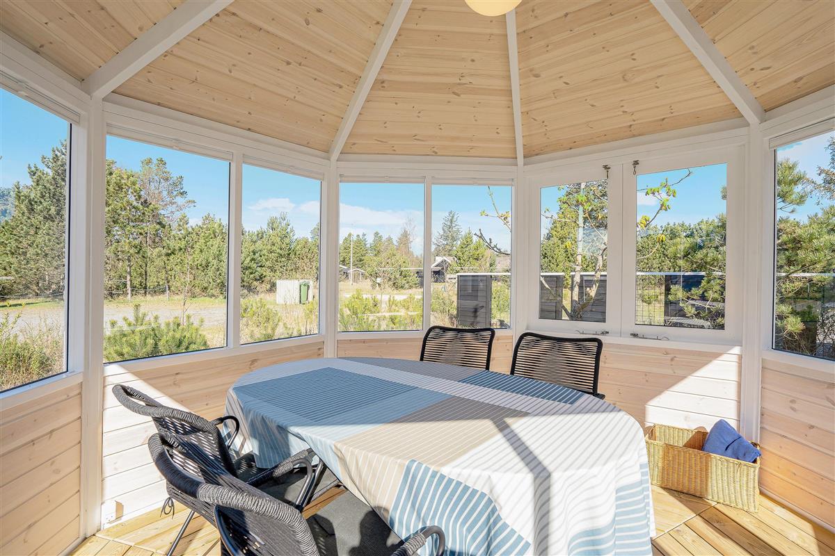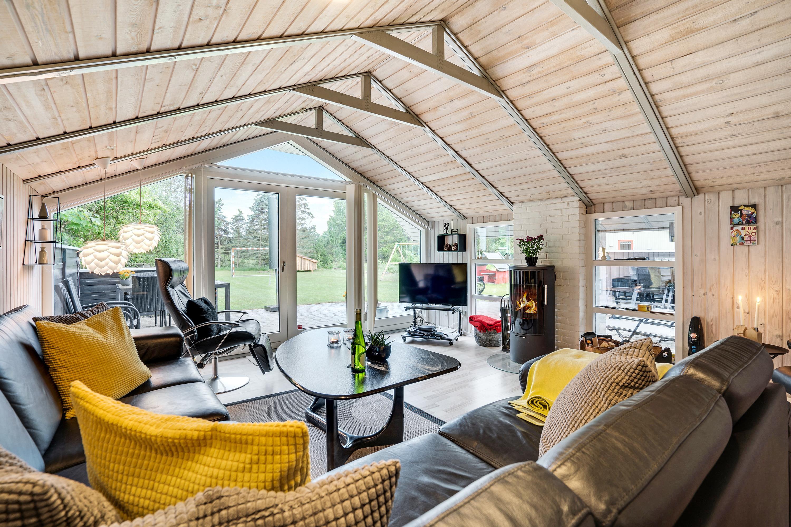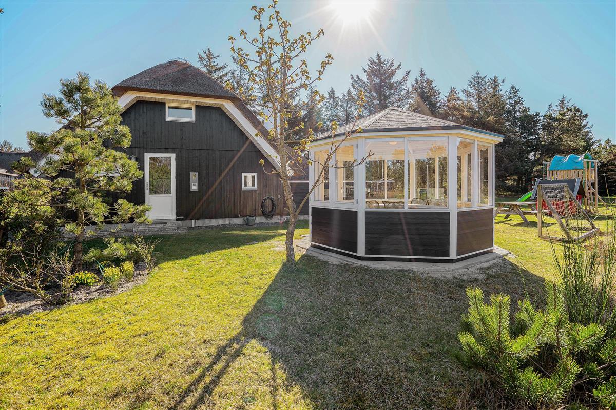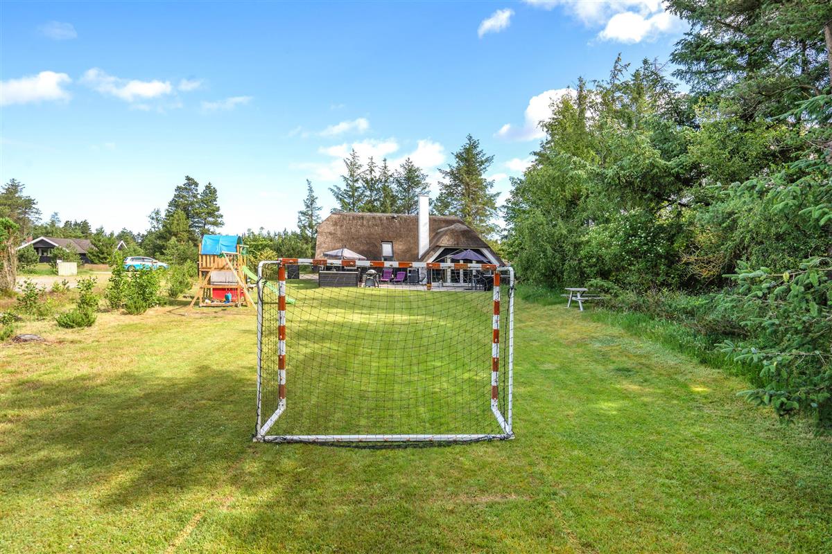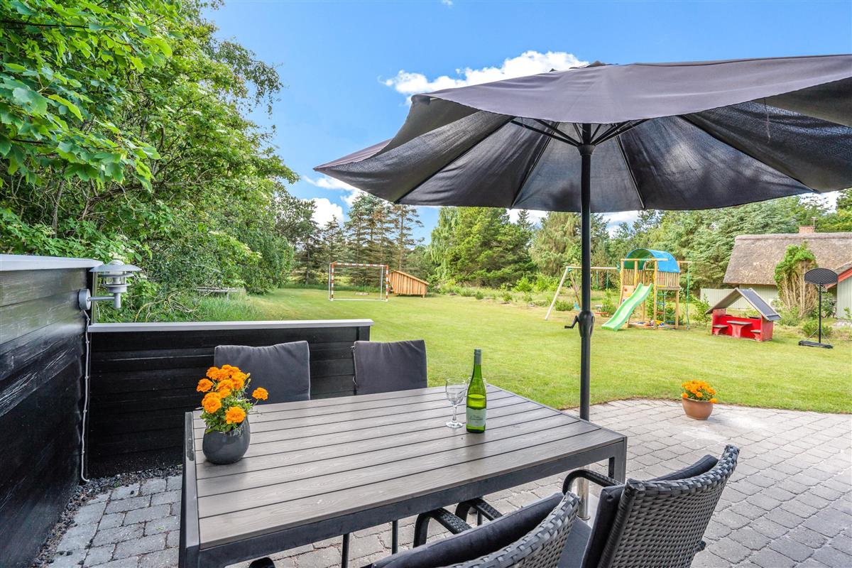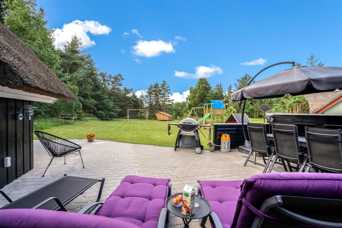 The extensive outdoor area is truly impressive. Not only does it offer quality garden furniture and a barbecue, but it's especially well-equipped for children. At Hestehaven 10, you'll find plenty of space, a climbing tower with slide, swings, a sandpit, room for ball games, a playhouse, and even a shelter where the more adventurous can sleep outdoors. Both your children and dogs can enjoy the abundant space and play facilities while you relax on the sheltered terrace.