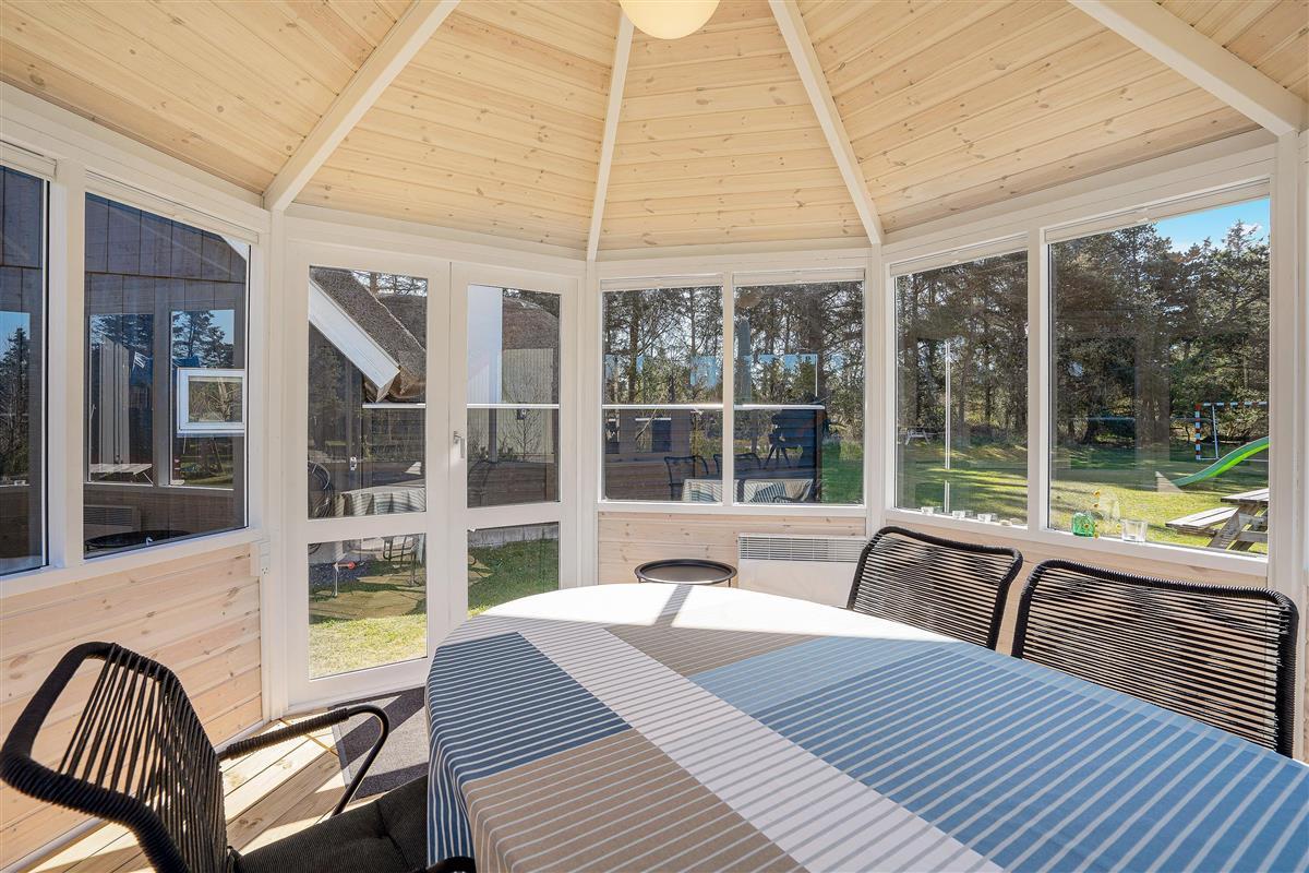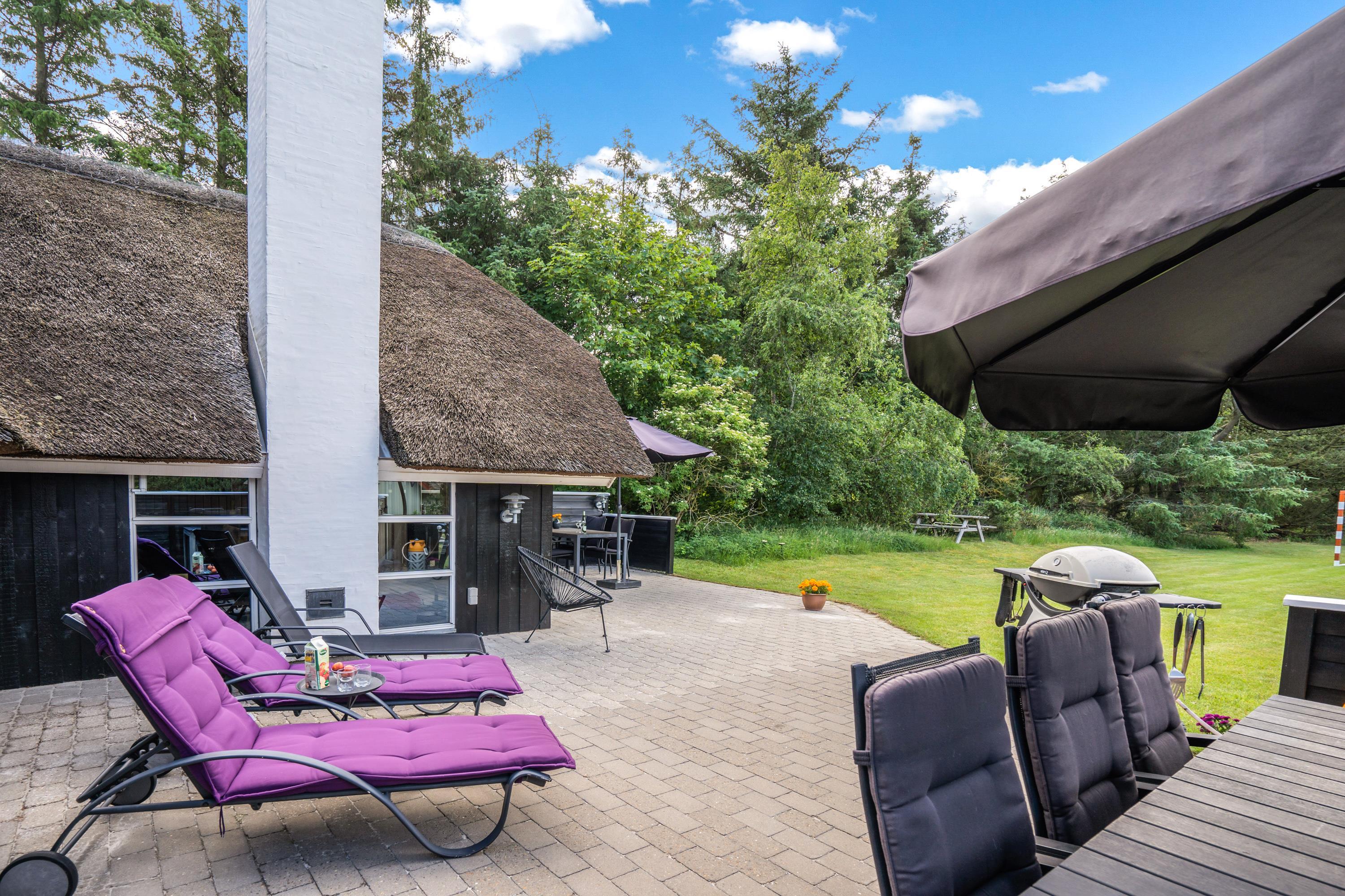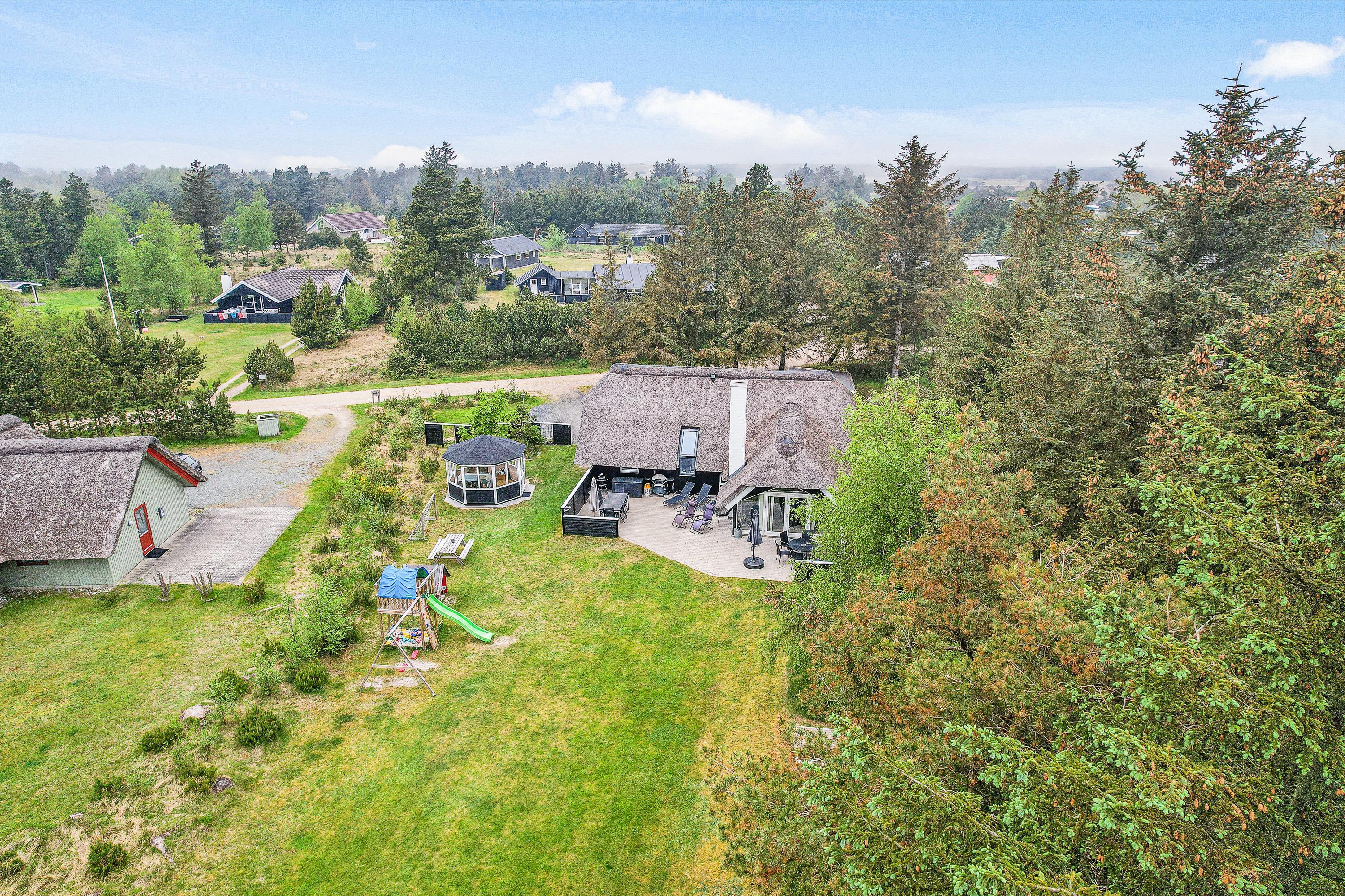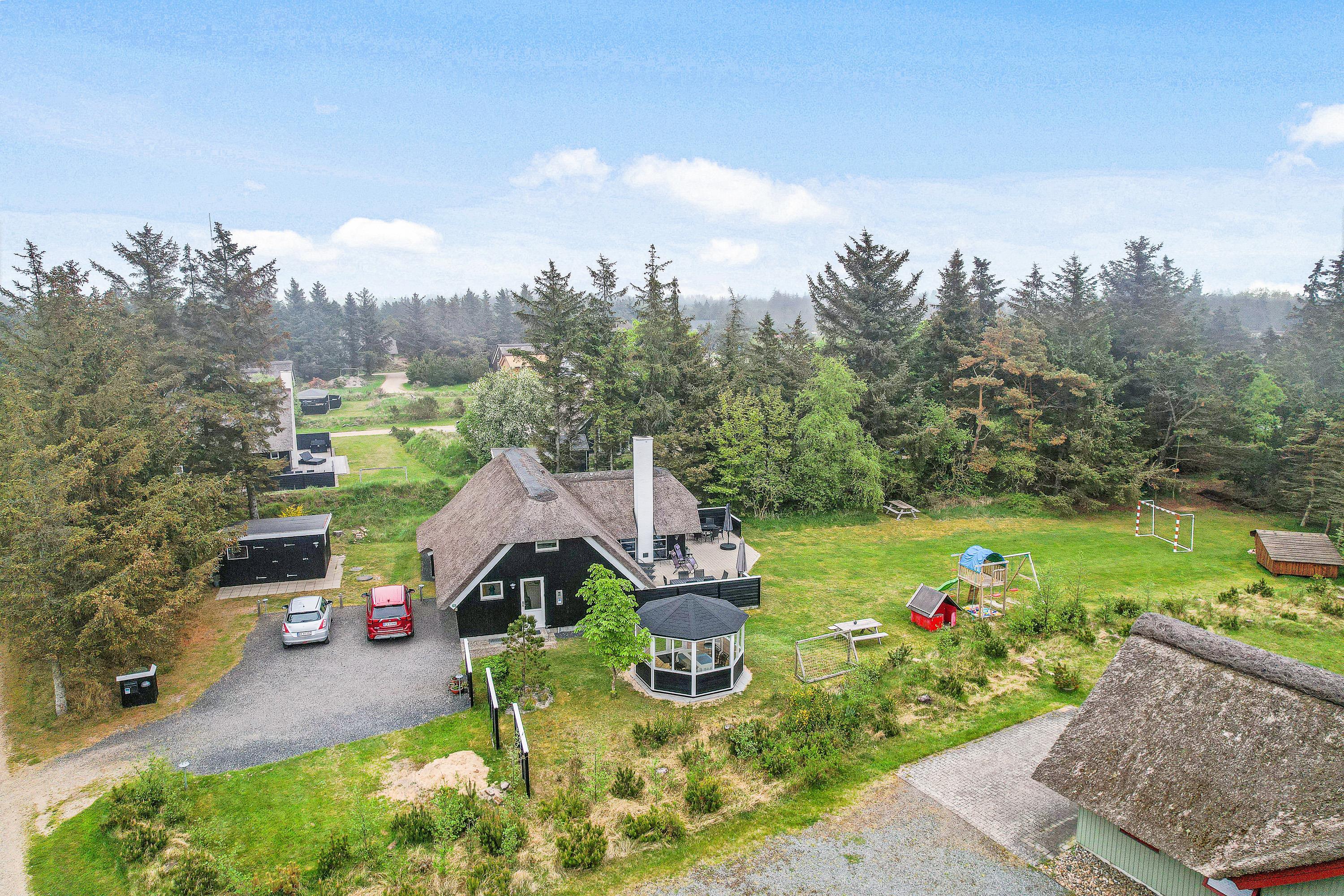 The extensive outdoor area is truly impressive. Not only does it offer quality garden furniture and a barbecue, but it's especially well-equipped for children. At Hestehaven 10, you'll find plenty of space, a climbing tower with slide, swings, a sandpit, room for ball games, a playhouse, and even a shelter where the more adventurous can sleep outdoors. Both your children and dogs can enjoy the abundant space and play facilities while you relax on the sheltered terrace.