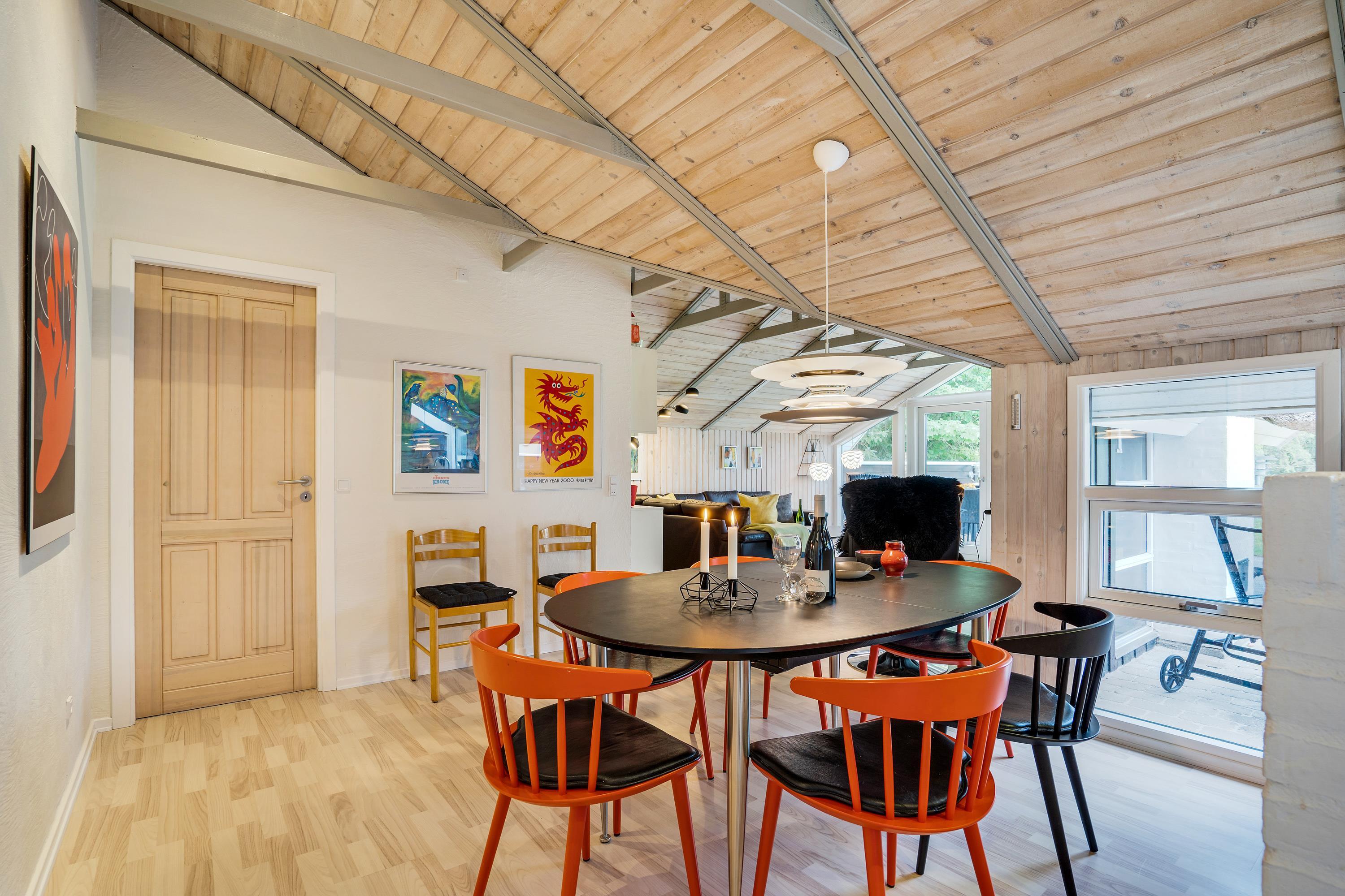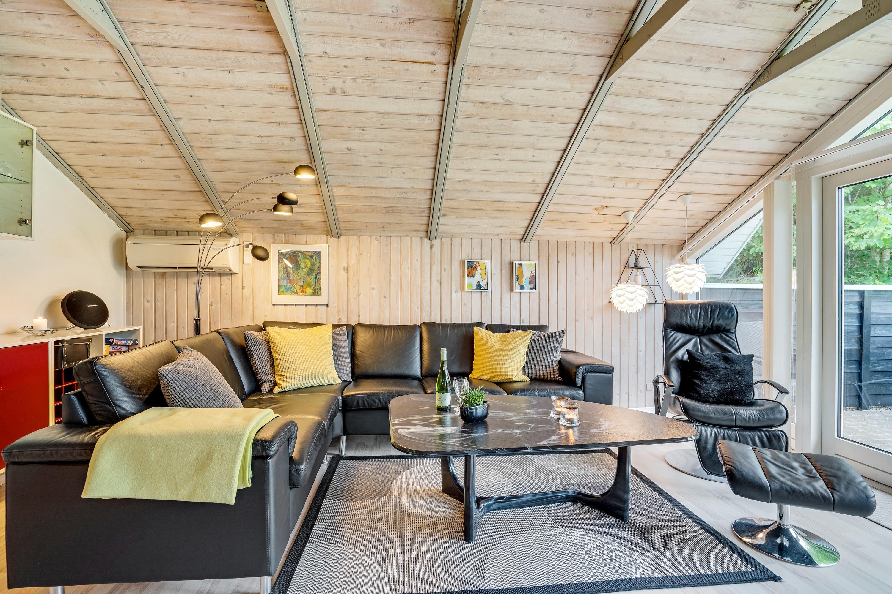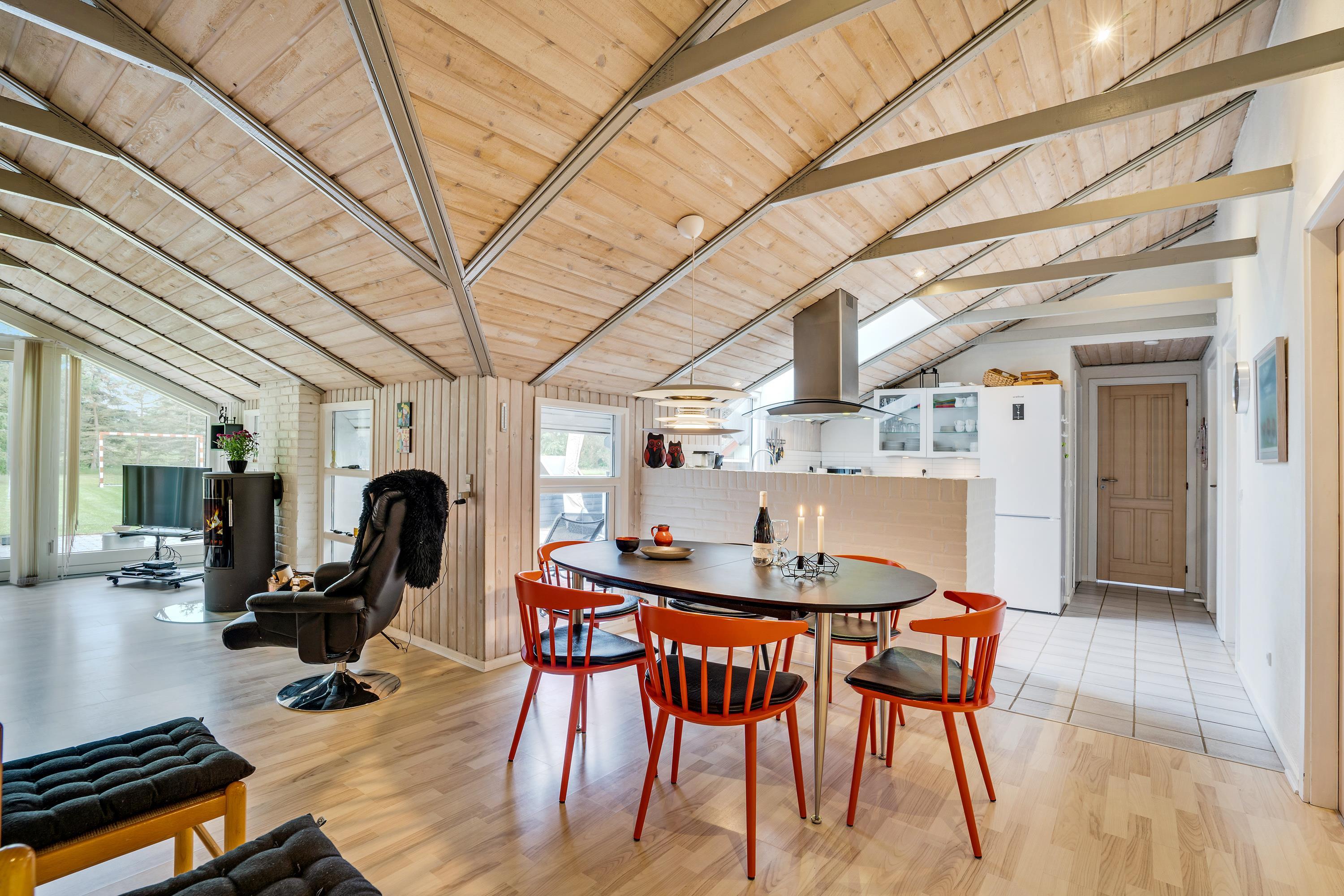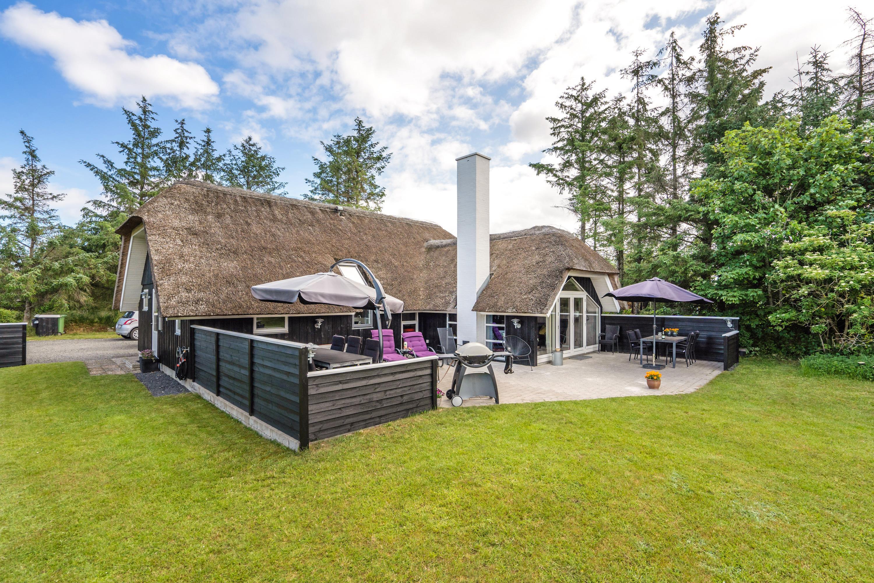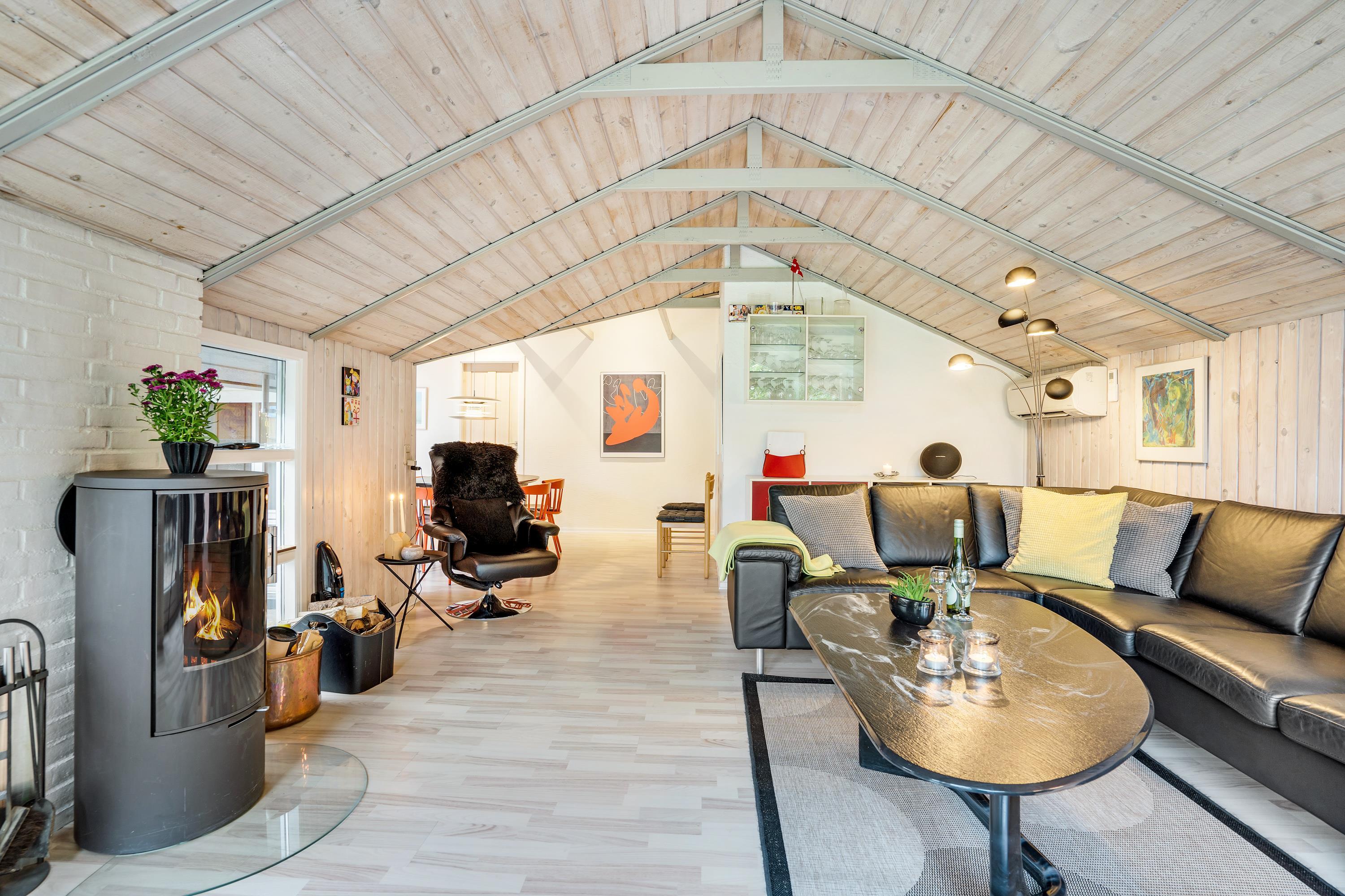 The extensive outdoor area is truly impressive. Not only does it offer quality garden furniture and a barbecue, but it's especially well-equipped for children. At Hestehaven 10, you'll find plenty of space, a climbing tower with slide, swings, a sandpit, room for ball games, a playhouse, and even a shelter where the more adventurous can sleep outdoors. Both your children and dogs can enjoy the abundant space and play facilities while you relax on the sheltered terrace.