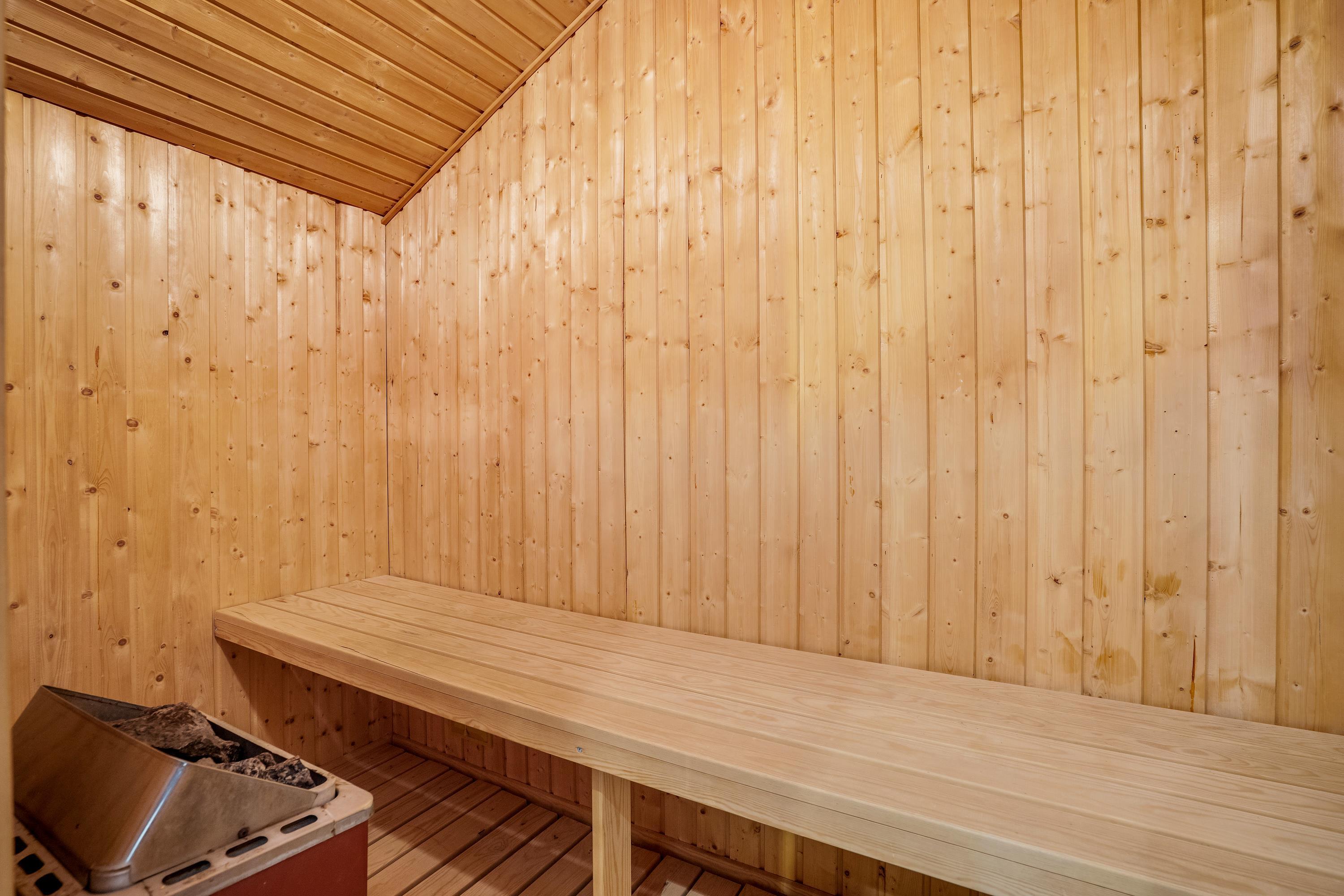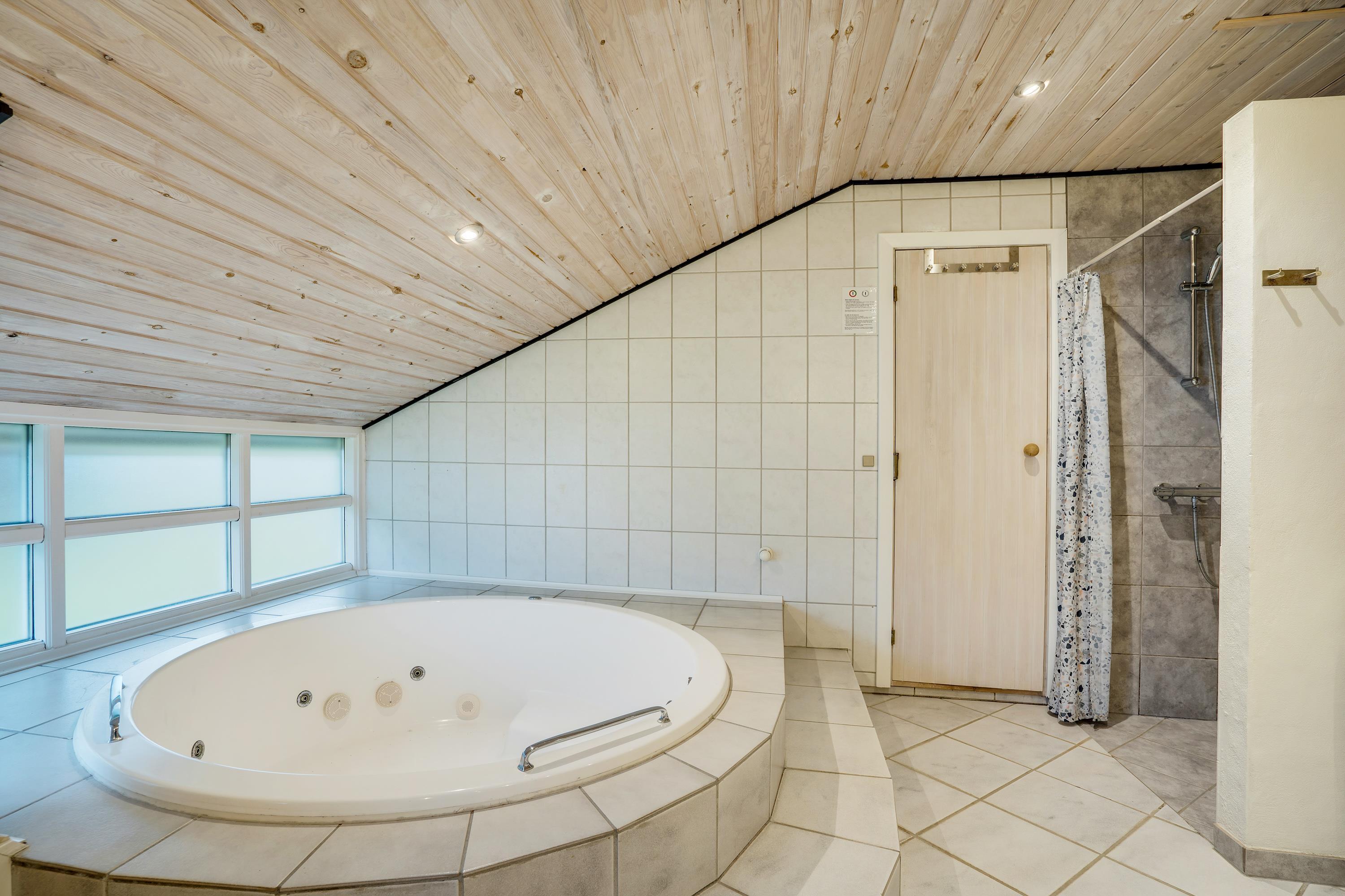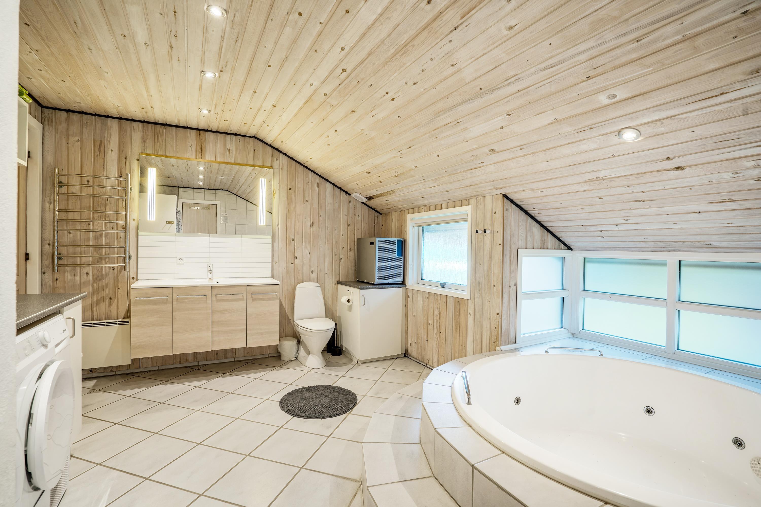 The bathroom not only features a large whirlpool where all children can splash around together but also provides access to a private sauna and benefits from underfloor heating. Perfect for those looking to enjoy some wellness time during their stay.