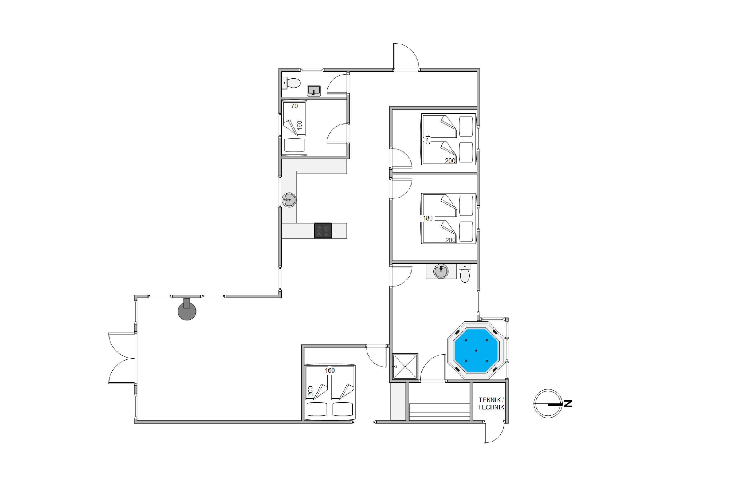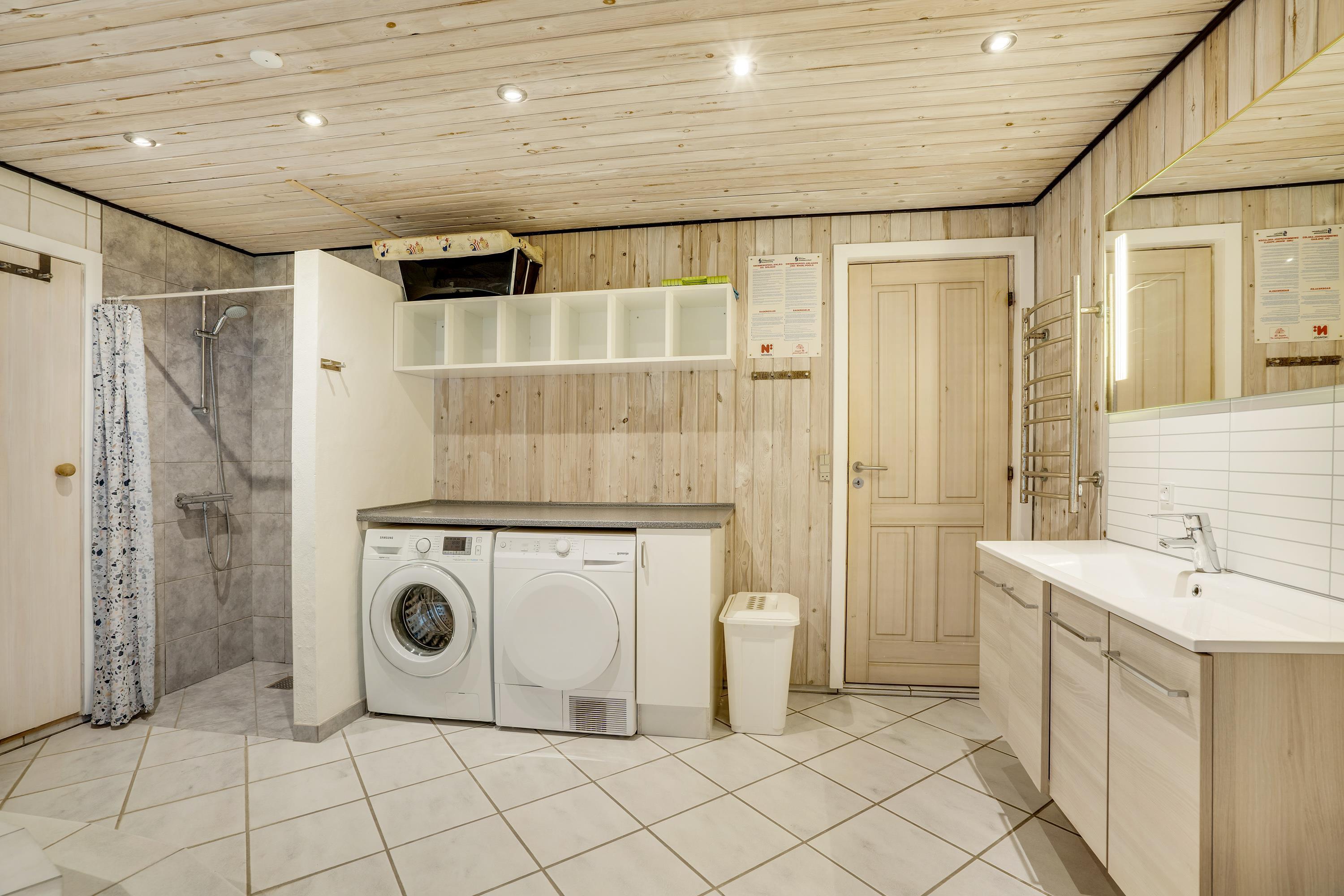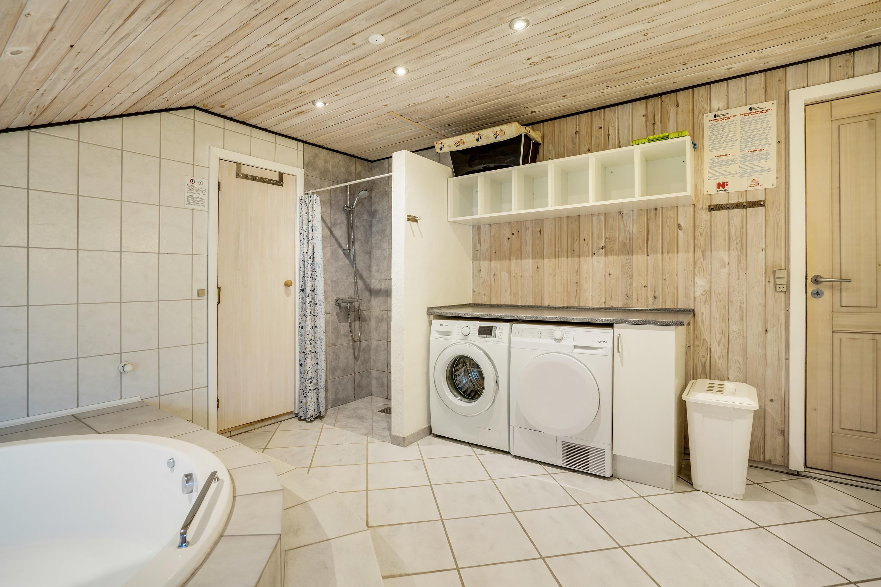 The bathroom not only features a large whirlpool where all children can splash around together but also provides access to a private sauna and benefits from underfloor heating. Perfect for those looking to enjoy some wellness time during their stay.