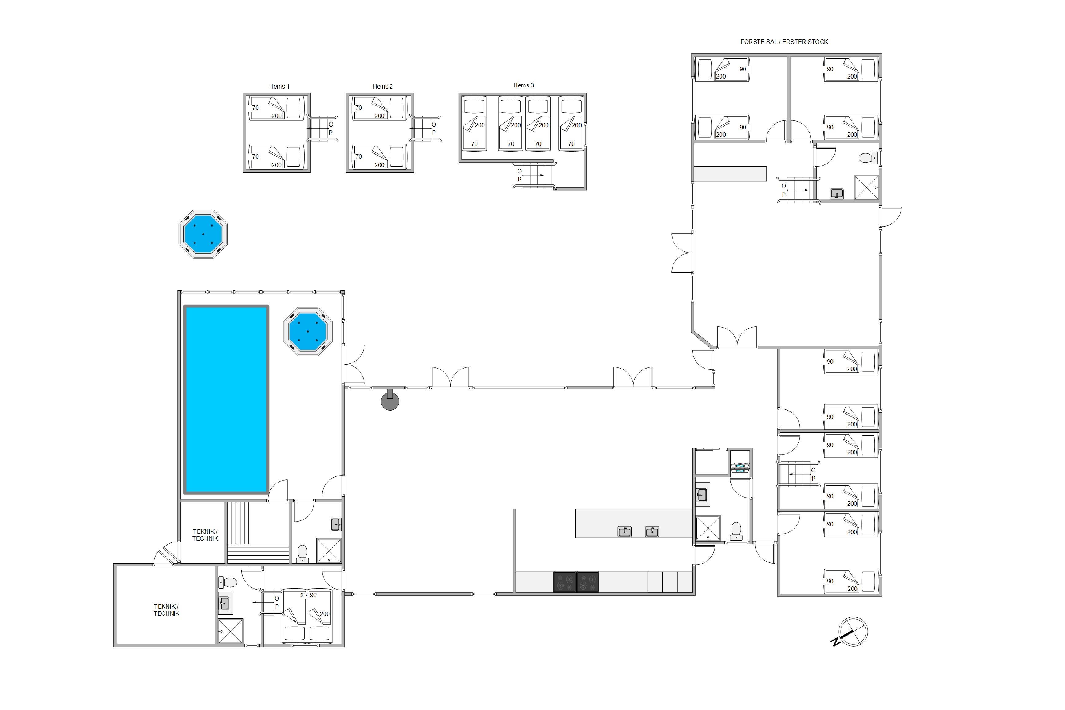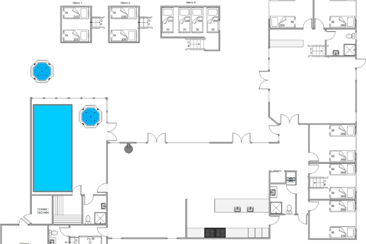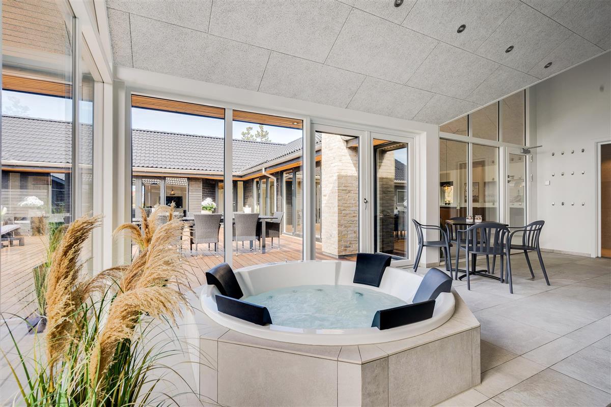 This large pool house in Blåvand offers 250 square metres of living space, with ample room for up to 20 people. There are 4 bathrooms in total.
