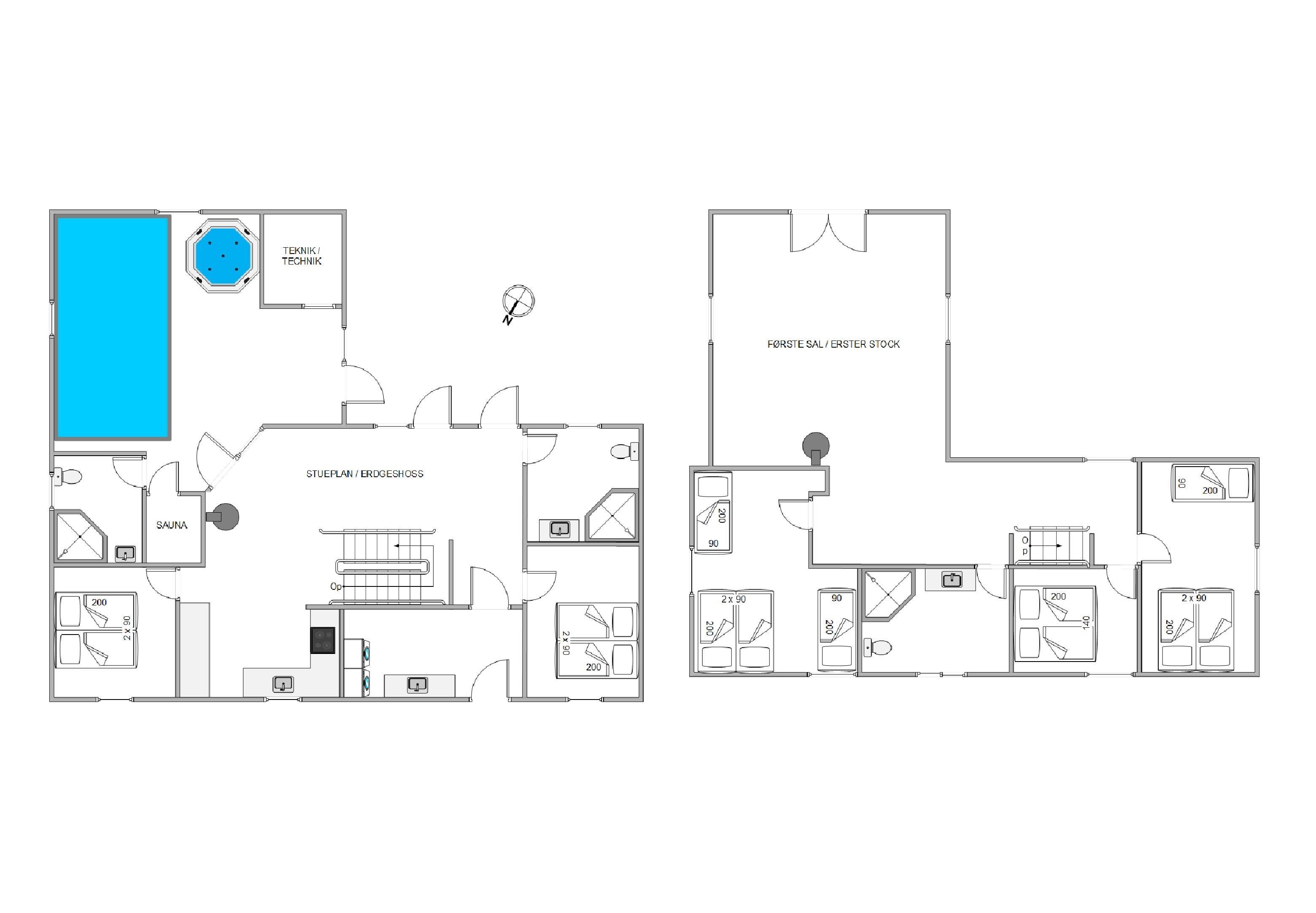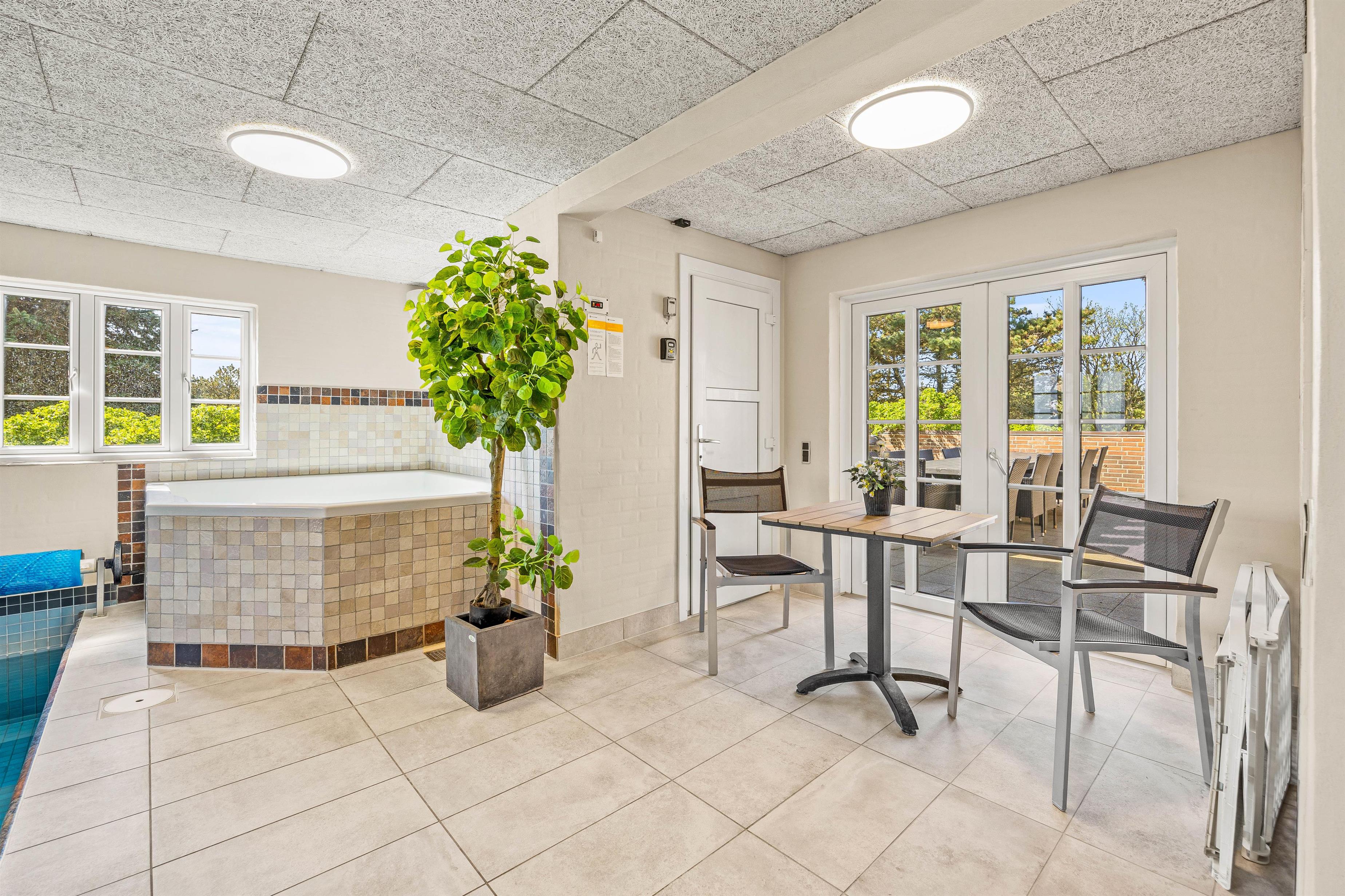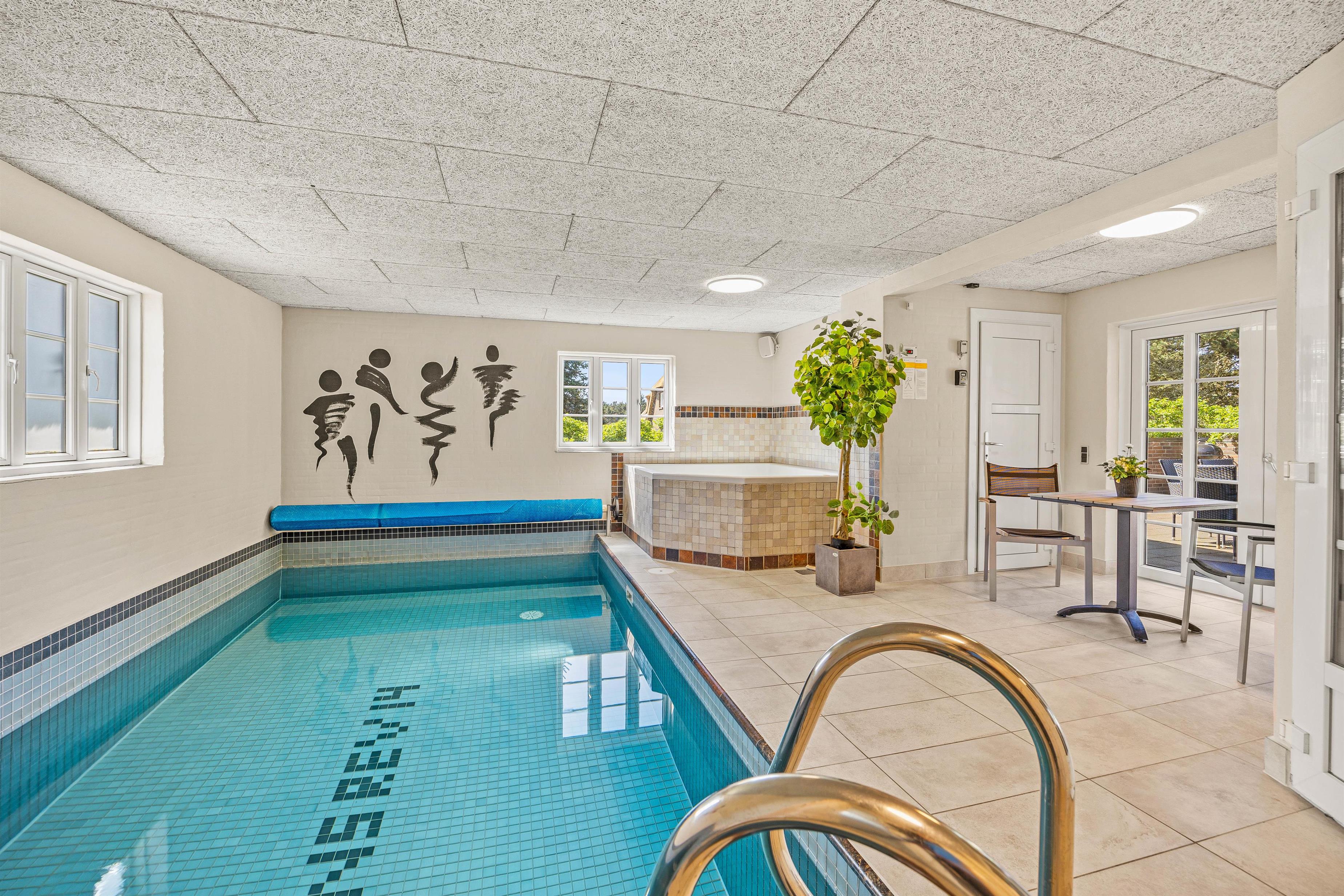 The ground floor also includes 2 cosy bedrooms, 2 shower rooms and the wellness area with sauna, hot tub and swimming pool. Children can splash and swim while you unwind in the warm waters of the hot tub or relax in the sauna.