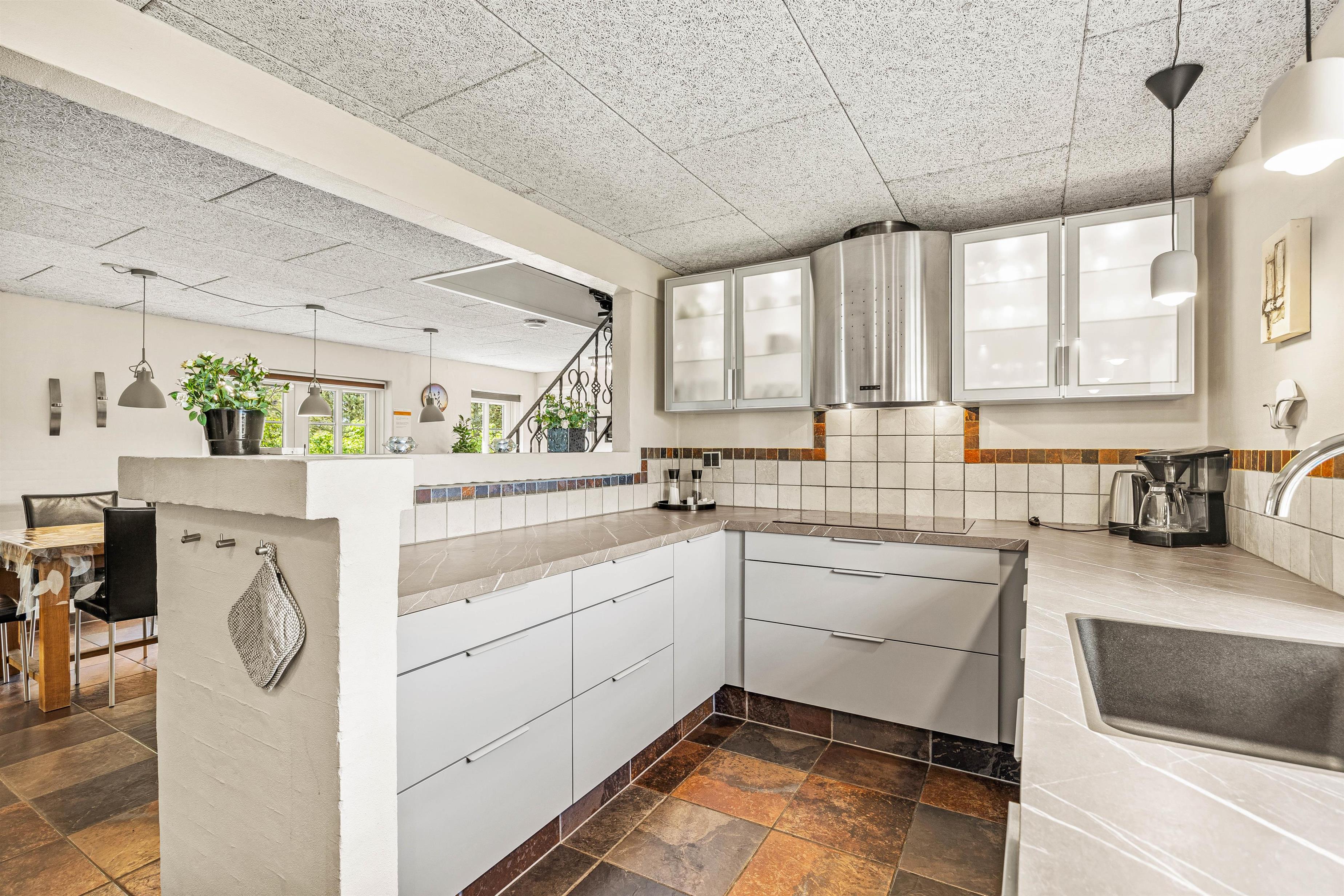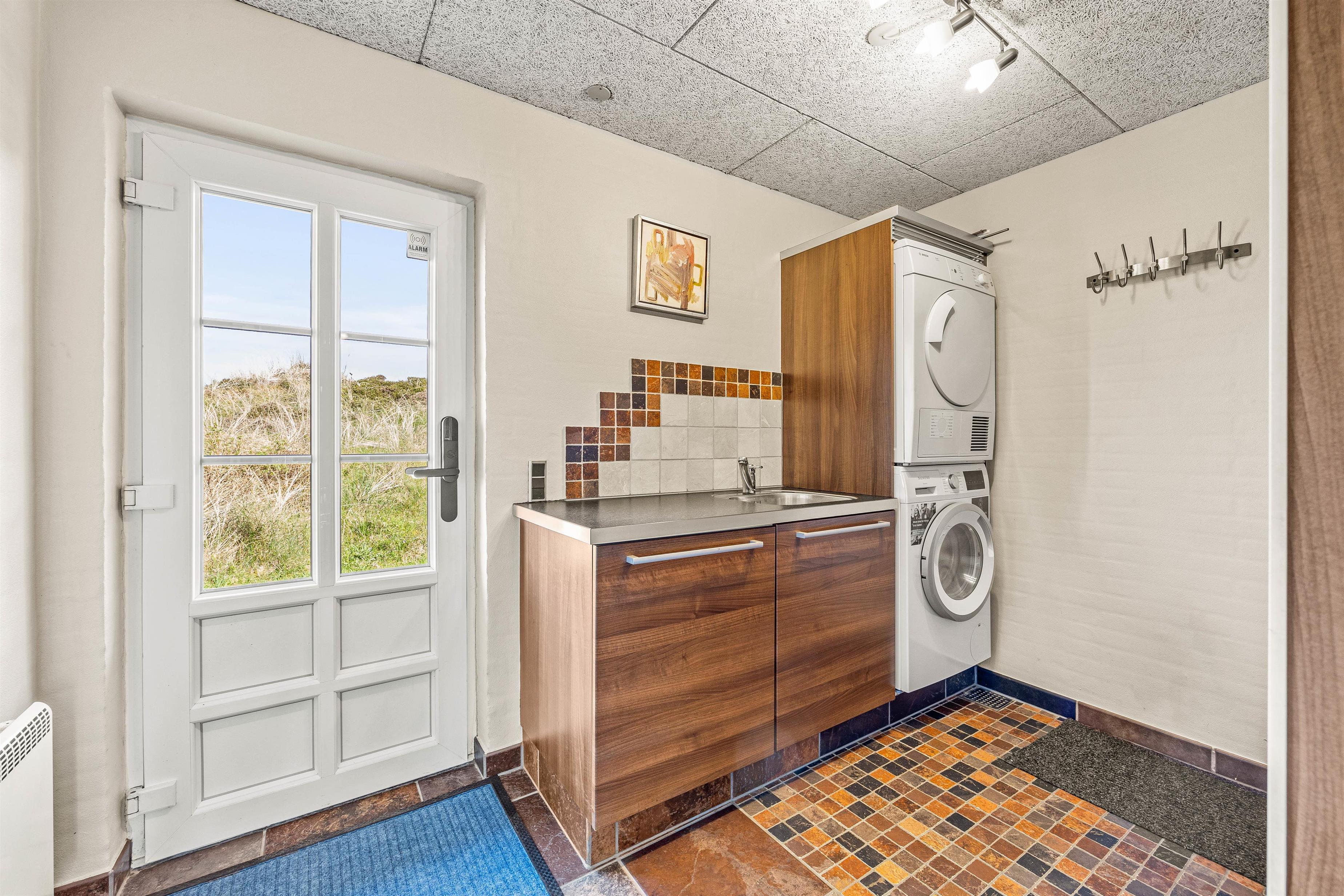 This well-equipped holiday home has everything needed for a relaxing break. The ground floor features a beautiful kitchen and dining area, perfect for sociable cooking evenings and delicious meals. The modern kitchen includes quality appliances such as a dishwasher, microwave and fridge-freezer. It's ideal for trying out traditional Danish recipes. Please note there's an additional fridge-freezer under the stairs.