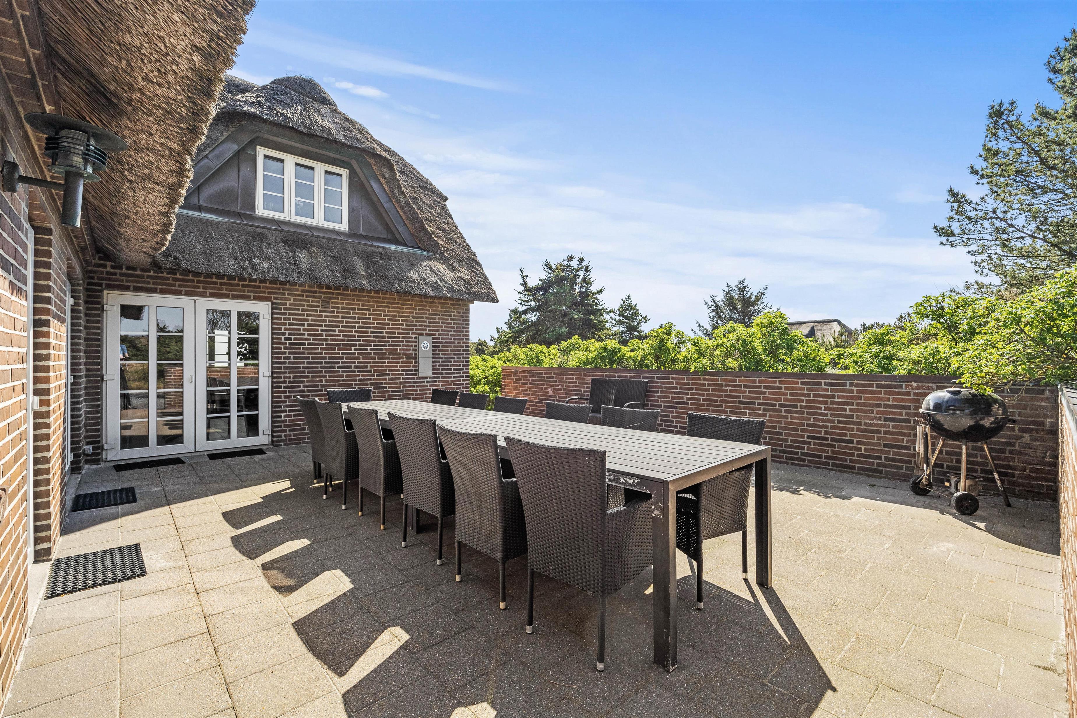 Located at Horns Rev 4 in Blåvand, this beautiful thatched holiday home was renovated in 2024. With 226 square metres of space, there's plenty of room for up to 13 guests. Up to 3 dogs are also welcome and can enjoy long walks along the Danish west coast beaches. The North Sea is just a stone's throw away from your holiday home - depending on the wind direction, you might even hear the waves.