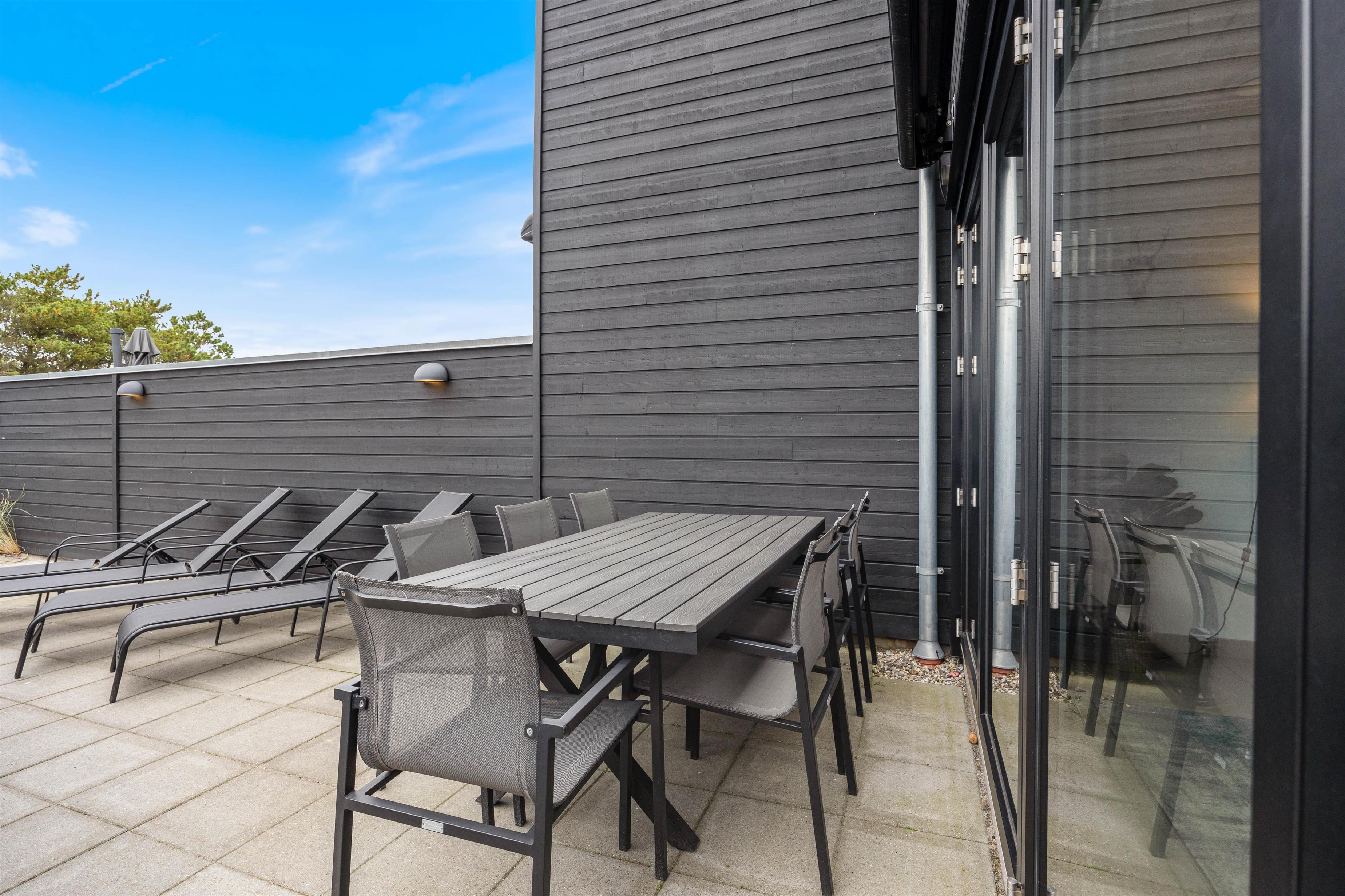 Young children and your four-legged friend can safely play outside, as the terrace is fully enclosed. This wind-protected space allows you to comfortably enjoy the sunshine from the loungers. Please note that the awning must not be used.