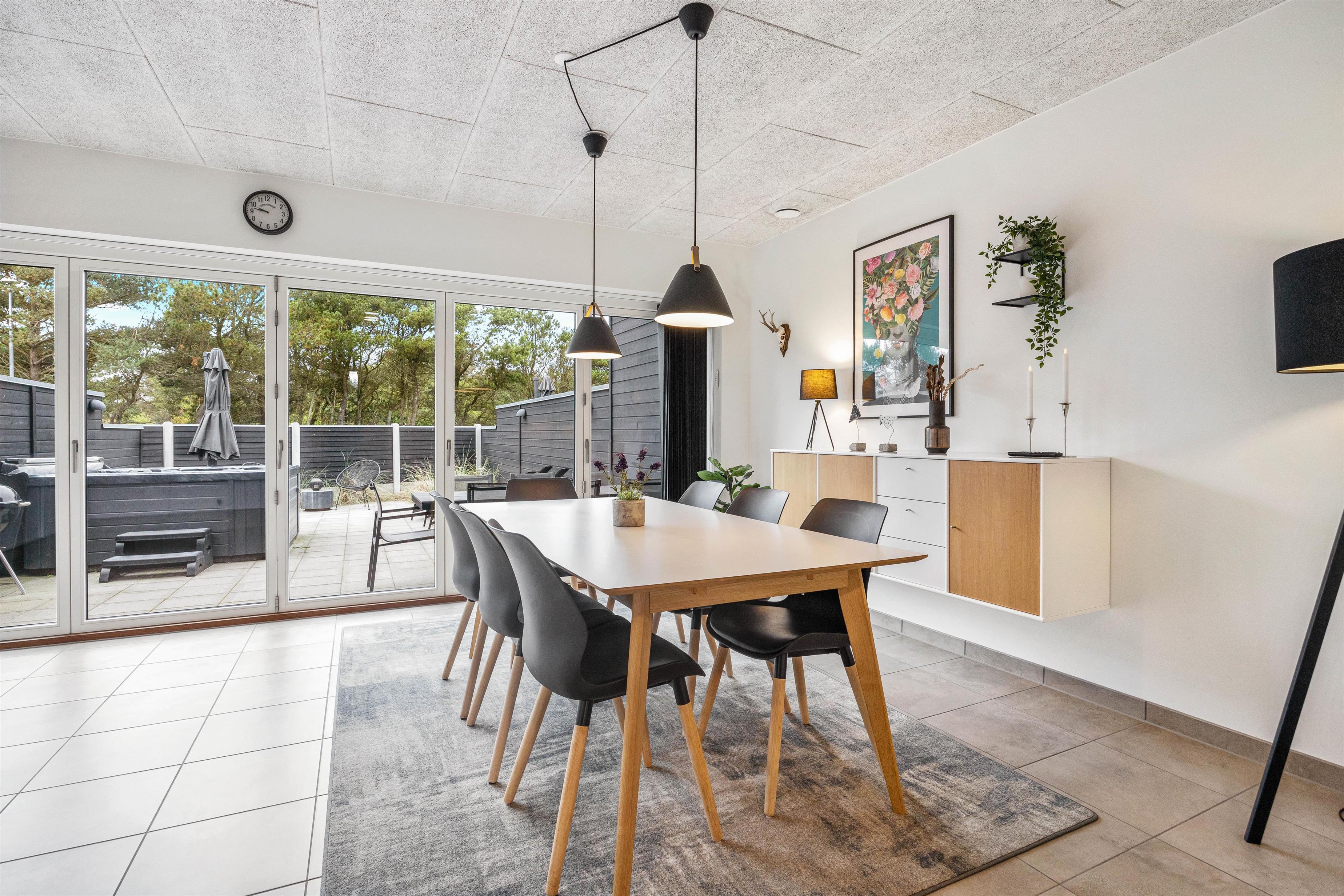 A true highlight of this holiday home is undoubtedly the outdoor hot tub on the sheltered terrace. Whether during the day or in the evening under the unique starlit sky of the Danish west coast, you can truly unwind in the warm waters of the hot tub.