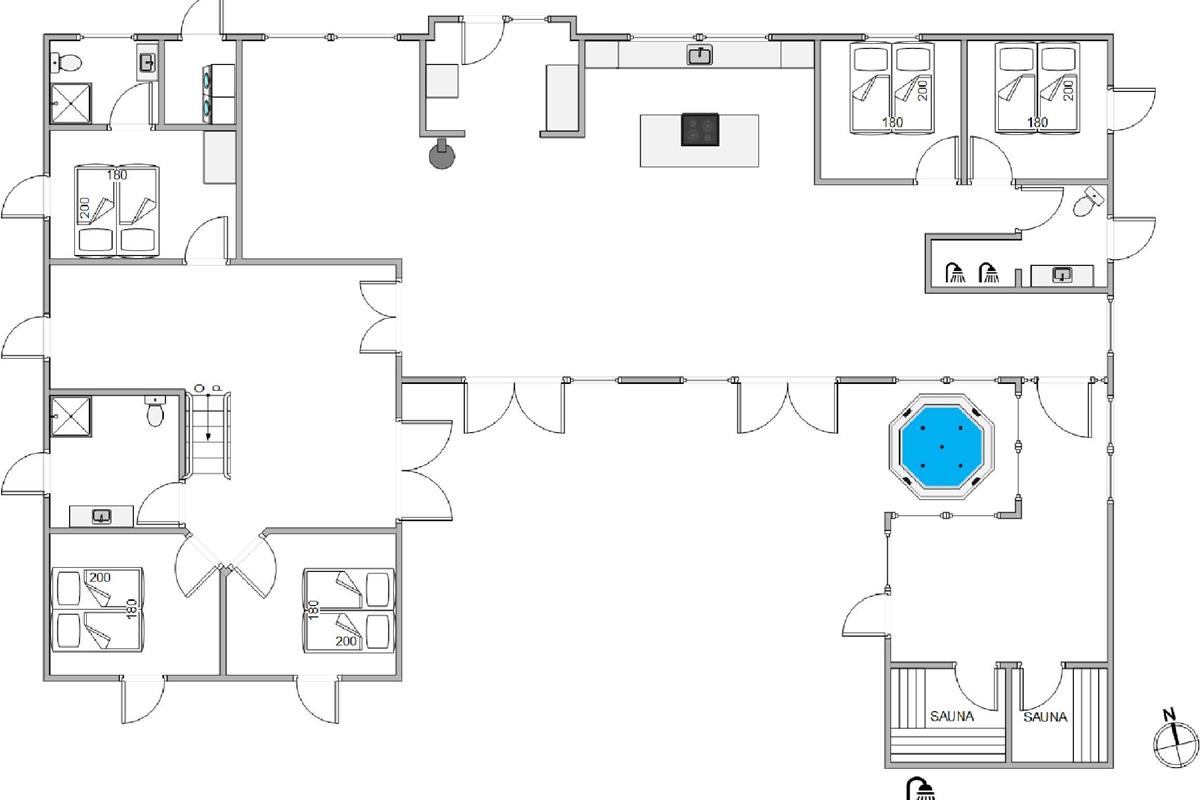 Built in 2022, this beautiful holiday home features a traditional three-sided courtyard design and is packed with amenities to enhance your stay. Spread across 225 square metres, you'll find a well-equipped games room, sauna, steam room and outdoor hot tub - to name just a few highlights. Up to 10 people can enjoy an unforgettable holiday on the Danish west coast.