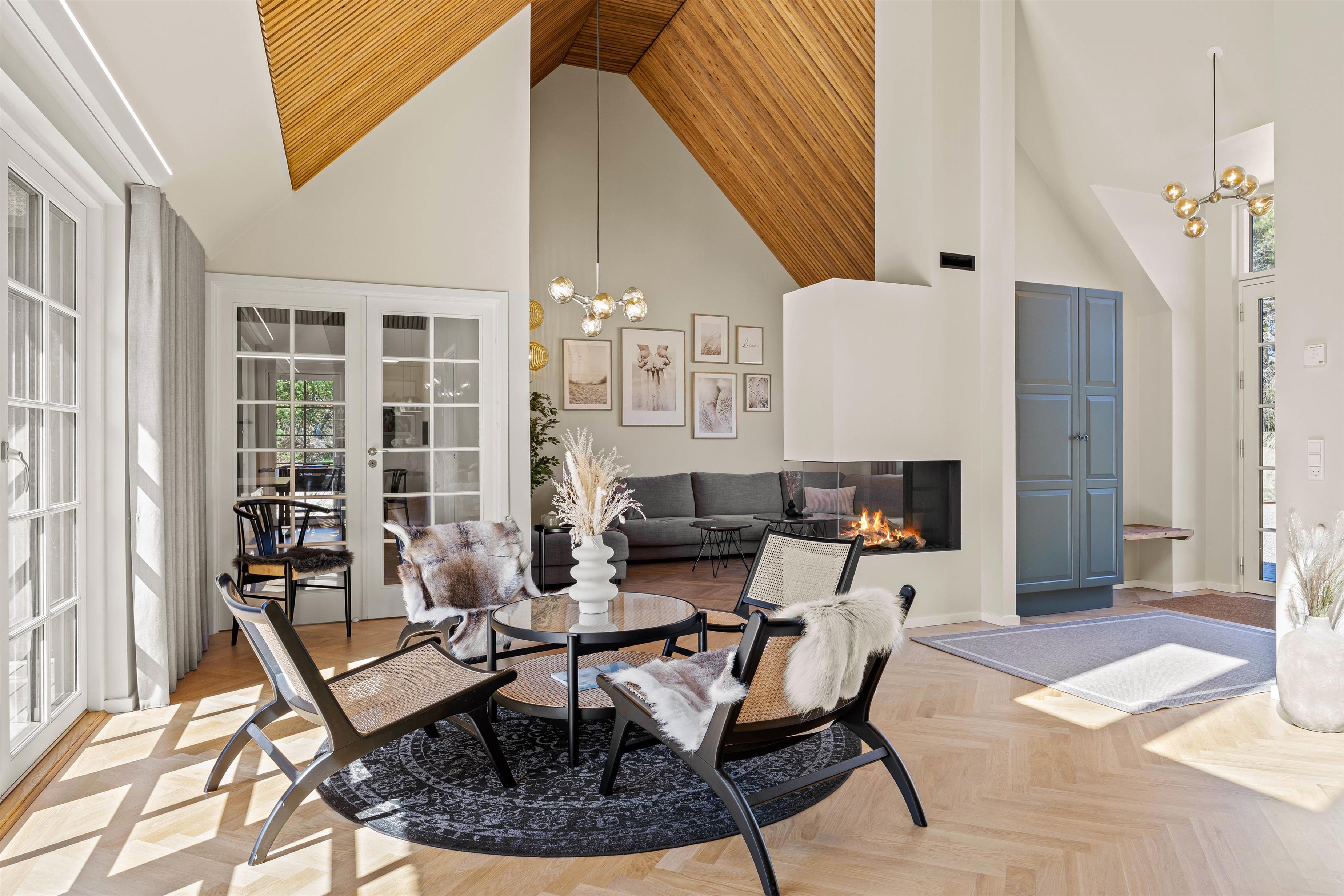 The rear area features a comfortable seating corner overlooking the modern gas fireplace. Here you can watch television or use the TV in the upper section of the games room. The games room even includes a Formula 1 simulator and PS4 gaming console. In the lower section, you can enjoy pool, table tennis or table football. There's truly something for everyone.