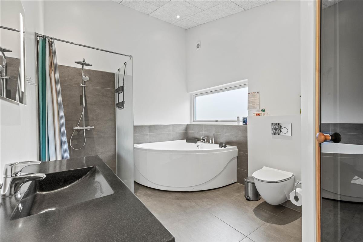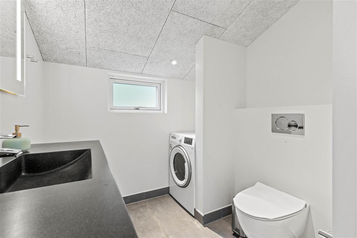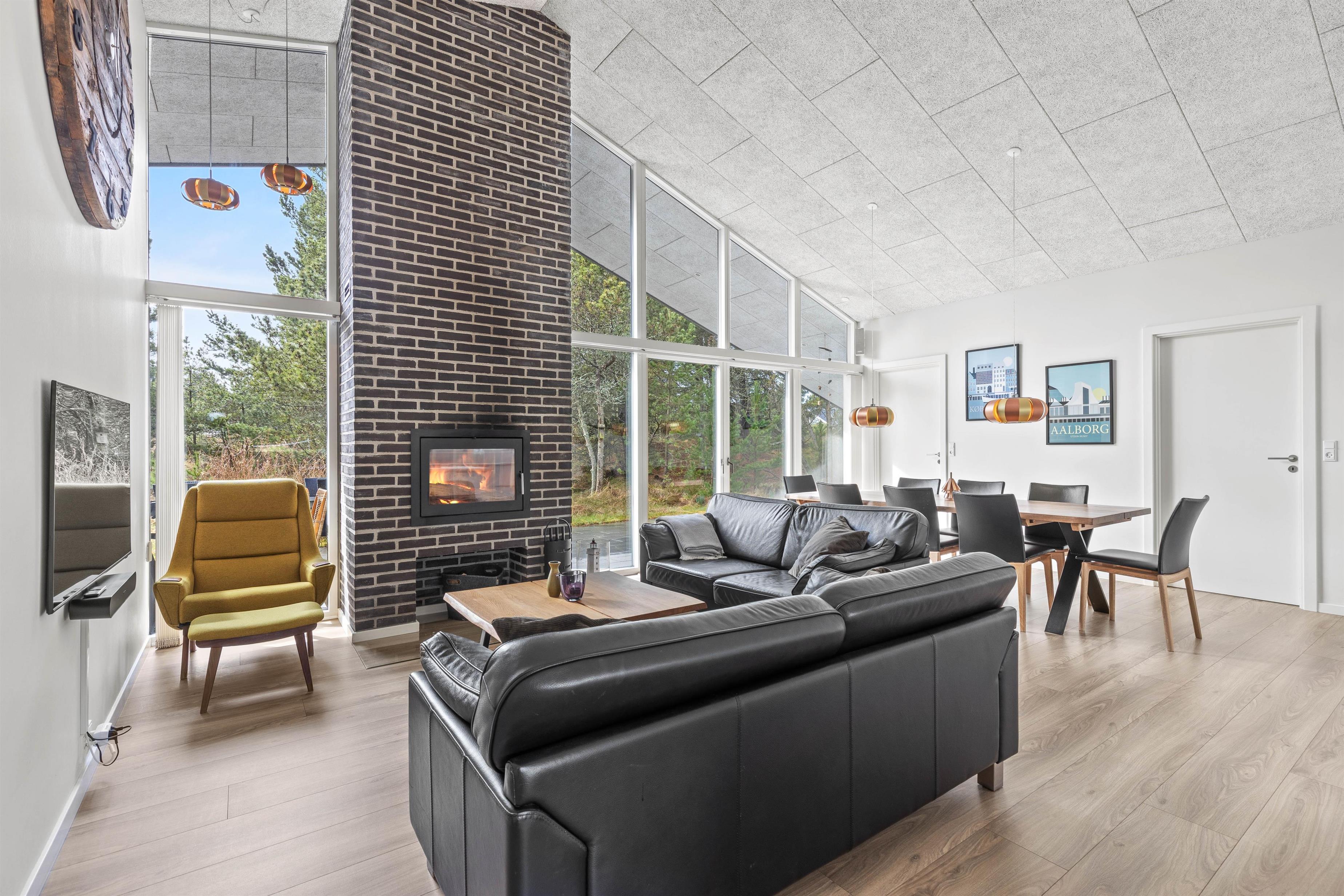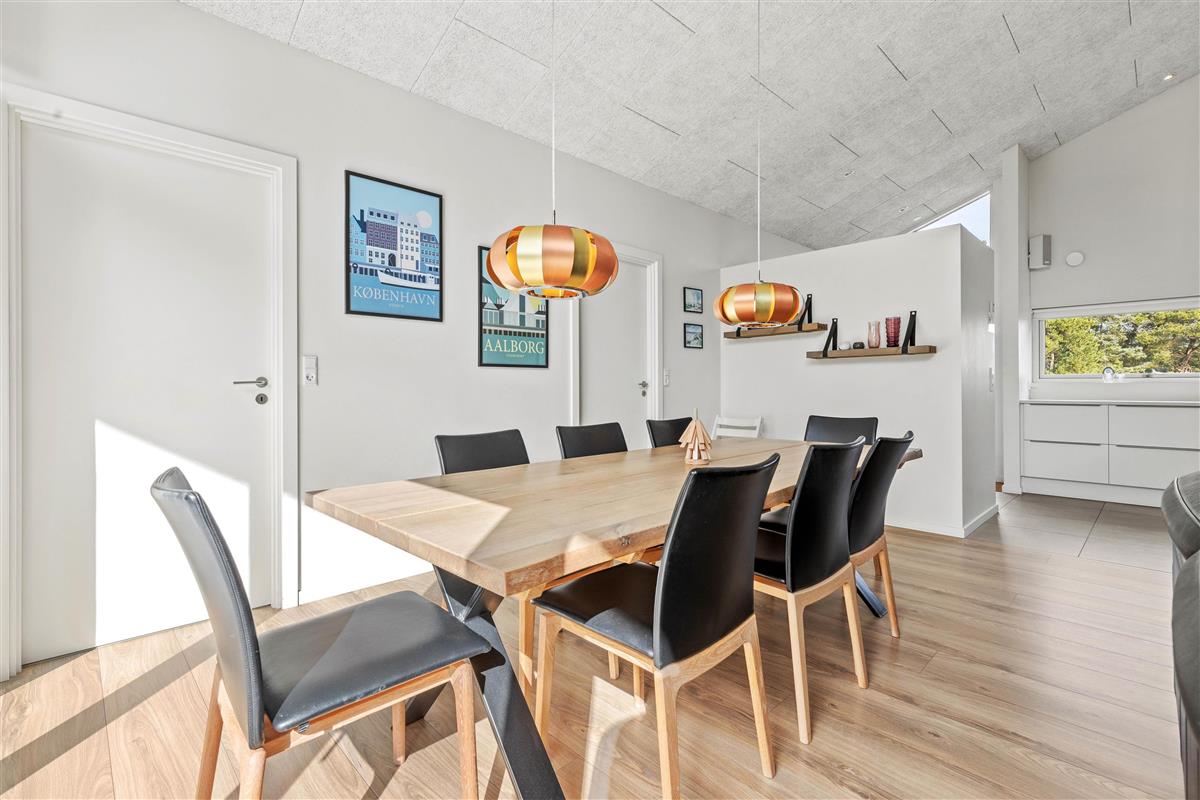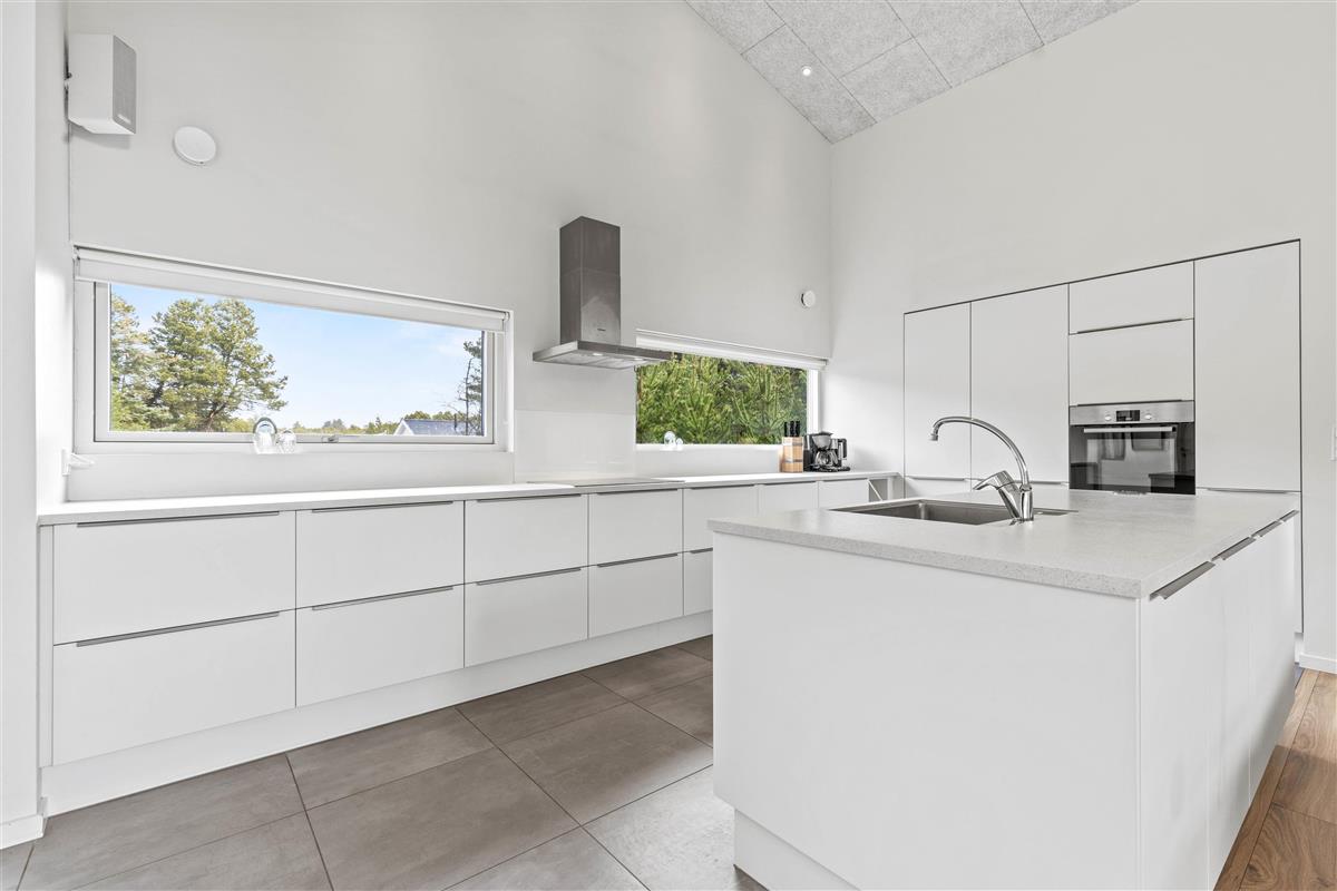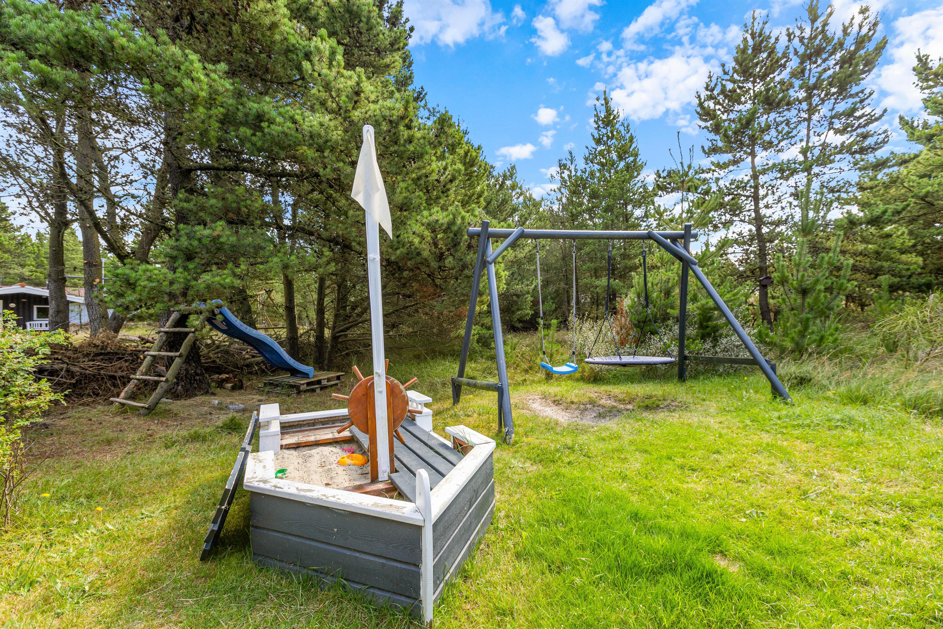 The plot, surrounded by tall trees, sits in the heart of Blåvand's heather-covered landscape. On the terrace, furnished with high-quality, comfortable garden furniture, you can enjoy the sun and fresh North Sea air in complete privacy.