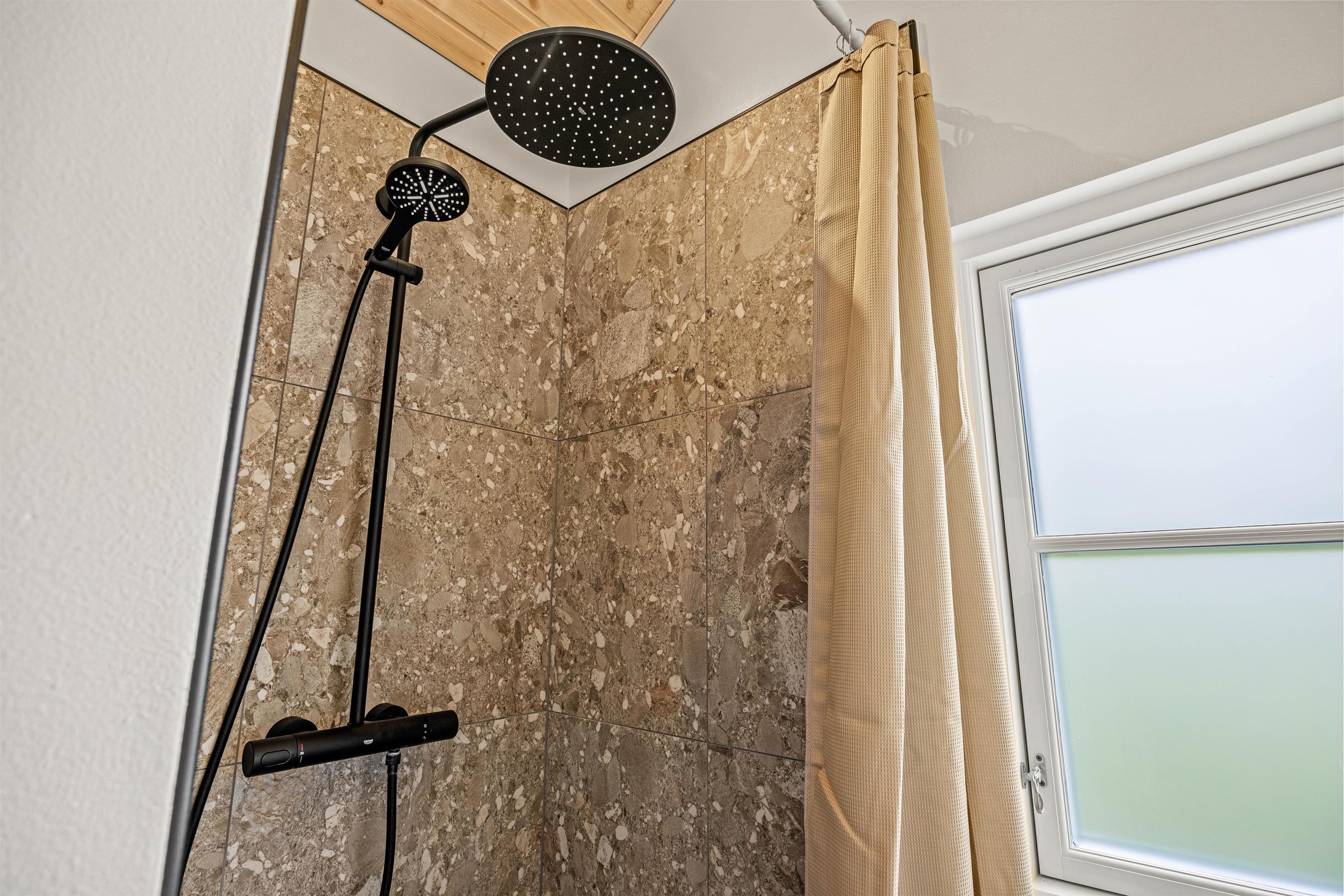 At the spa room's exit, you can use the outdoor shower (available from April 1 to October 1) before jumping into the outdoor hot tub – enjoy a bubbling soak under Blåvand's uniquely beautiful starlit sky.