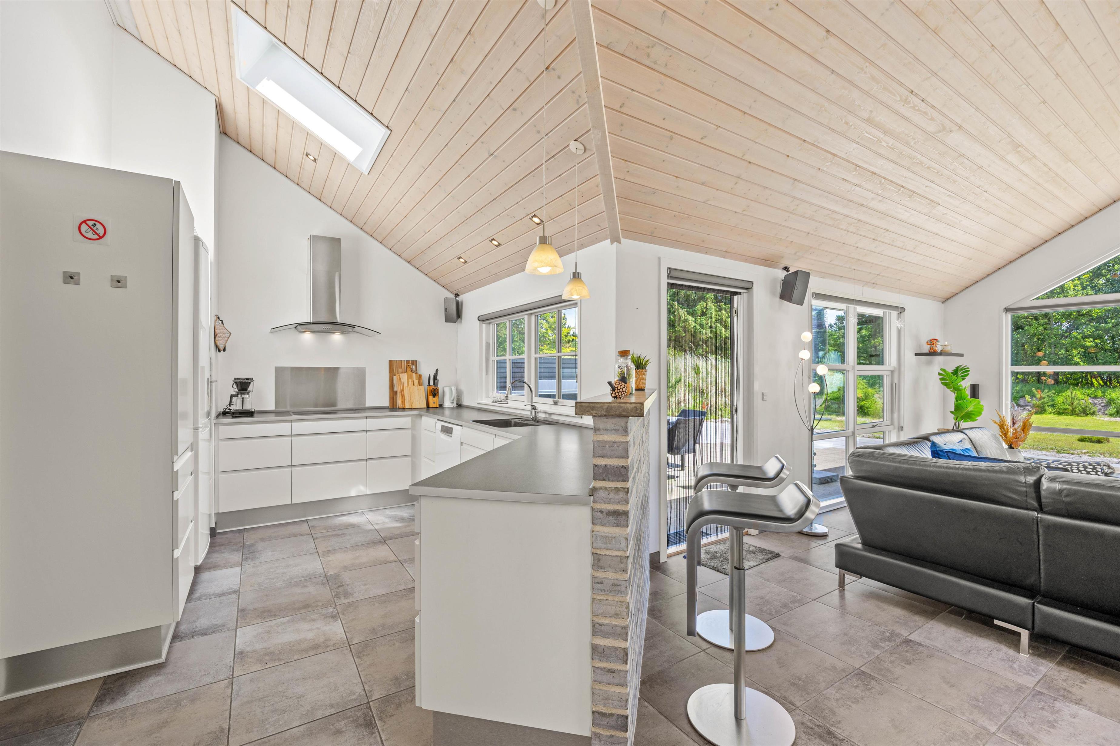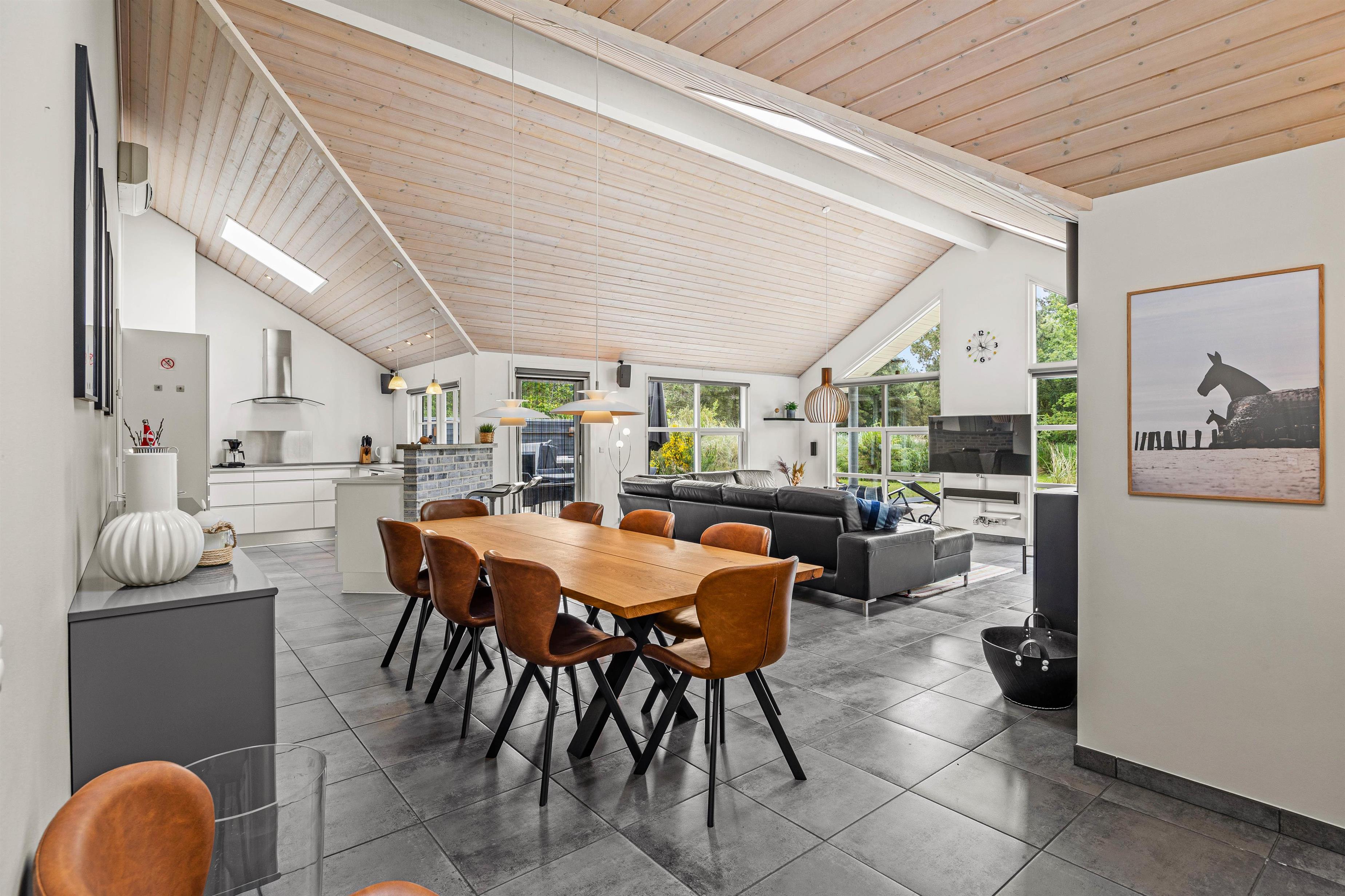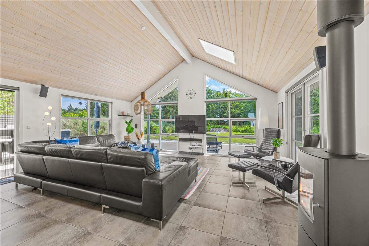 Your anticipation for your holiday at Port Arthusvej 47 will be fully rewarded upon arrival. This stunning holiday home, renovated in 2024, has been furnished in typical Scandinavian style with modern design elements. The living area, featuring a modern kitchen and dining table, is bathed in natural light through large window fronts. Brightness, high wooden ceilings and the centrally-placed wood-burning stove create the perfect hygge atmosphere.