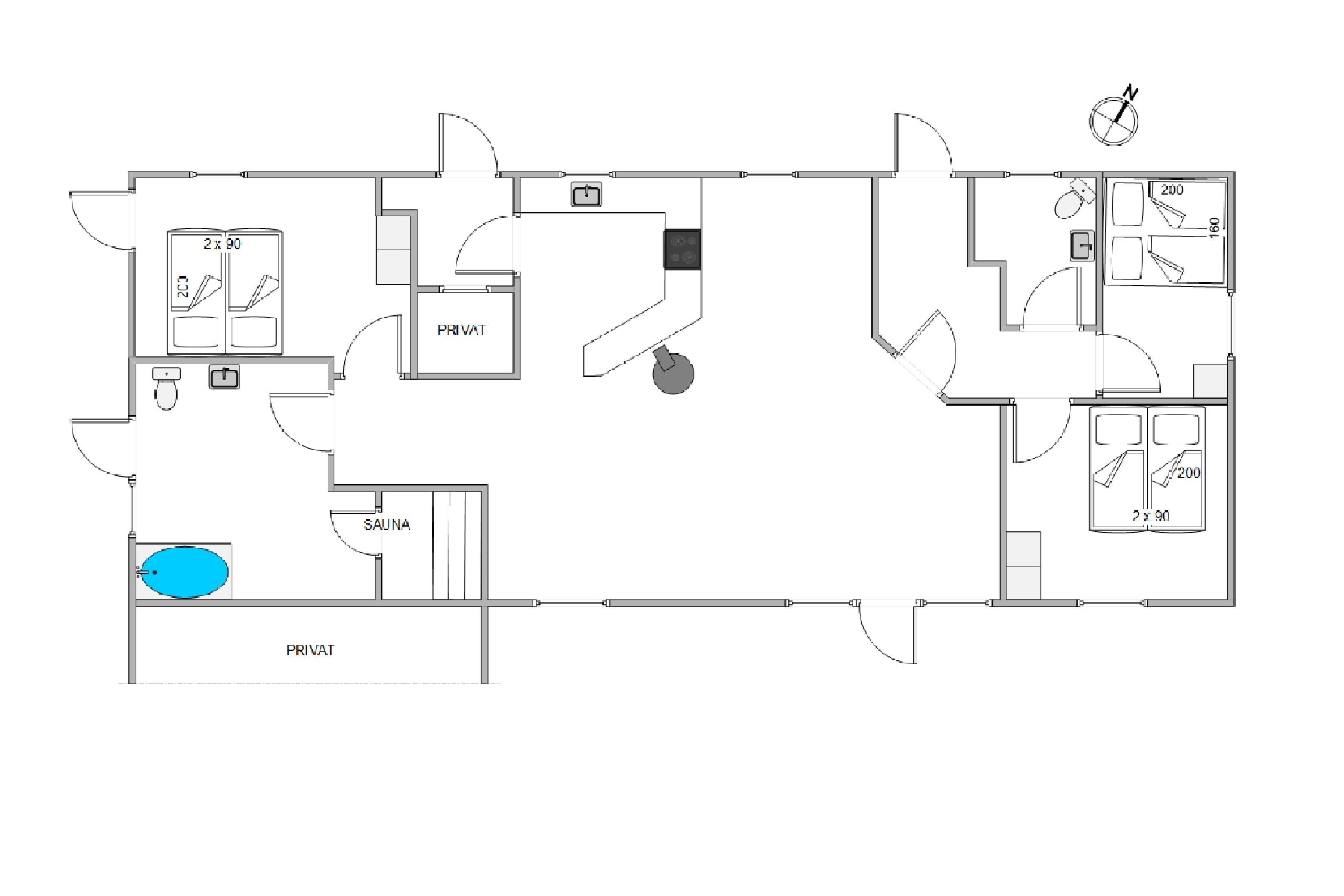 The three bedrooms each feature a double bed. Here you can have a lie-in or retreat for an afternoon nap and enjoy the peace and quiet. The holiday home has two bathrooms. The larger one includes a sauna and whirlpool - perfect for warming up after a long autumn beach walk, either in the bubbling whirlpool or in the sauna. Both bathrooms have underfloor heating.