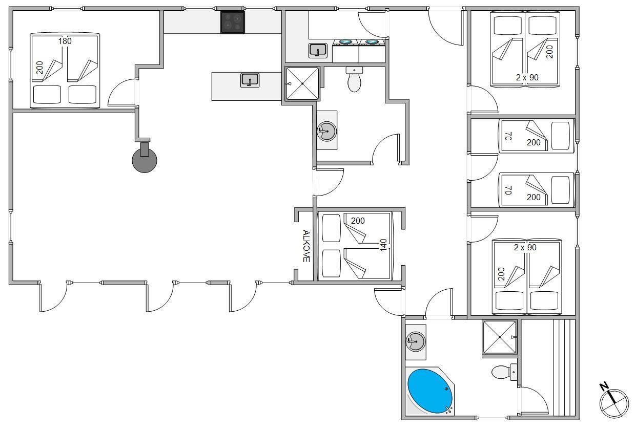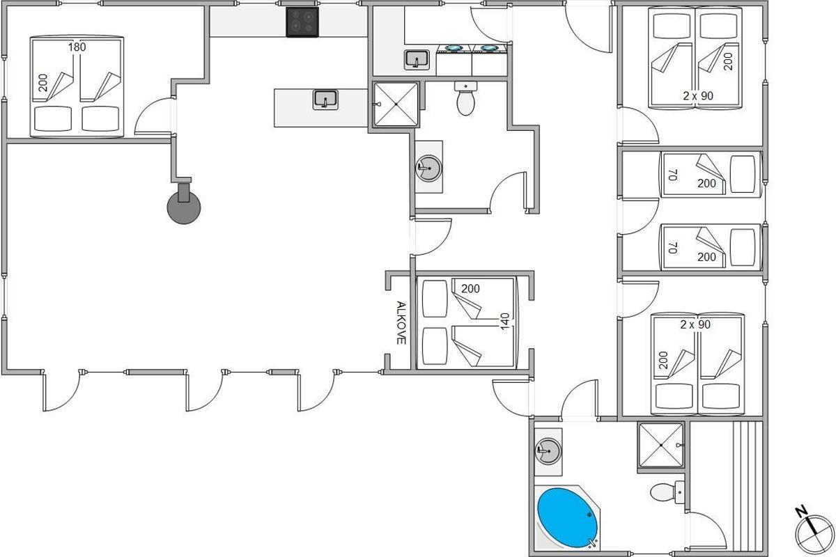 This bright and welcoming holiday home at Hedetoftvej 75 awaits your next family holiday. With 162 square metres of space, it accommodates 10 guests and the family dog. Just 800 metres from the nearest shopping facilities, you're perfectly positioned near the centre of the popular holiday destination of Blåvand.