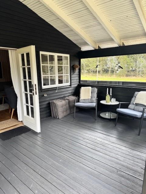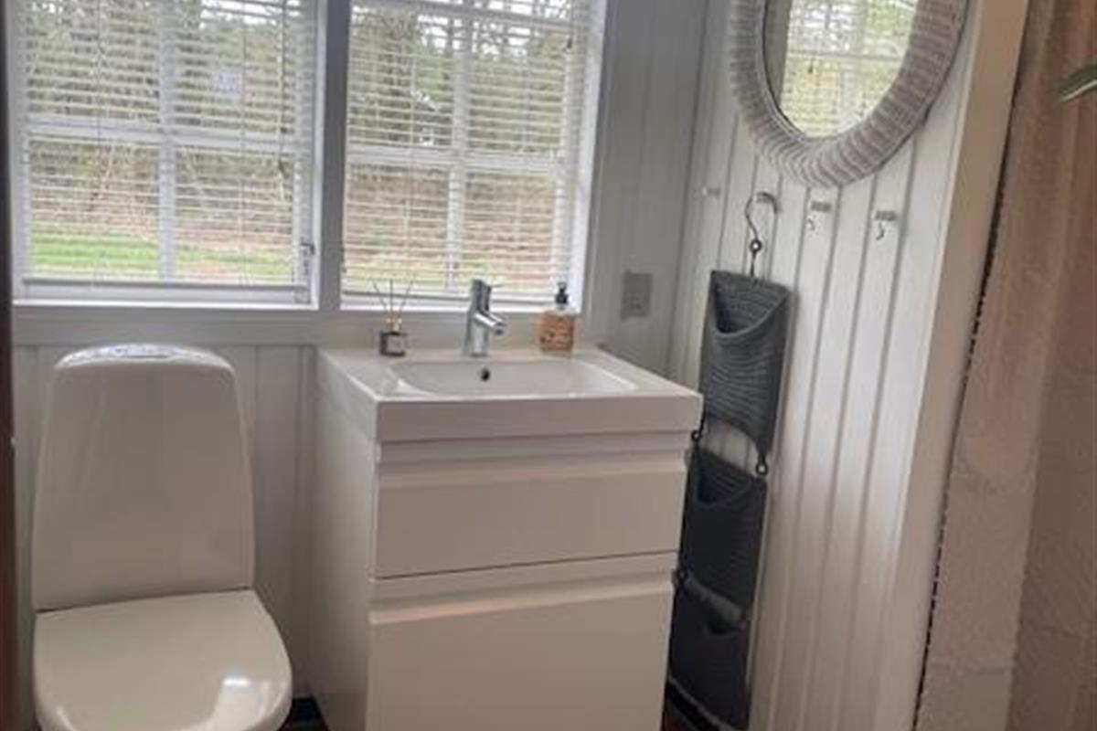Gemütliches Stube/Küche mit Brennofen. Grosse Badezimmer mit Dusche. Gut gelegen auf einem Naturgrundstück.