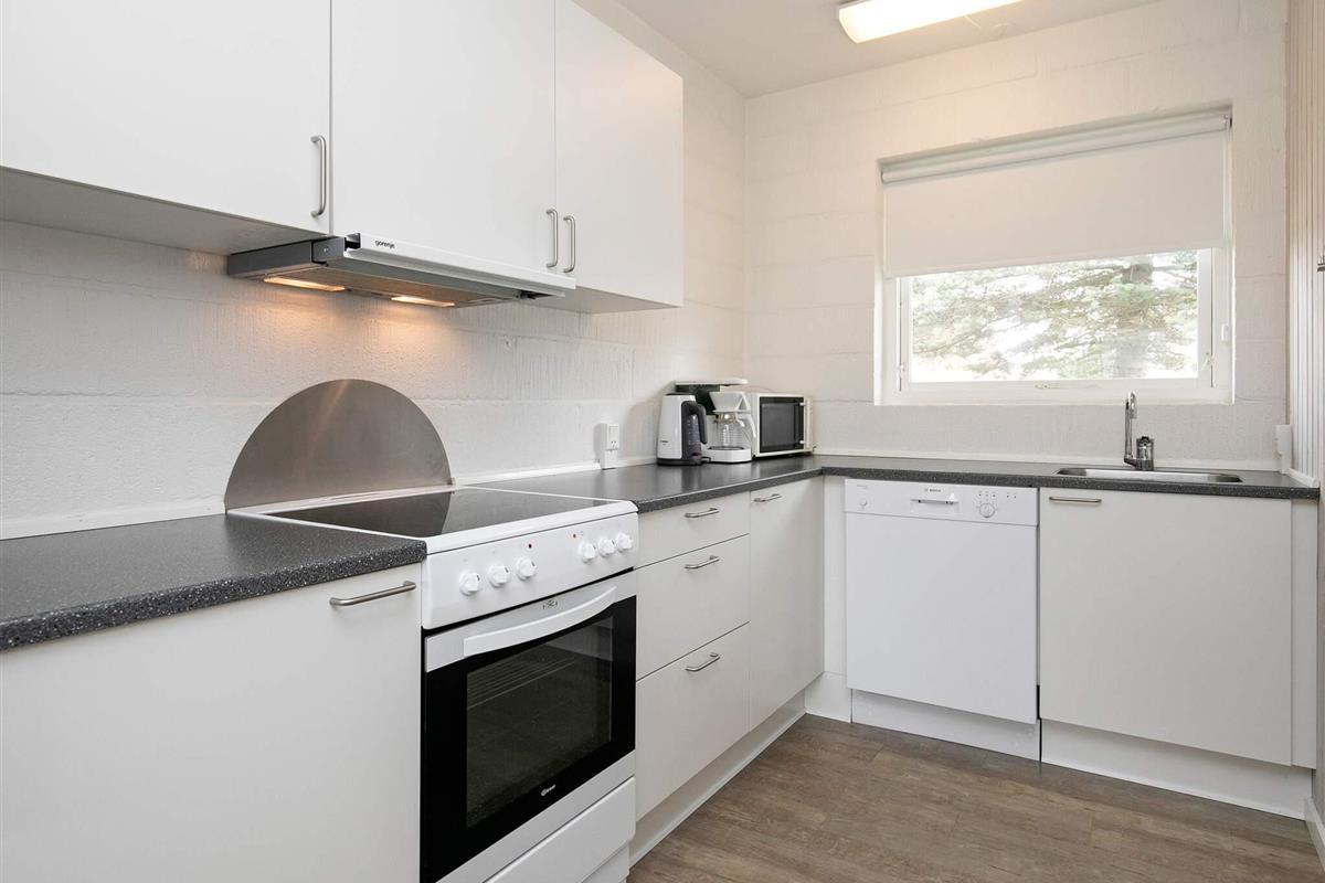 Küche: E-Herd, Ofen, Kühlschr. m. Gefrierfach, Mikrow., Kaffeem., Spülm.
