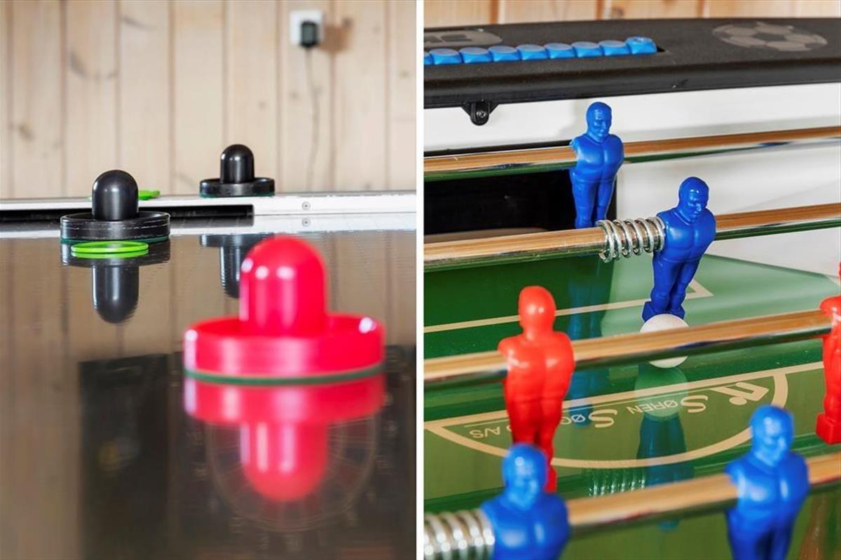 Wenn ihr dieses schöne Ferienhaus betretet, werdet ihr sofort von einer hellen und einladenden Atmosphäre empfangen. Die geräumigen Gemeinschaftsbereiche sind ideal sowohl zum Entspannen als auch für gemeinsame Stunden. Die offene Küche und der Wohnbereich schaffen einen Treffpunkt, wo Kochen und geselliges Beisammensein Hand in Hand gehen. Mit der modernen Küche, die mit allen notwendigen Einrichtungen ausgestattet ist, könnt ihr problemlos leckere Mahlzeiten zaubern. Nach einem erlebnisreichen Tag könnt ihr euch im gemütlichen Wohnzimmer entspannen, euch mit einem guten Buch auf das Sofa kuscheln oder gemeinsam einen Film genießen. Aber das ist noch nicht alles – das Spielzimmer des Ferienhauses bietet Spaß und Unterhaltung für Groß und Klein. Hier könnt ihr euch in Tischfußball, Billard oder Dart herausfordern, und die Aktivitäten können problemlos fortgesetzt werden, auch wenn die Sonne untergeht. Das Haus ist funktional eingerichtet, und selbst an die kleinsten Details wurde gedacht, damit ihr einen sorglosen Urlaub genießen könnt.
