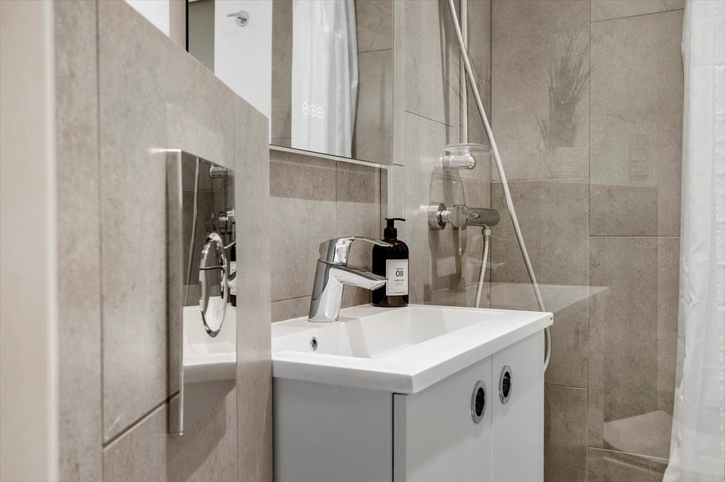 Die Wohnung ist stilvoll renoviert und erscheint hell und einladend. Im Inneren empfängt dich ein gemütliches Wohnzimmer, in dem du dich nach einem erlebnisreichen Tag mit einem guten Buch oder einem Film entspannen kannst. Der offene Grundriss schafft eine gute Verbindung zwischen Wohnzimmer und Küche, was das Beisammensein beim Zubereiten der Mahlzeiten erleichtert. Die Küche ist gut ausgestattet mit allem, was du brauchst, um leckere Feriengerichte zu zaubern, und du wirst dich schnell in den behaglichen Räumlichkeiten wie zu Hause fühlen. Das Schlafzimmer ist mit komfortablen Betten eingerichtet, sodass du nach den Abenteuern des Tages gut schlafen kannst. Die Wohnung verfügt auch über ein modernes Badezimmer mit Dusche und schönen Details.