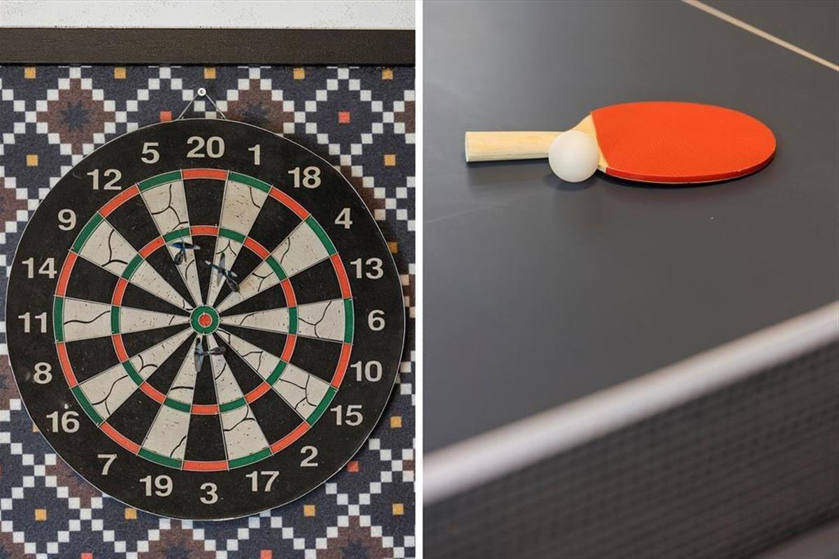 Das Ferienhaus verfügt über mehrere große Terrassen, die das Haus umgeben und zahlreiche Möglichkeiten für Aktivitäten im Freien bieten. Egal, ob ihr Ball spielen, die Sonne genießen oder euch mit einem guten Buch entspannen möchtet, hier ist Platz für alles. Die ruhige Lage gewährleistet Privatsphäre, sodass ihr das Leben im Freien ungestört genießen könnt. Am Abend könnt ihr euch auf der Terrasse versammeln und ein Abendessen unter freiem Himmel genießen.