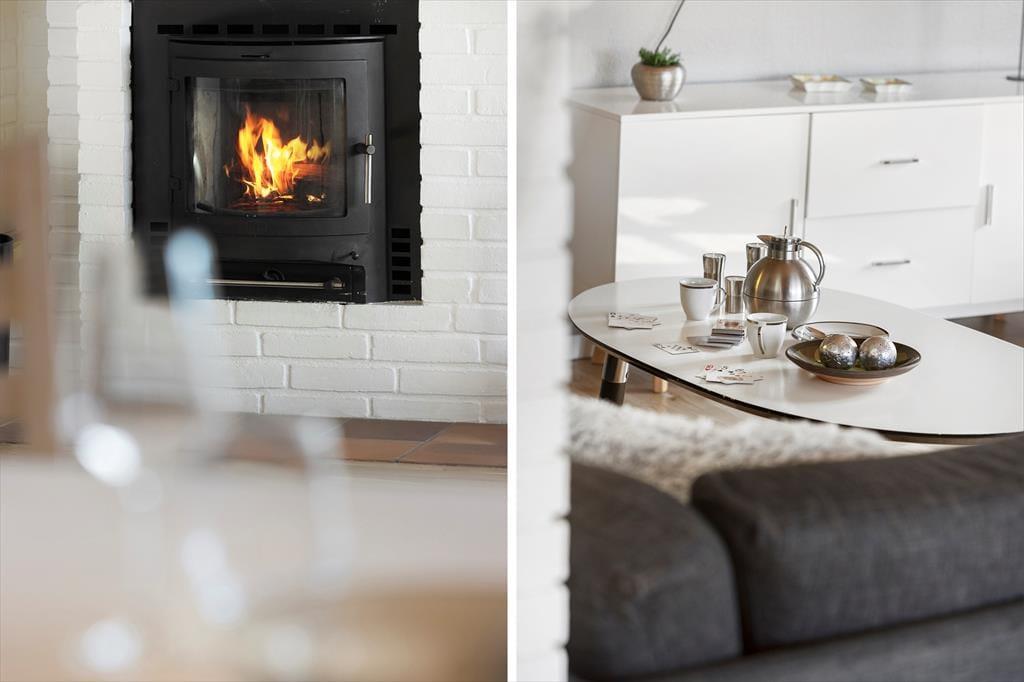 Tritt ein in ein helles und einladendes Wohnzimmer mit hohen Decken und einem warmen Kaminofen, der an kühlen Abenden für eine gemütliche Stimmung sorgt. Der offene Grundriss zwischen Wohnzimmer und Küche vermittelt ein großzügiges Gefühl und bietet Platz für gemeinsame Familienzeit. Die Küche ist mit modernen Einrichtungen und einem Essbereich ausgestattet, in dem ihr zusammen Mahlzeiten genießen könnt. Große Fenster lassen natürliches Licht herein und bieten einen Blick auf die umliegenden Terrassen.