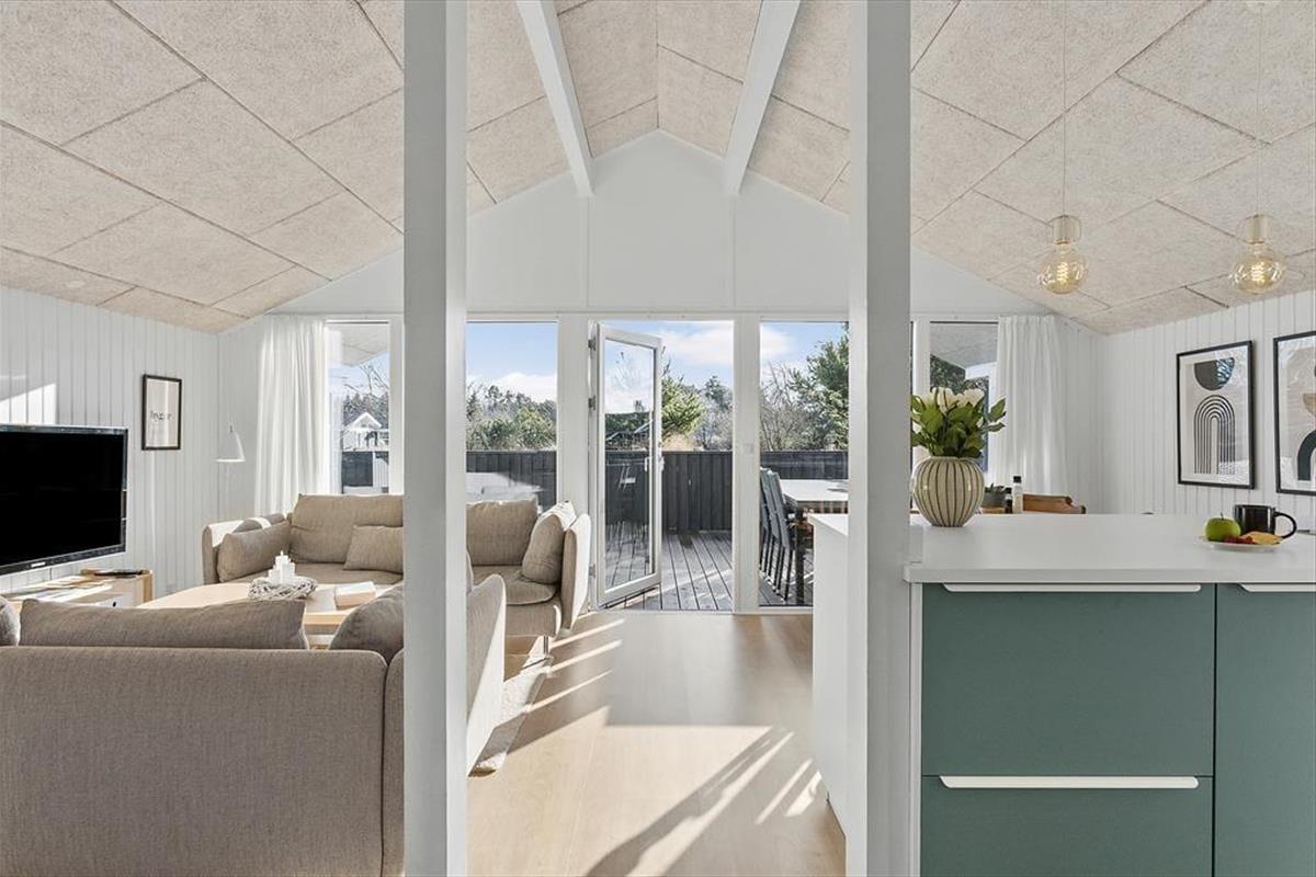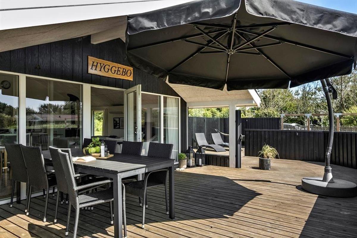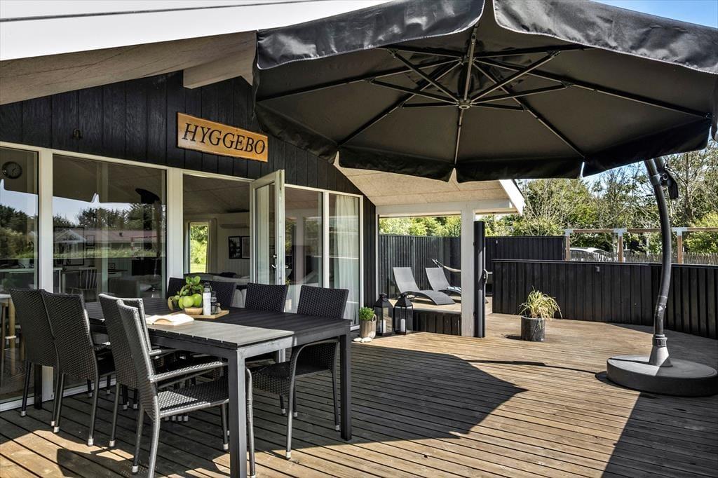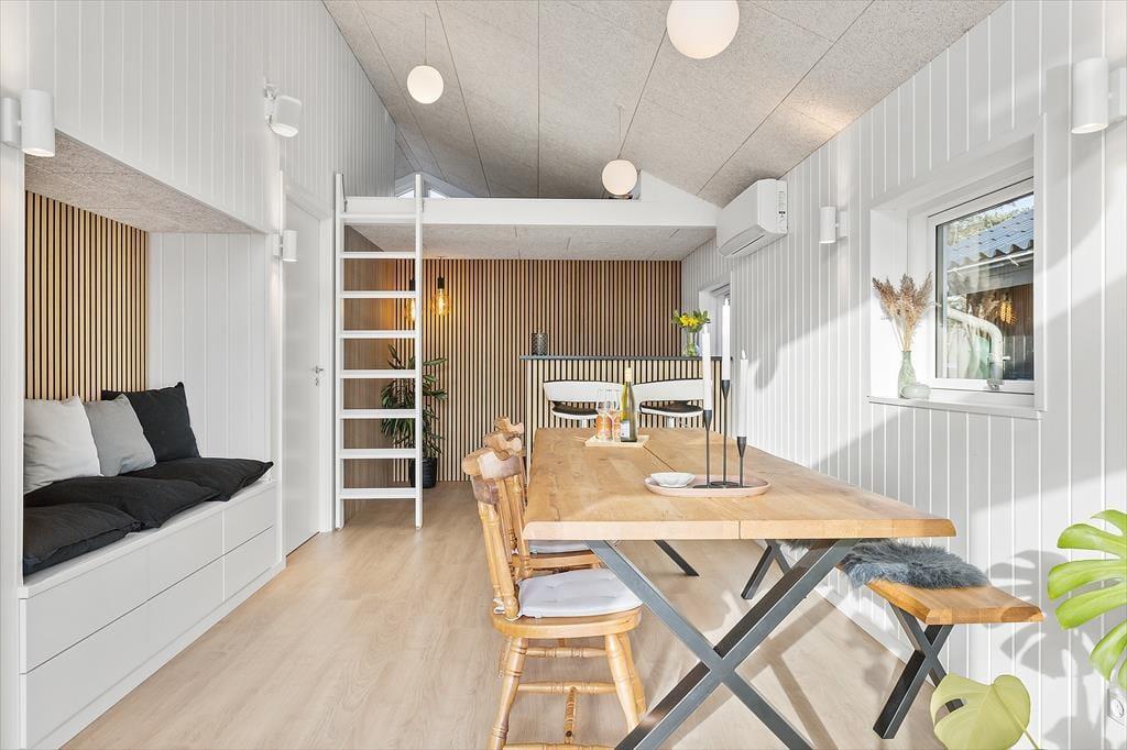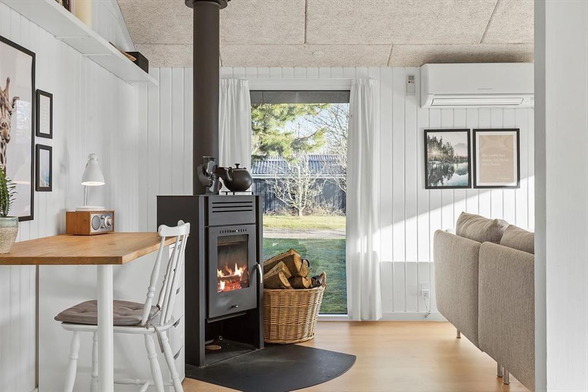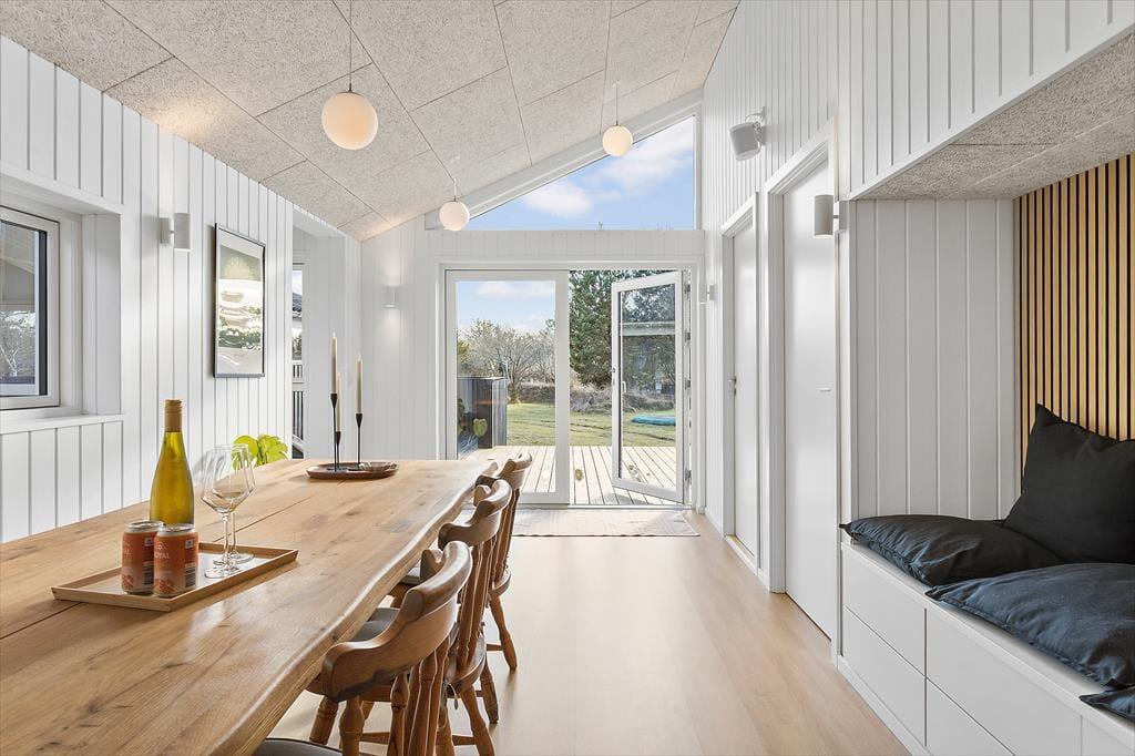 Das Ferienhaus trägt den Namen "Hyggebo". Wie der Name bereits vermuten lässt, geht es im Inneren des Hauses überaus hyggelig, also gemütlich zu. Die hellen Räumlichkeiten verzaubern mit ihrer stilvollen und komfortablen Einrichtung. Es erwarten dich zahlreiche schöne Plätze, an denen du dich in aller Ruhe niederlassen kannst. Das Ferienhaus wurde im Jahr 2021 mittels eines Anbaus erweitert. Seither genießt du die Wahl zwischen zwei Aufenthaltsräumen. Dies bedeutet beispielsweise, dass du an einem der Tische in Ruhe puzzeln oder mit deinen Lieben spielen kannst und zwischendurch die Mahlzeiten am anderen Tisch genießt. Die gemütliche, in die Wand des einen Aufenthaltsraums eingebaute Nische ist ein wunderbares Plätzchen zum Lesen. Im anderen Raum sorgt ein Kaminofen für behagliche Wärme und ein Maximum an echter Ferienhausatmosphäre. Erwähnen möchten wir noch, dass sich die vier Schlafräume und zwei Badezimmer auf zwei unterschiedliche Hausbereiche verteilen, dadurch eignet sich dieses Mietobjekt hervorragend für den gemeinsamen Urlaub zweier befreundeter Familien.