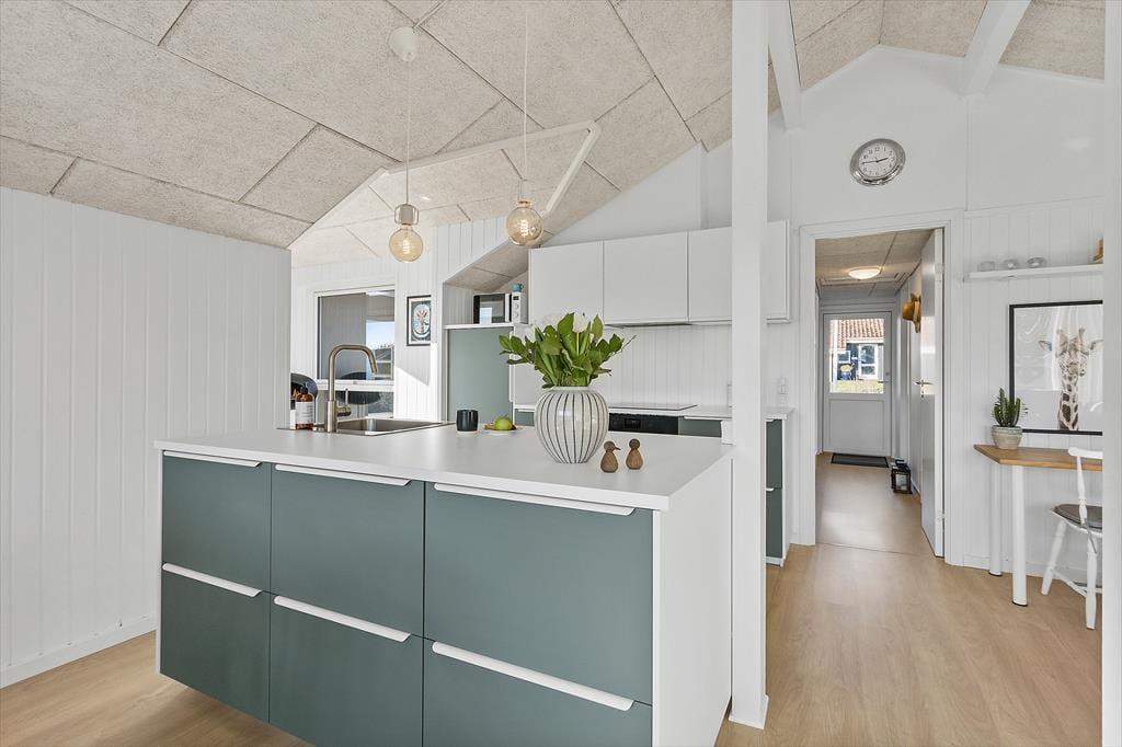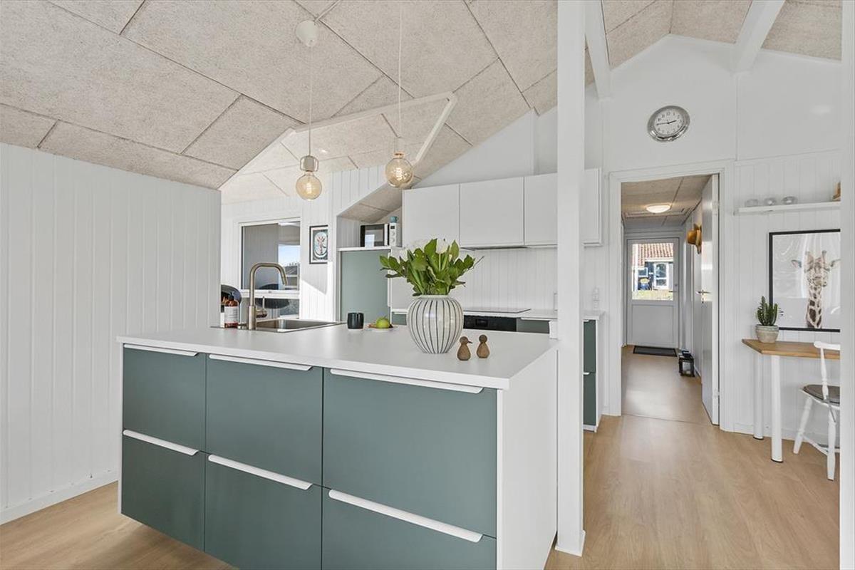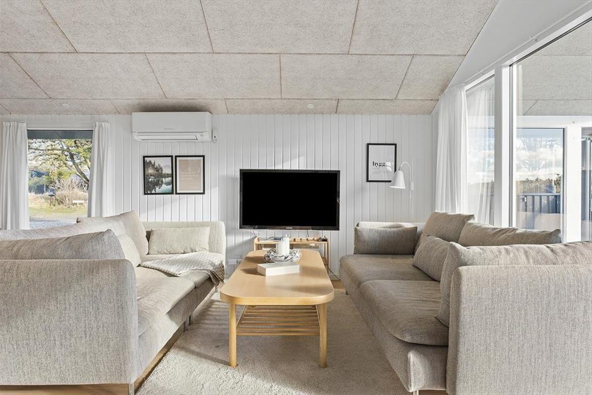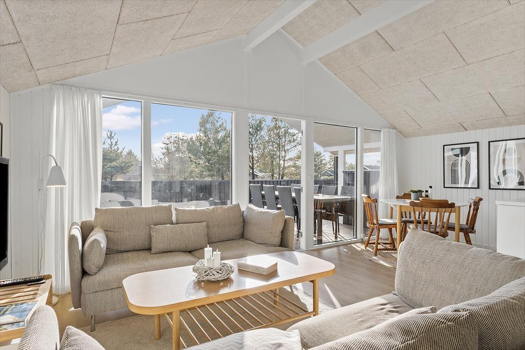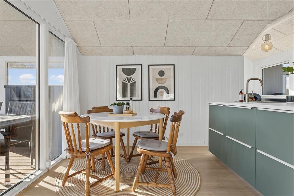 Das Ferienhaus trägt den Namen "Hyggebo". Wie der Name bereits vermuten lässt, geht es im Inneren des Hauses überaus hyggelig, also gemütlich zu. Die hellen Räumlichkeiten verzaubern mit ihrer stilvollen und komfortablen Einrichtung. Es erwarten dich zahlreiche schöne Plätze, an denen du dich in aller Ruhe niederlassen kannst. Das Ferienhaus wurde im Jahr 2021 mittels eines Anbaus erweitert. Seither genießt du die Wahl zwischen zwei Aufenthaltsräumen. Dies bedeutet beispielsweise, dass du an einem der Tische in Ruhe puzzeln oder mit deinen Lieben spielen kannst und zwischendurch die Mahlzeiten am anderen Tisch genießt. Die gemütliche, in die Wand des einen Aufenthaltsraums eingebaute Nische ist ein wunderbares Plätzchen zum Lesen. Im anderen Raum sorgt ein Kaminofen für behagliche Wärme und ein Maximum an echter Ferienhausatmosphäre. Erwähnen möchten wir noch, dass sich die vier Schlafräume und zwei Badezimmer auf zwei unterschiedliche Hausbereiche verteilen, dadurch eignet sich dieses Mietobjekt hervorragend für den gemeinsamen Urlaub zweier befreundeter Familien.