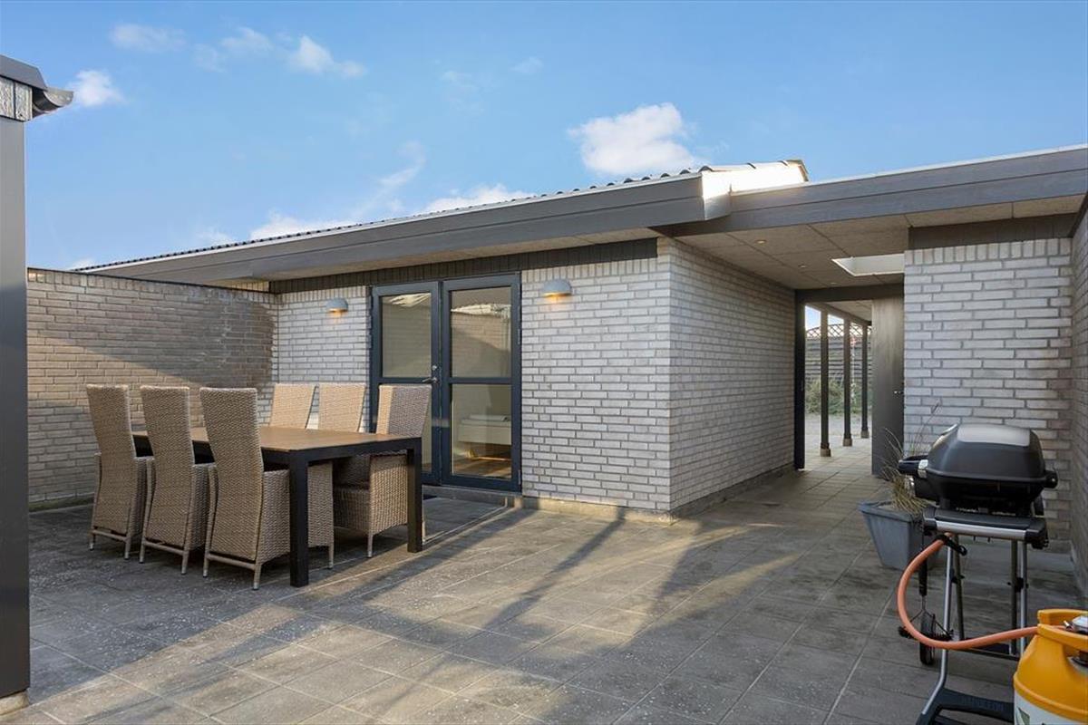 Vom Wintergarten und vom Aufenthaltsraum trittst du direkt hinaus in den Innenhof. Wenn du die Türen weit öffnest, genießt du das Gefühl, dass Innen- und Außenbereich förmlich miteinander verschmelzen. Der geschlossene Hof wird durch hohe Mauern abgeschirmt und präsentiert sich daher als gänzlich ungestörte Oase. Obwohl das Haus ganz nah am Meer liegt, genießt du hier selbst an windigen Tagen sehr guten Windschutz. Du kannst dich ungestört sonnen, die Seele baumeln lassen und dabei ein kühles Getränk genießen. Abends bereitest du unter offenem Himmel ein Festmal auf dem hauseigenen Gasgrill zu. Für deinen Pkw steht ein Carport am Weg bereit.