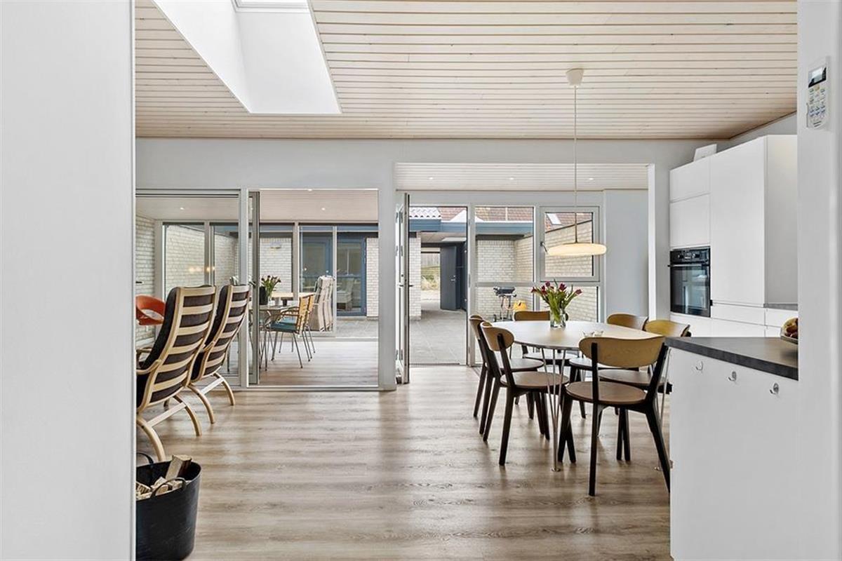 Dieses attraktive Ferienhaus hat viel zu bieten: Eine helle, einladende Einrichtung, einen schönen Wintergarten, ein Nebengebäude und eine wahre Oase in Form eines komplett geschlossenen Innenhofs. Das allerbeste ist jedoch die Lage in Blokhus. Ein kleiner Pfad führt dich über die Dünen direkt an den nur 100 Meter entfernten Strand. Den Ortskern des lebendigen Badeortes erreichst du zu Fuß innerhalb von fünf Minuten. Dieses Urlaubsdomizil eignet sich wunderbar für Urlauber, die in ruhigem Rahmen und dennoch nah an allem, was Blokhus zu bieten hat, wohnen möchten.