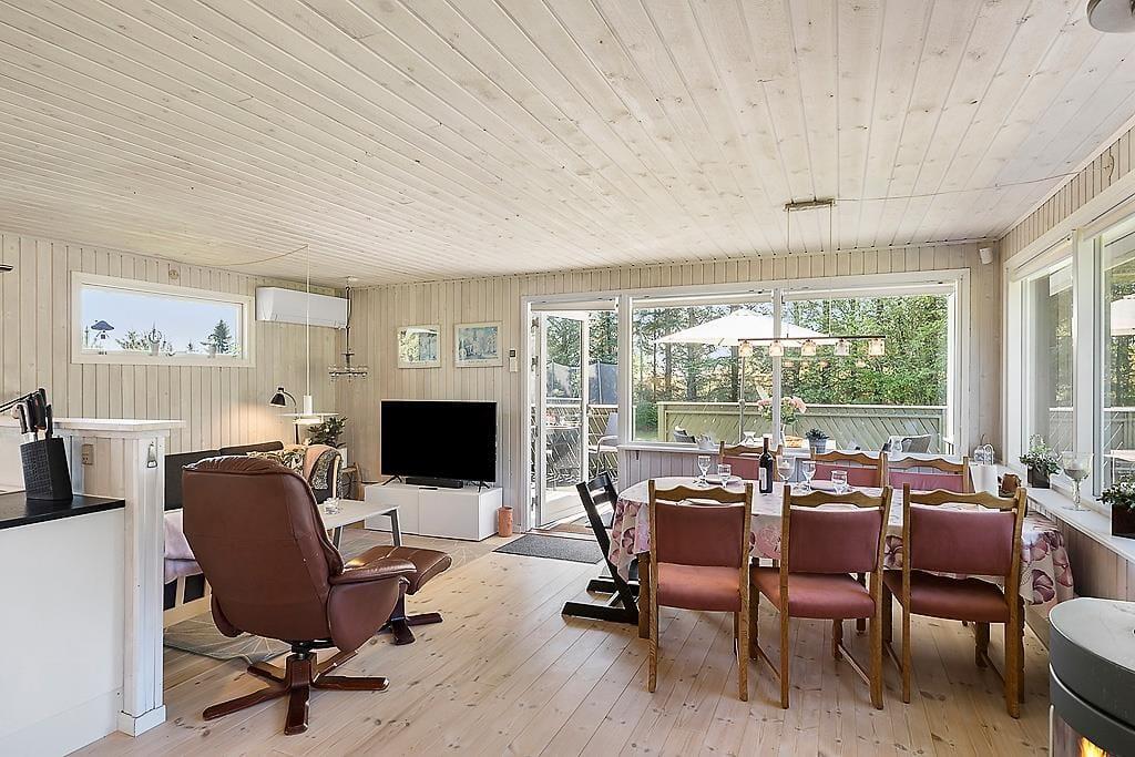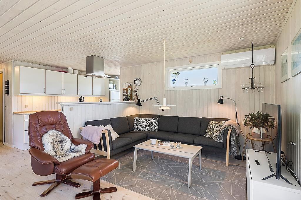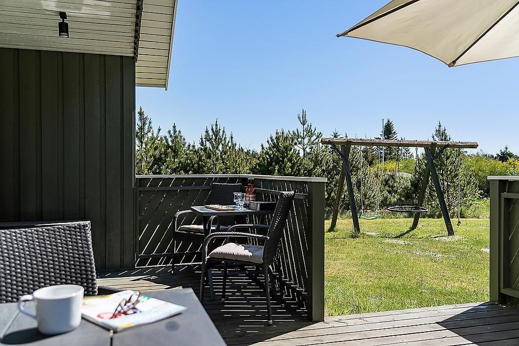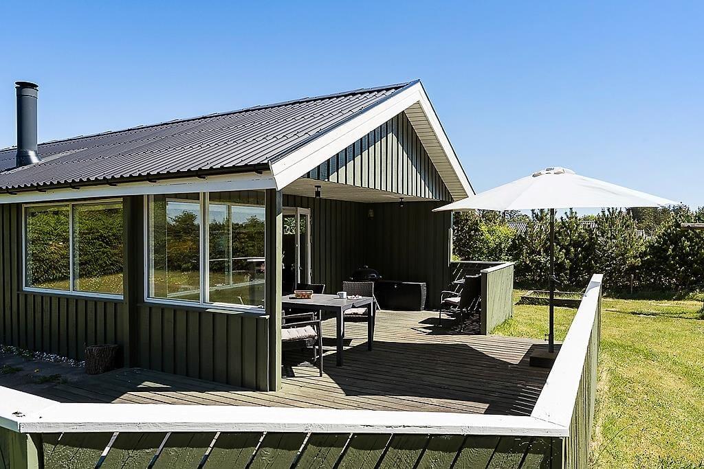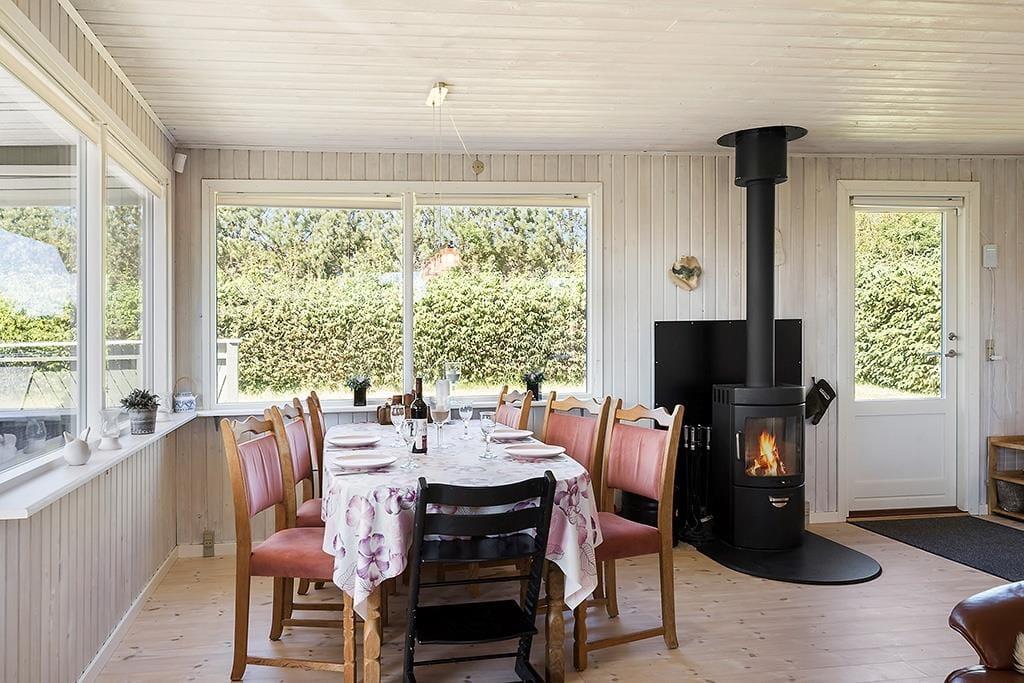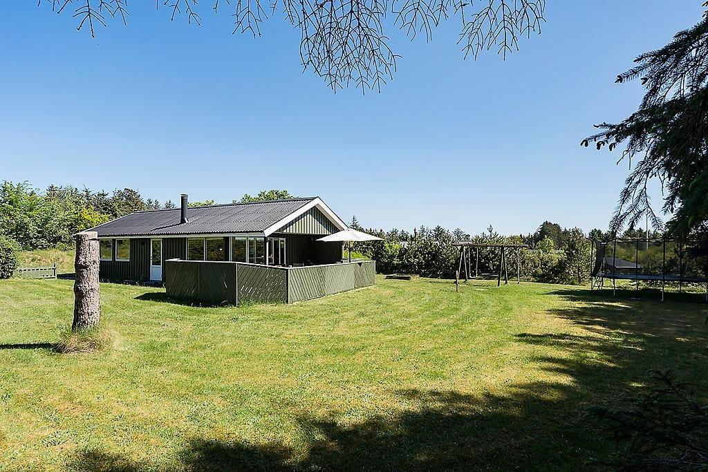 Gezellig vakantiehuis in Blokhus met houtkachel, trampoline en gratis wifi, ideaal voor een ontspannen verblijf.