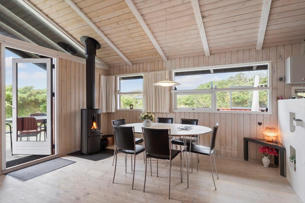 Dieses Ferienhaus liegt nur wenige hundert Meter vom herrlichen Nordseestrand entfernt. Neben dem Grundstück führt ein kleiner Pfad vorbei, der Sie direkt an den Strand führt. Einfacher geht es nicht! Den Ortskern von Blokhus erreichen Sie nach nur einem knappen Kilometer. In Blokhus erwarten Sie unzählige Aktivitätsmöglichkeiten, viele Geschäfte unterschiedlichster Art und eine ganze Reihe guter Restaurants und Cafés. Aktivurlauber haben vor Ort die Wahl zwischen Golfen, Reiten, Wandern, Laufen, Schwimmen und Moutainbiketouren. Mehr Informationen hierzu finden Sie auf www.visitnordjylland.dk. Des weiteren liegt Aalborg nur rund eine halbe Autostunde von der Küste entfernt. In der beeindruckenden Stadt laden die gemütlichen Fußgängerzonen, die Einkaufszentren, die Museen, der Zoo, der Street-Food-Market und vieles mehr zum Bummeln und Verweilen ein.