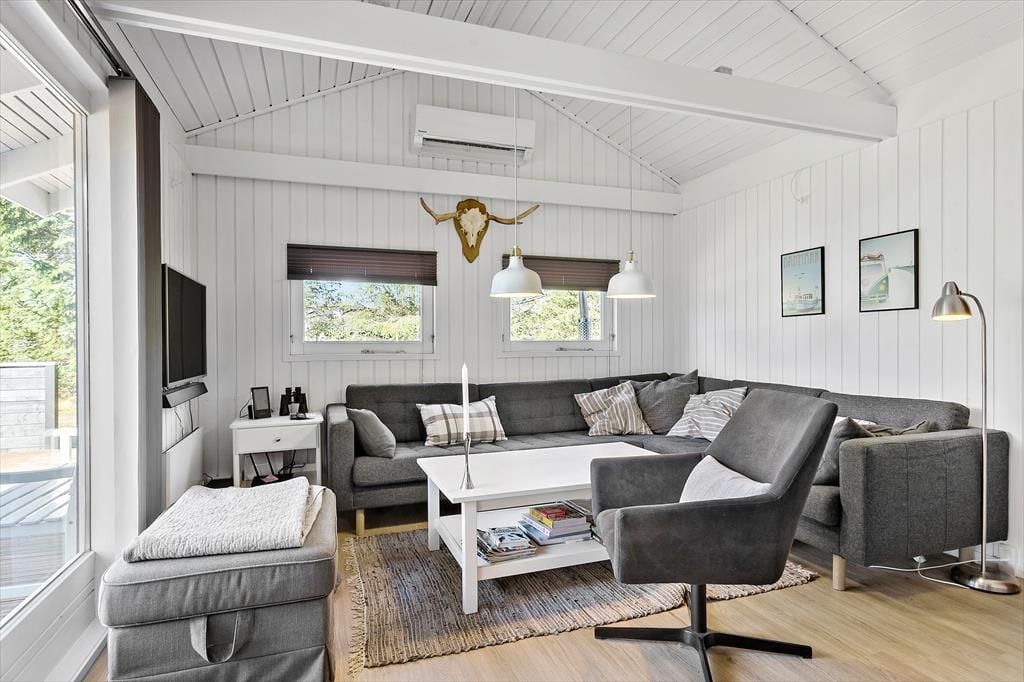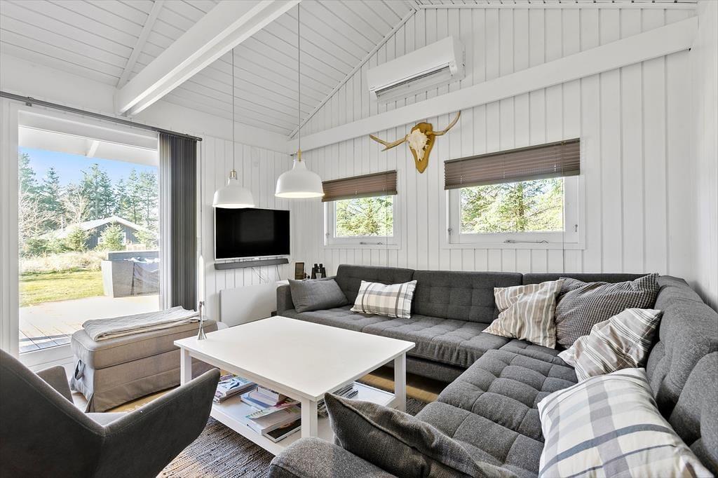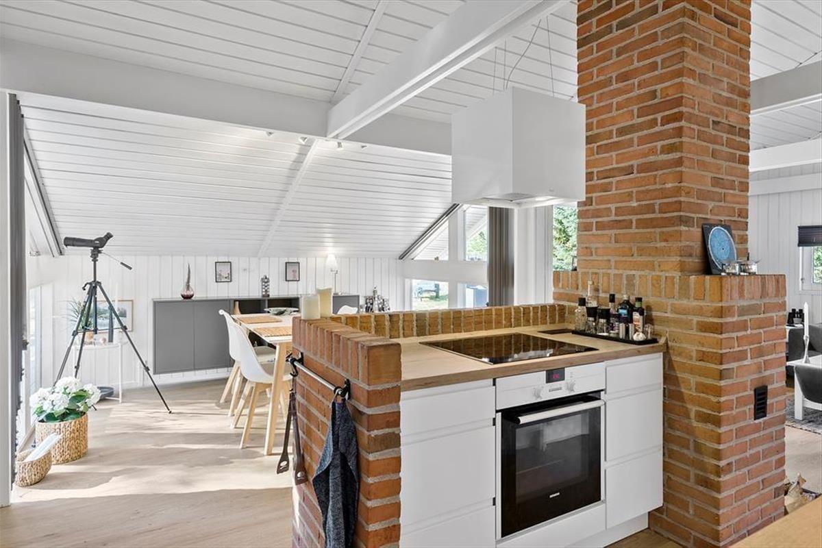 Das aus den 1980er Jahren stammende Ferienhaus wurde 2018 einer umfassenden Renovierung unterzogen, sodass es nun in neuem Glanz die vielen, zu erwartenden Urlaubsgäste begeistern wird. Das Herzstück des Hauses bildet die offene, mit dem Essbereich und dem Wohnzimmer verbundene Küche. Dieser wunderbare Raum eignet sich hervorragend,um die Erlebnisse des Tages auszutauschen, gemeinsam zu Kochen, zu Essen, sich gemeinsam vor dem Fernsehen oder dem Kamin zu entspannen oder auch am Esstisch ein unterhaltsames Brettspiel zu spielen. Neben dem großzügigen und geschmackvoll eingerichteten Wohn-, Koch und Essbereich, erwarten Sie im Haus drei Schlafräume, ein Schlafboden und ein Badezimmer mit Dusche und Waschmaschine. Die gemütliche und komfortable Einrichtung und der aufgrund der großen Fenster herrliche Lichteinfall machen das Haus zu einer wahren Oase der Erholung. Zudem sind sowohl sämtliche Möbel als auch die Betten qualitativ ausgesprochen hochwertig. Zur modernen Ausstattung zählen unter anderem der Geschirrspüler, die Waschmaschine, Parabolempfang und WLAN. Bitte bringen Sie Ihr eigenes Laptop oder Tablet mit. So haben Sie jederzeit die Gelegenheit, schnell und einfach an Informationen über Ausflugsziele und die Region zu gelangen, Ihre Mail zu checken oder die Lieblingsserie der Kinder zu sehen. Alles in allem bildet dieses schöne Ferienhaus einen idealen Rahmen für einen gelungen Urlaub in Nordjütland und kann von uns nur wärmstens empfohlen werden.