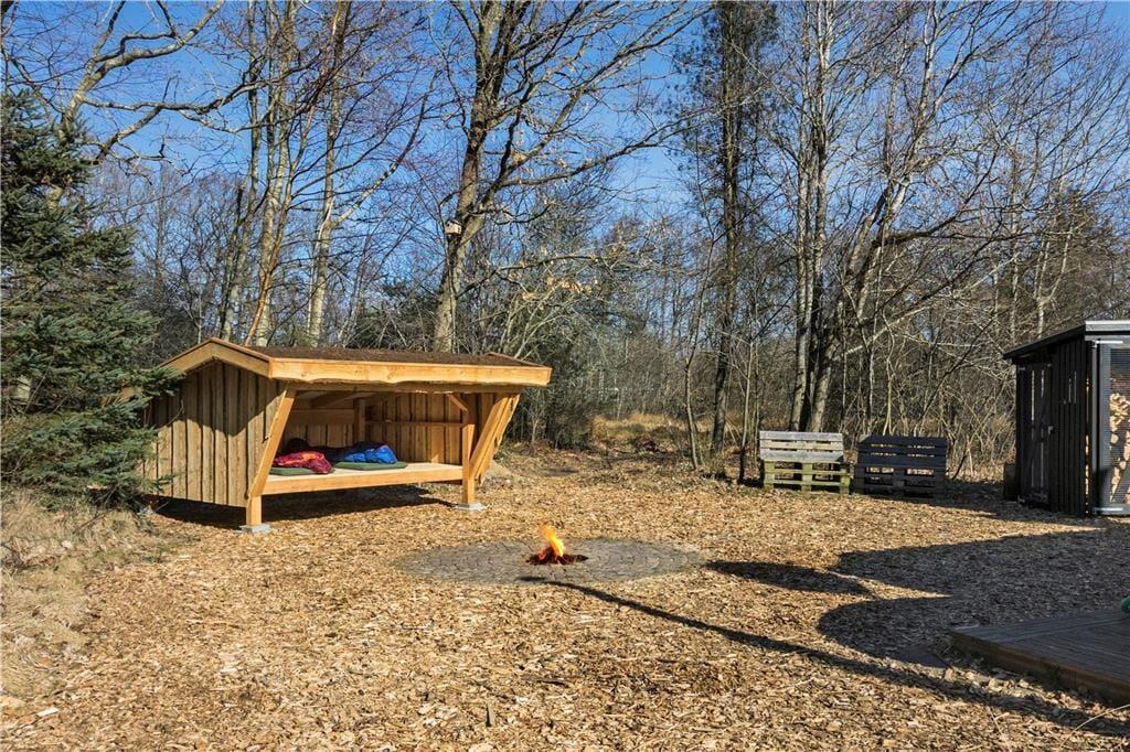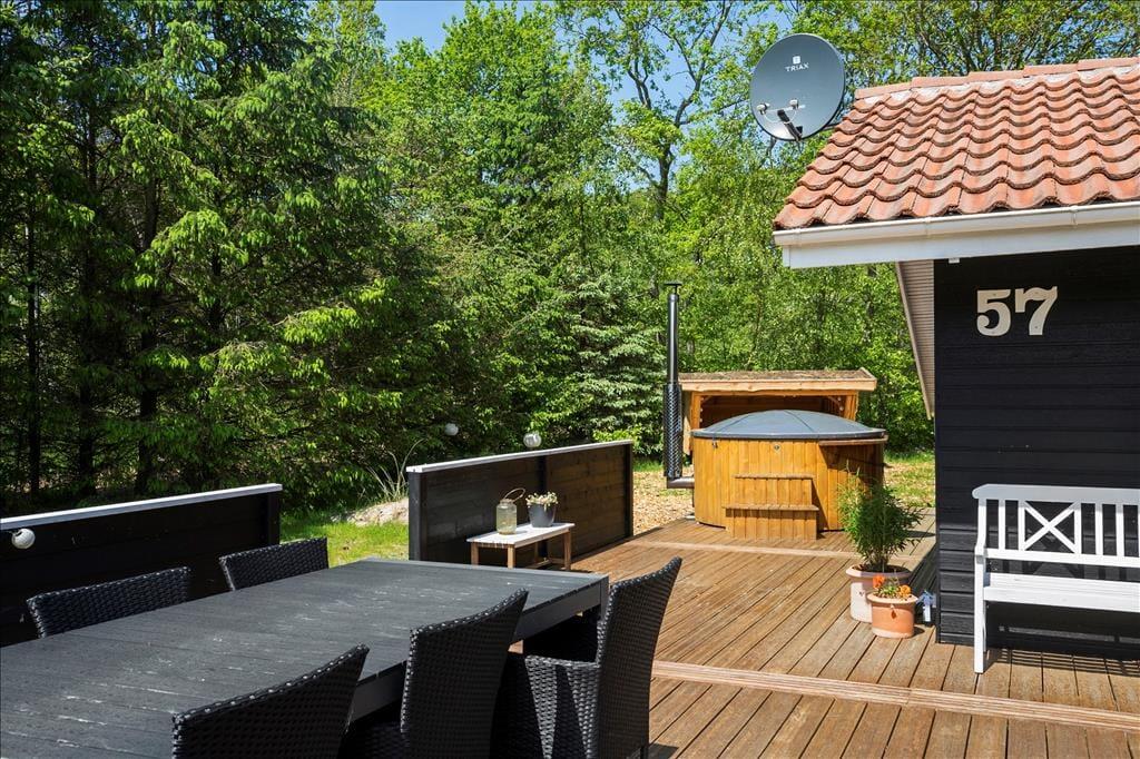 Das Ferienhaus liegt auf einem ebenen Naturgrundstück mit sehr viel Platz zum Toben und Spielen - mit oder auch ohne Ball. Das Grundstück wird von hohen Bäumen und Hecken umgeben, sodass Sie sich hier nach Herzenslust im Freien entfalten können, ohne durch neugierige Blicke der Nachbarn oder der Spaziergänger auf dem Weg gestört zu werden. Die große Holzterrasse umgibt drei Seiten des Hauses. Sie haben demnach beste Möglichkeiten, den gesamten Tag hindurch, immer ein sonniges Plätzchen zu finden. Wir erlauben uns zu bemerken dass das vorhandene Wildmarksbad sowie Pizzaofen den privaten Hauseigentümer gehört und dürfen NICHT benutzt werden